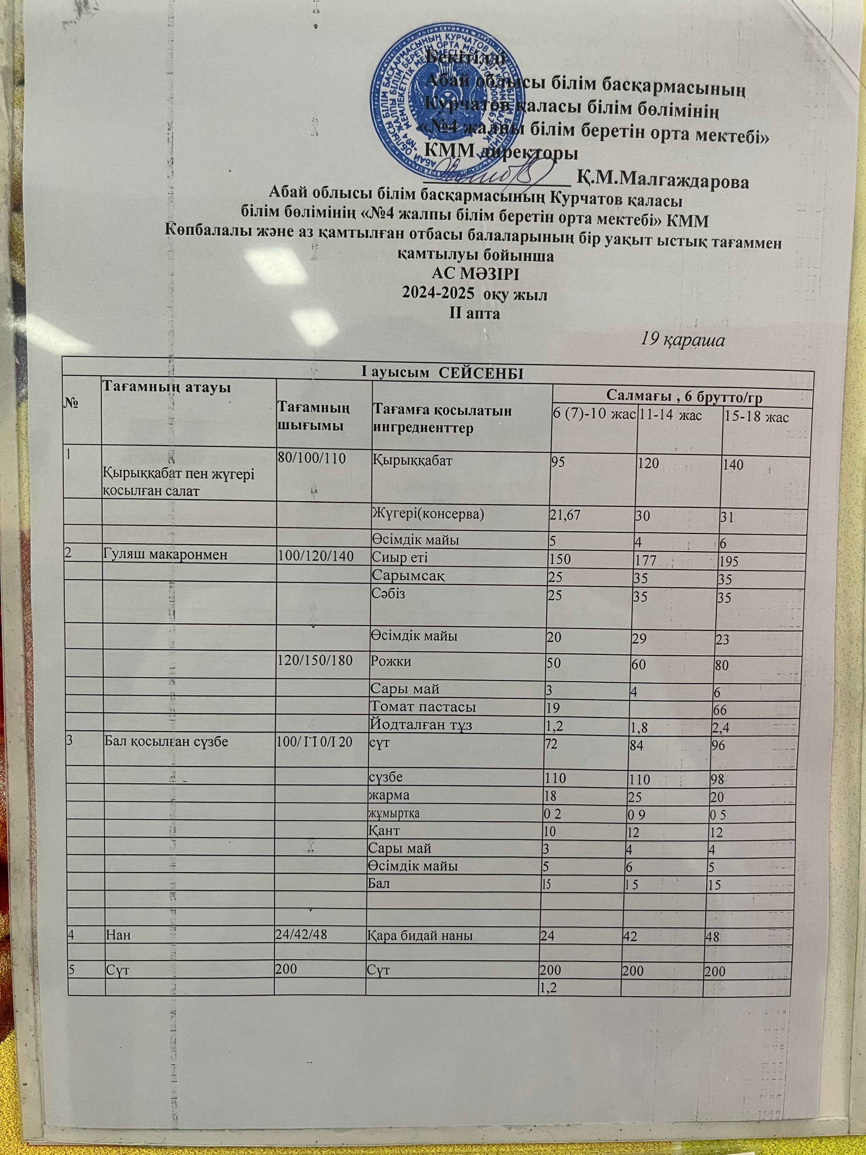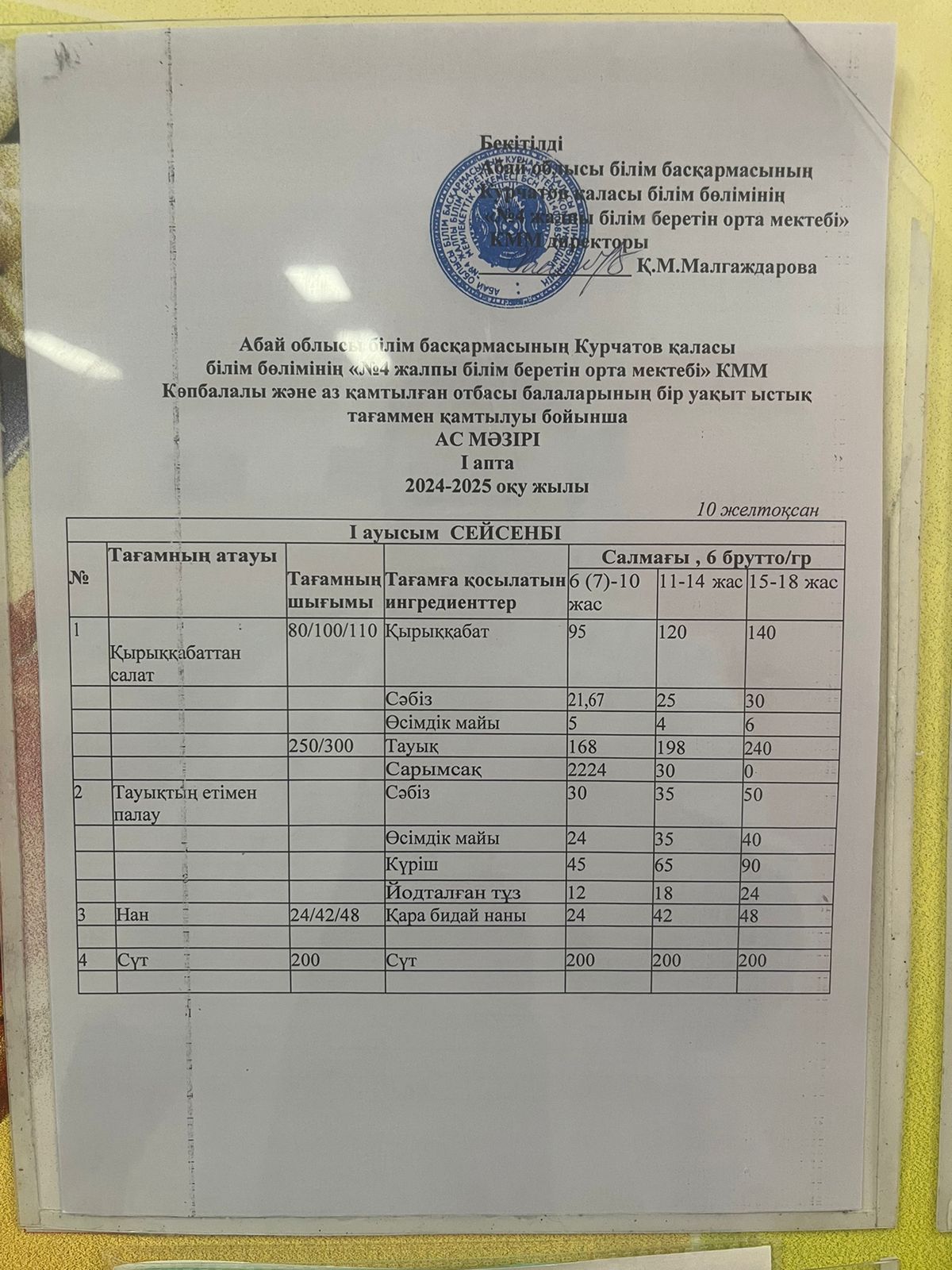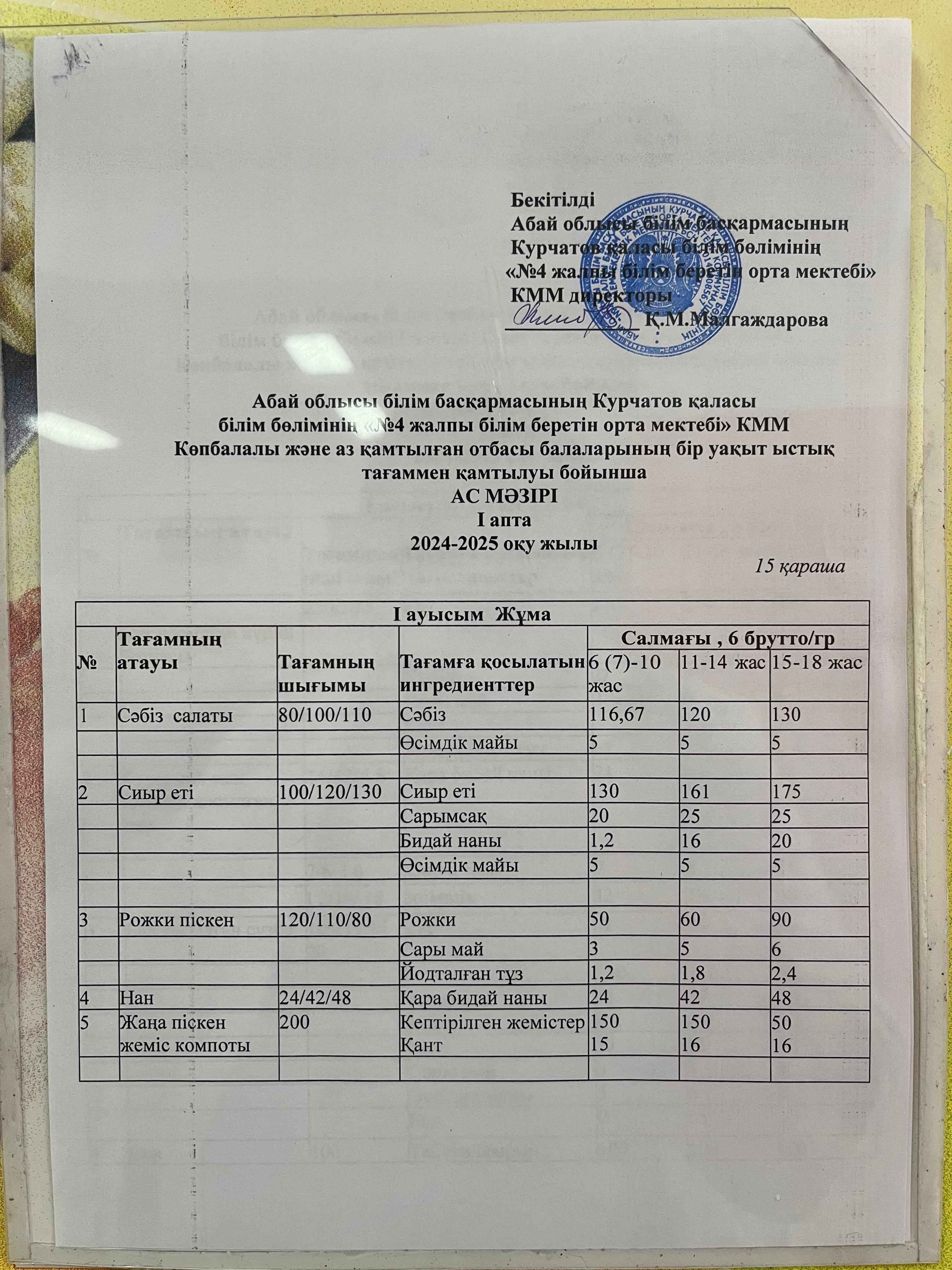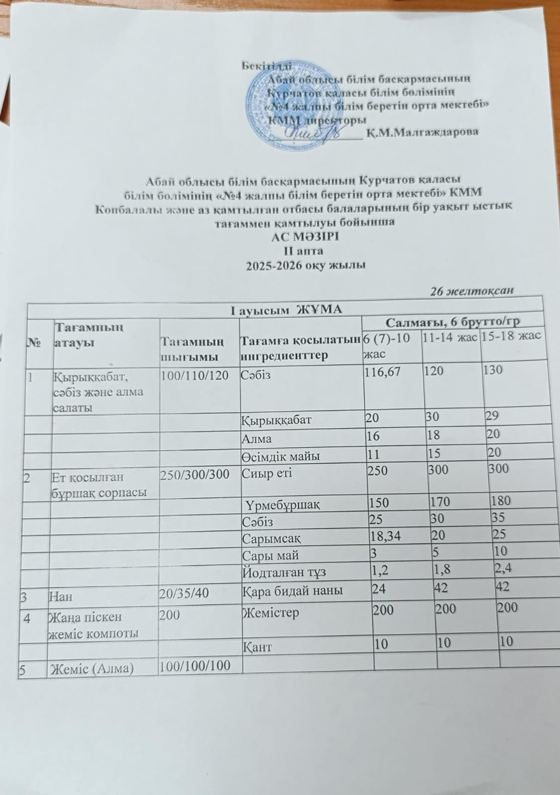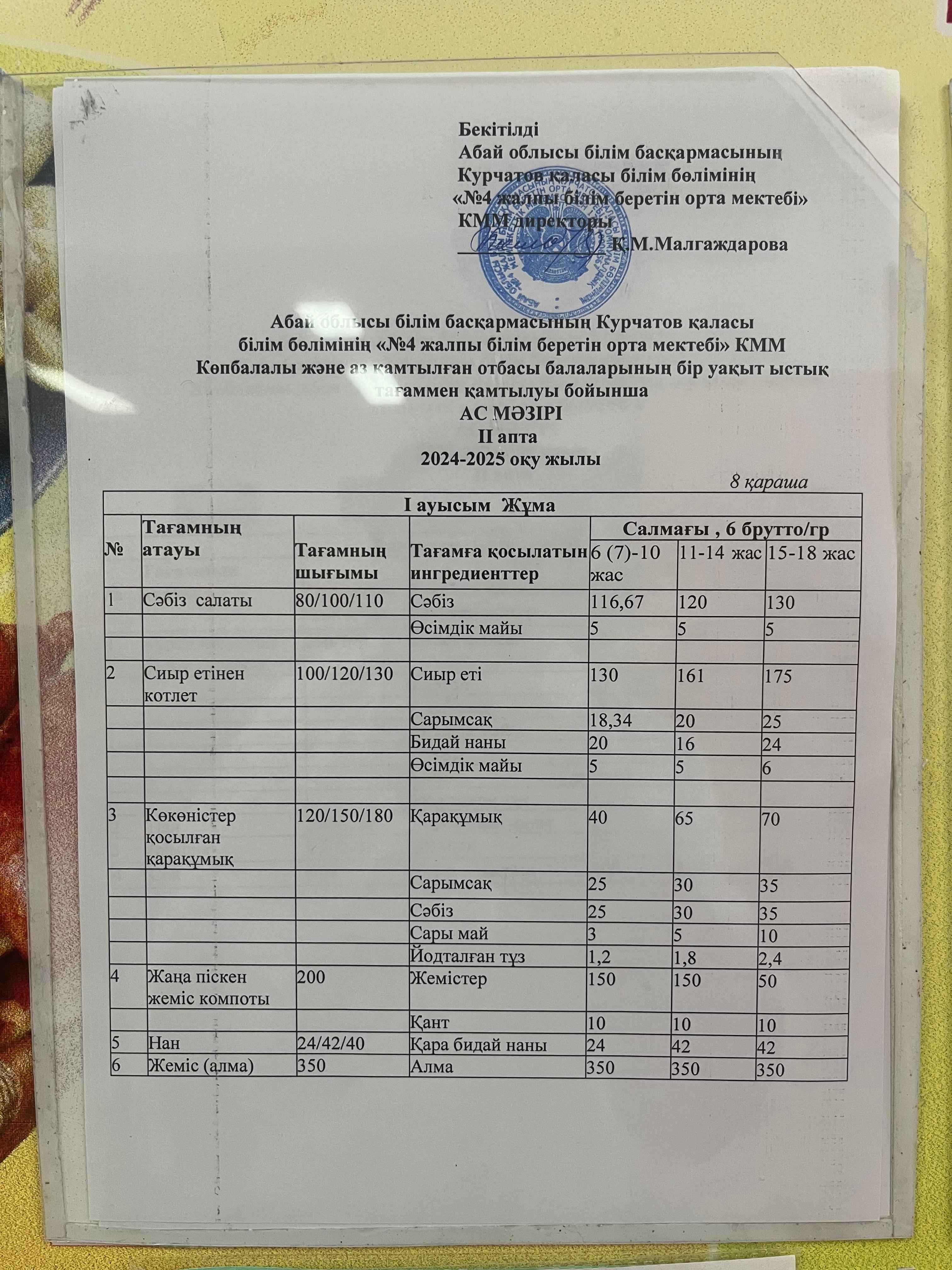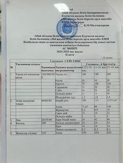 | 1 | 2 апталық 5 күндік ас мәзірі | |