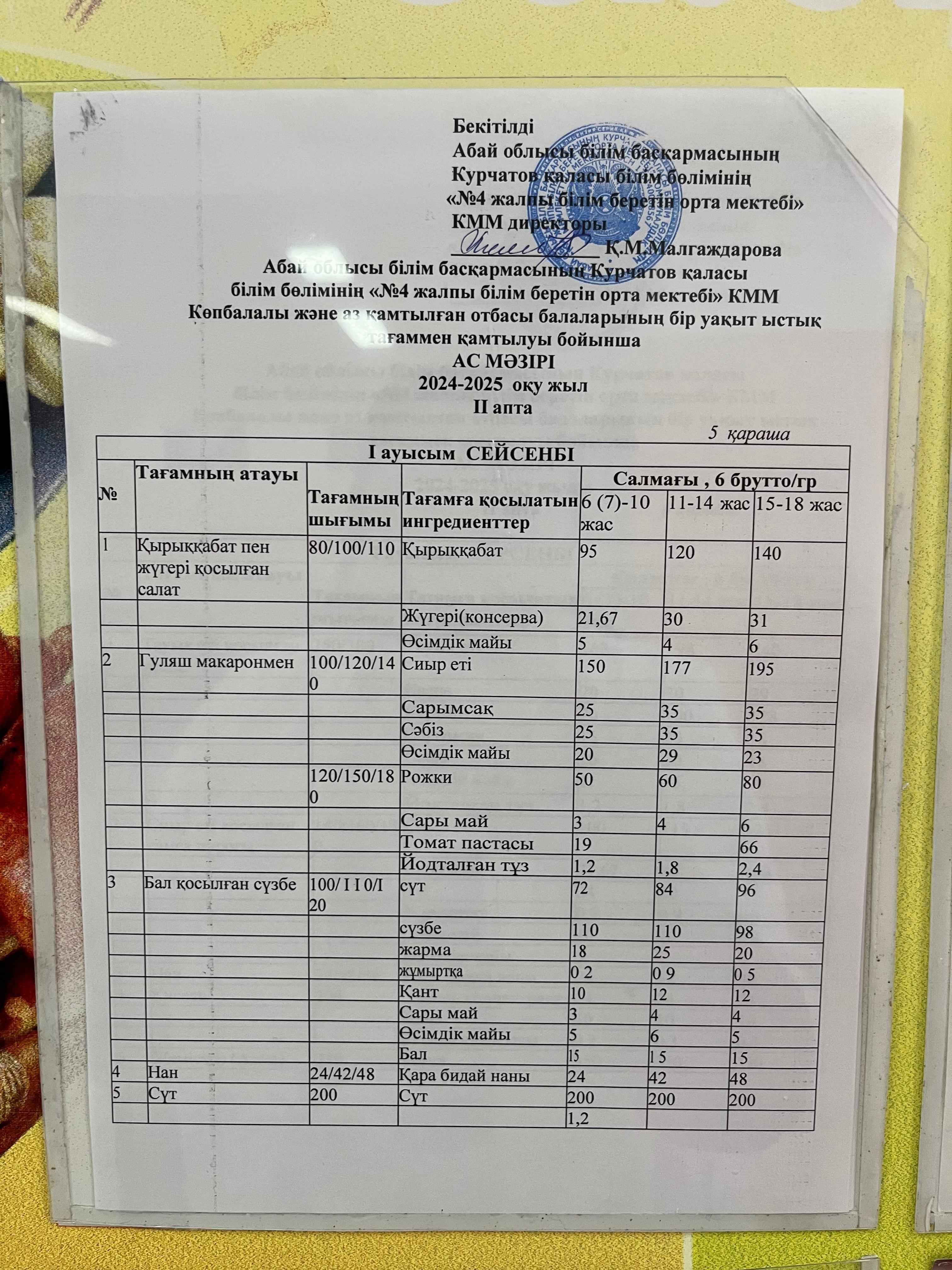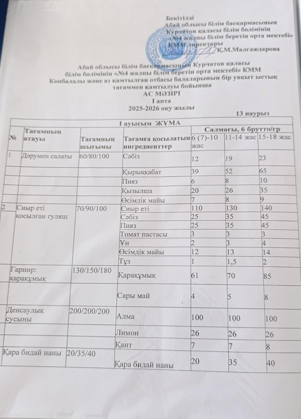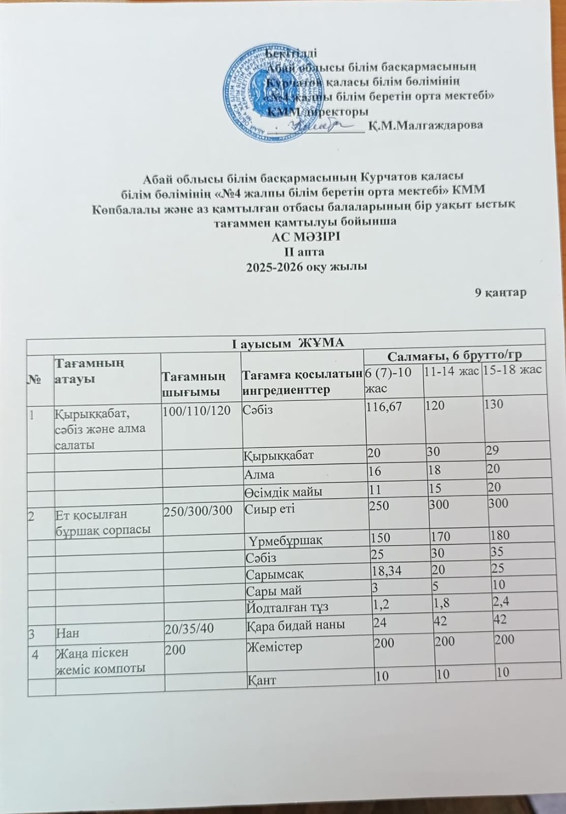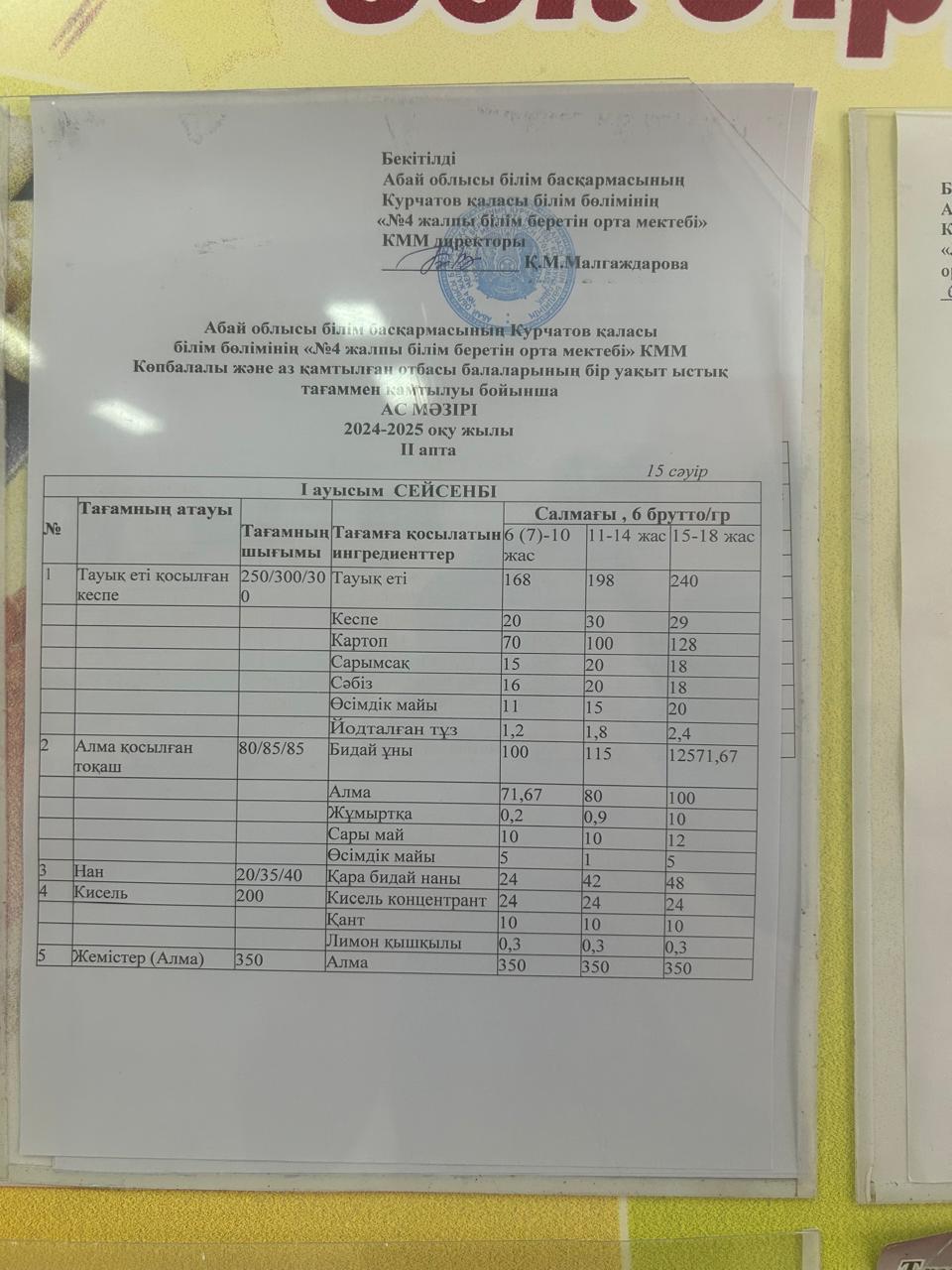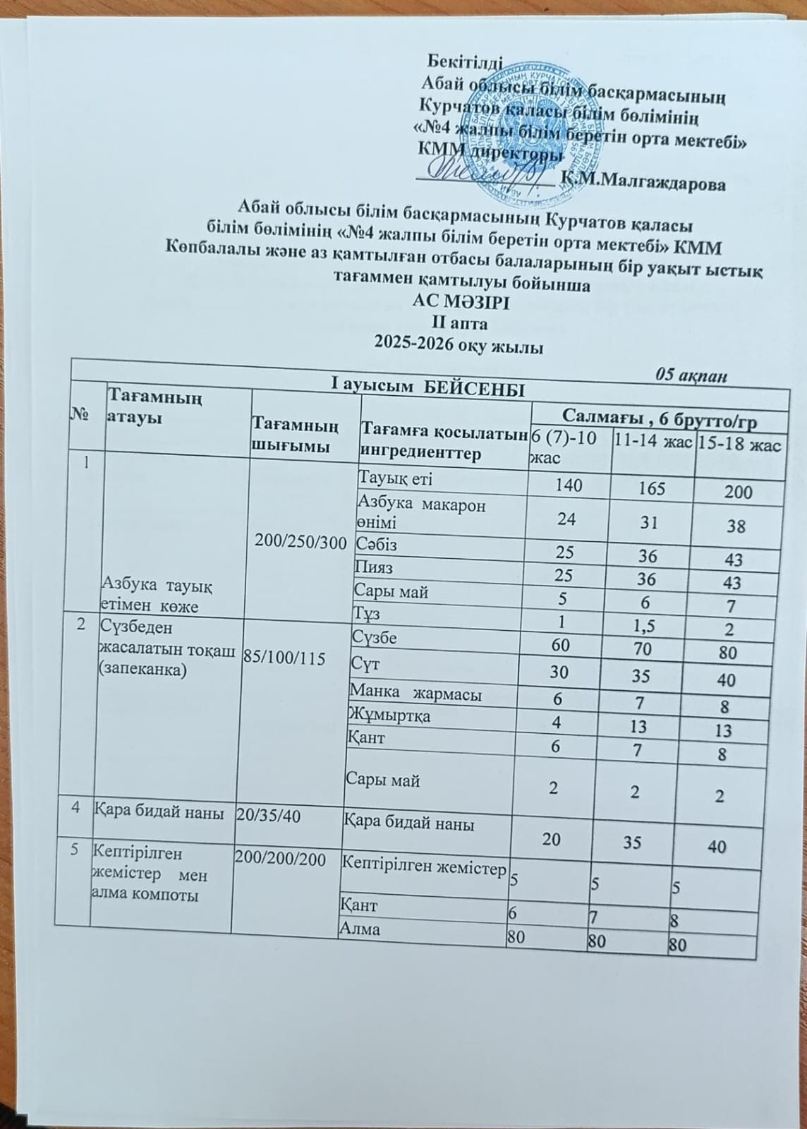 | 1 | 2 апталық 5 күндік ас мәзірі | |