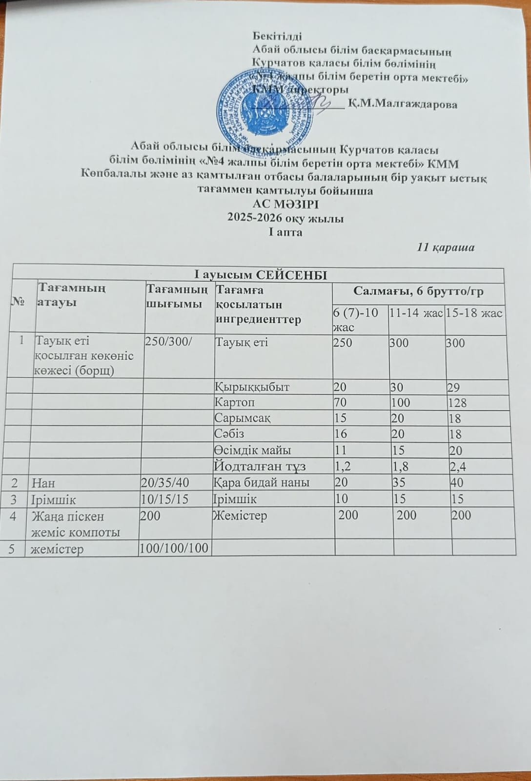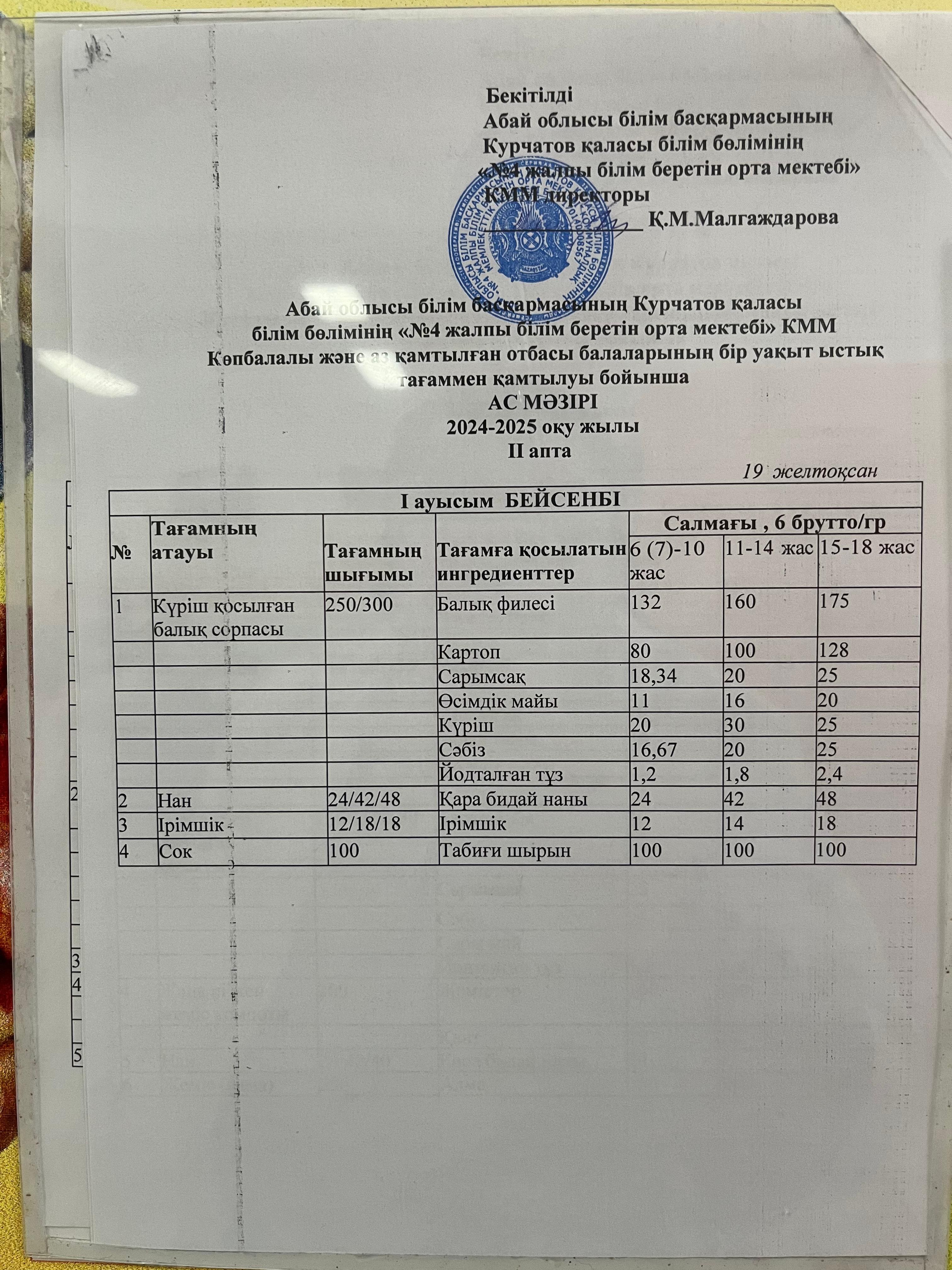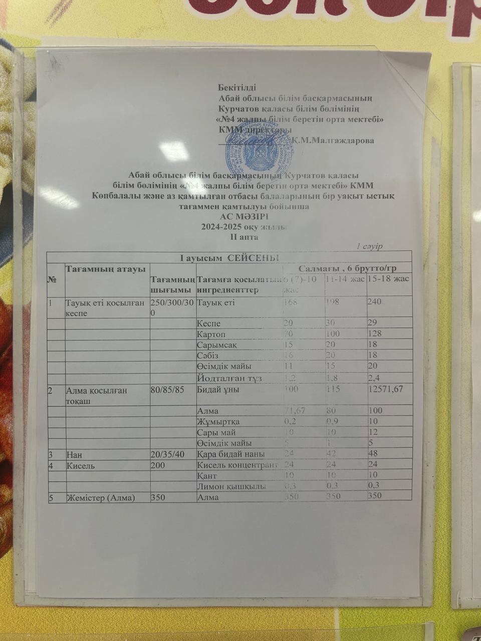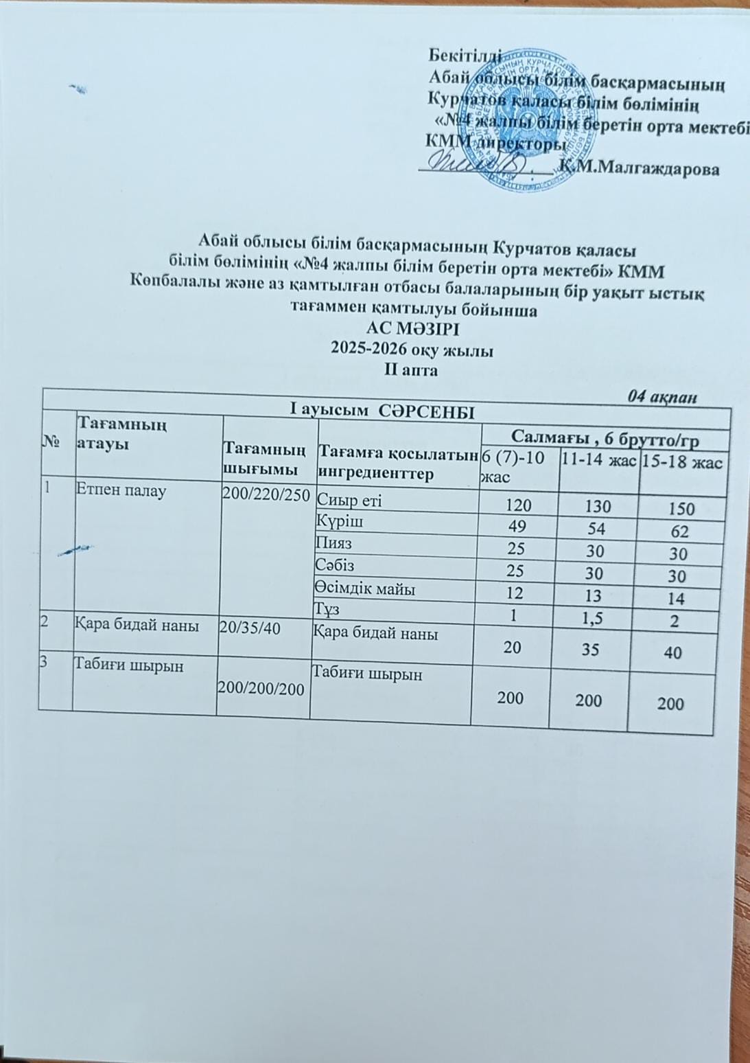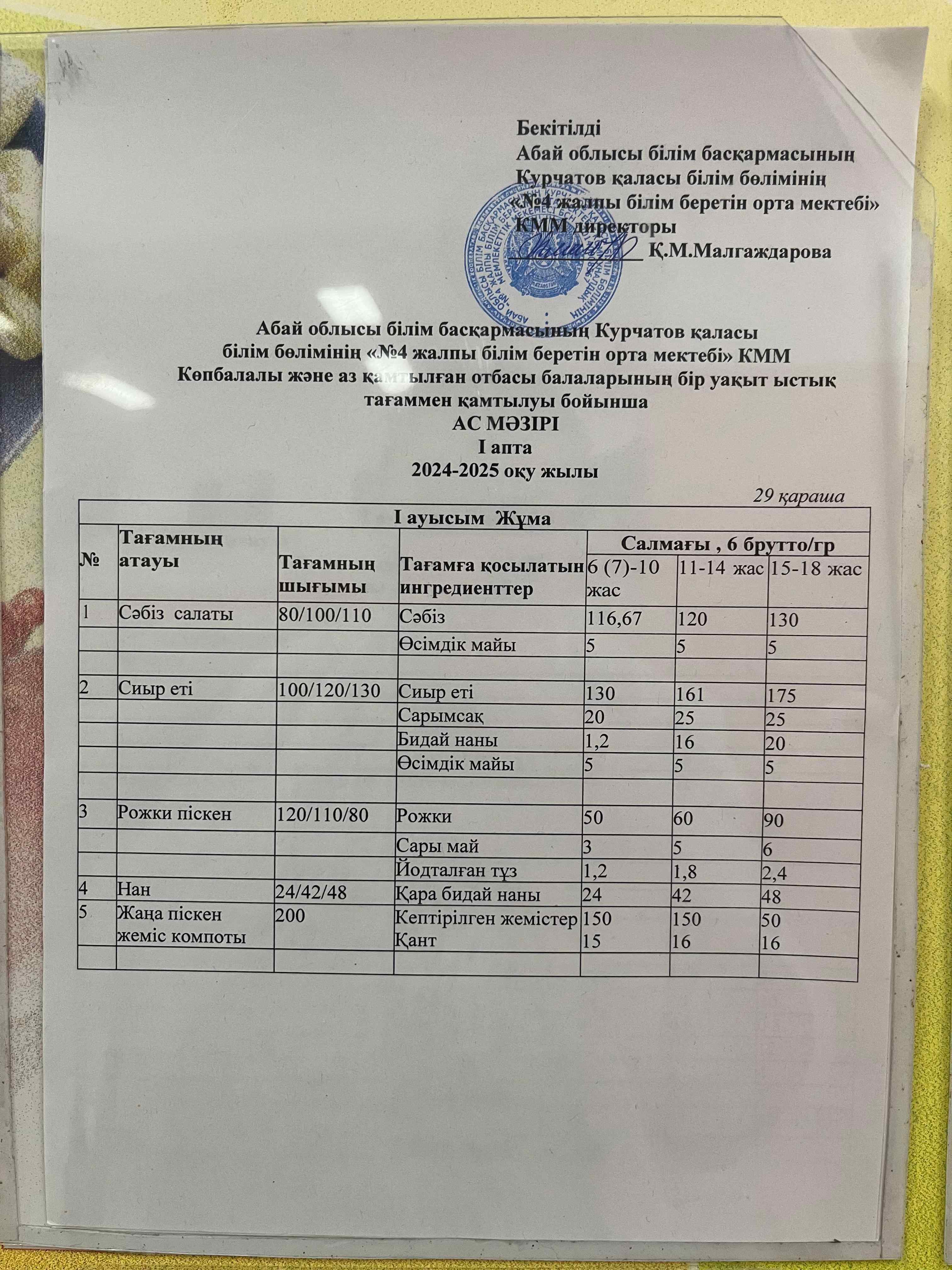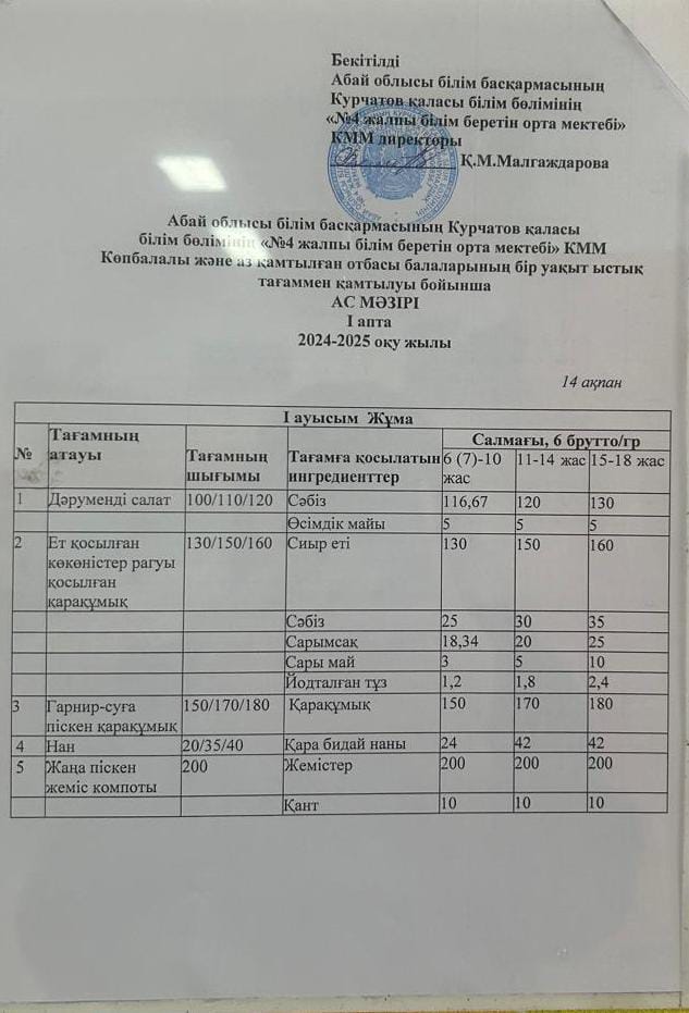 | 1 | 2 апталық 5 күндік ас мәзірі | |