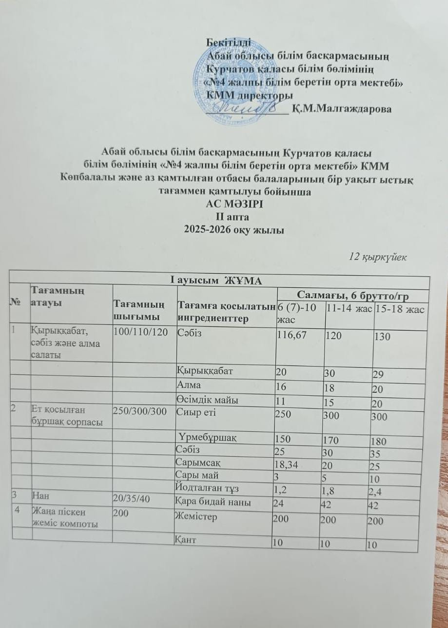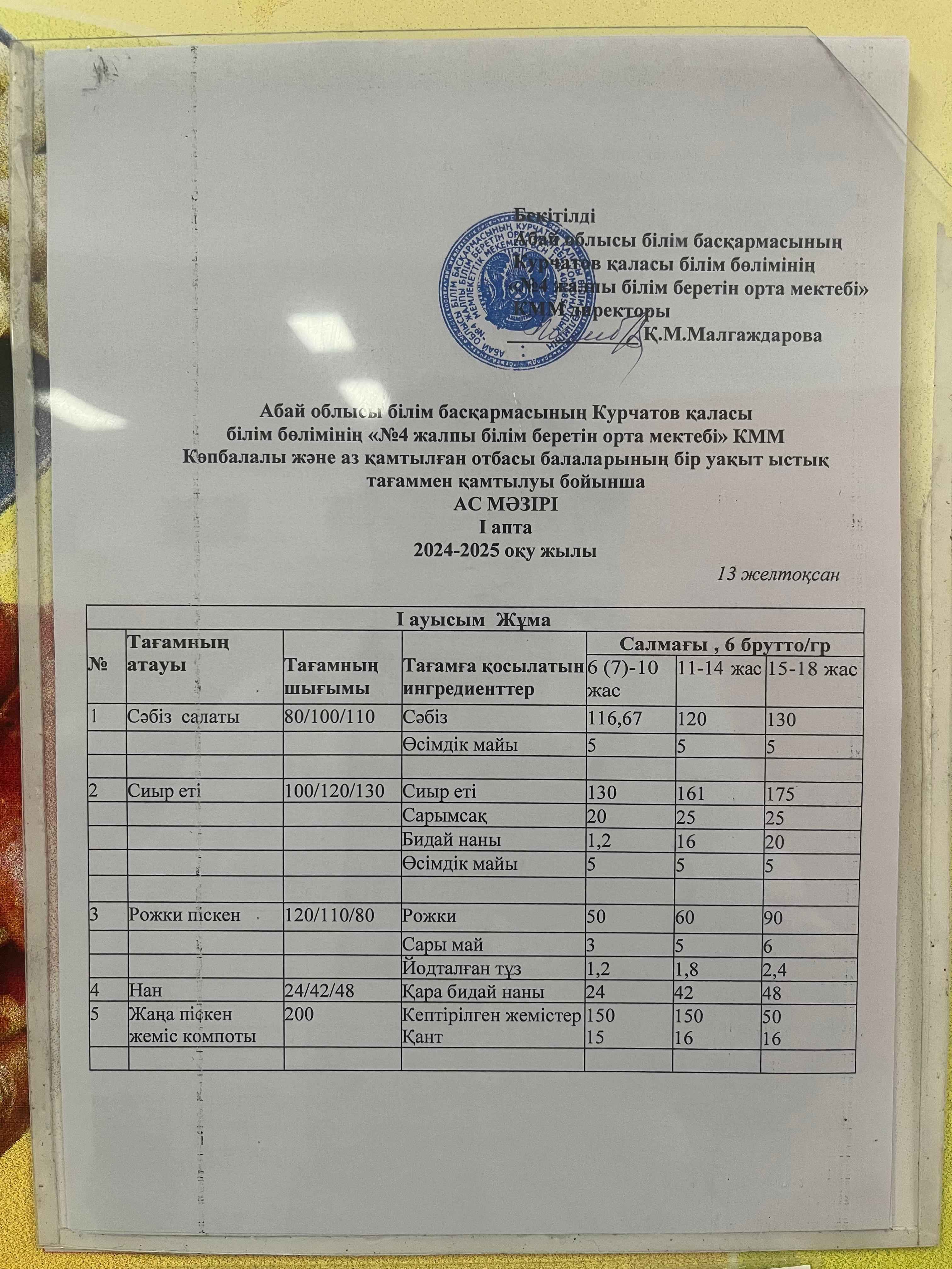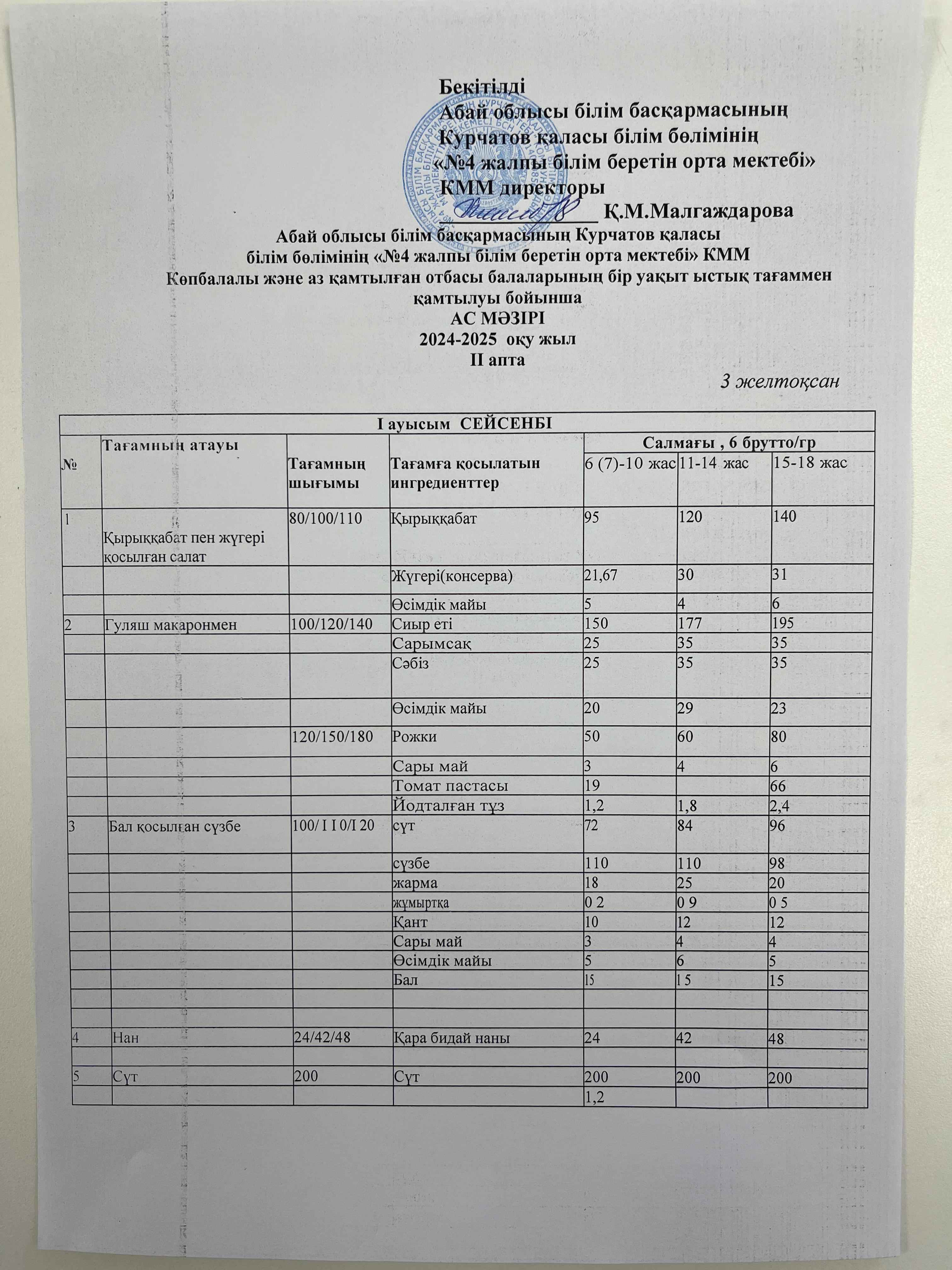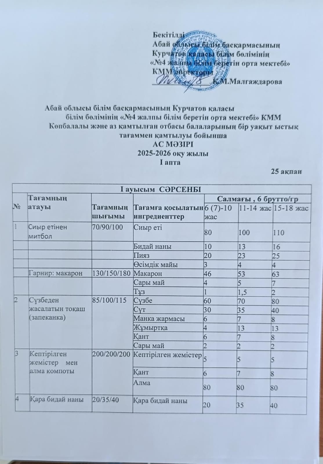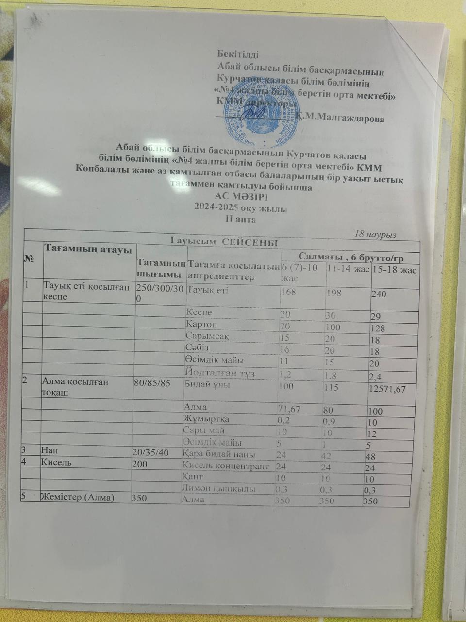 | 1 | 2 апталық 5 күндік ас мәзірі | |