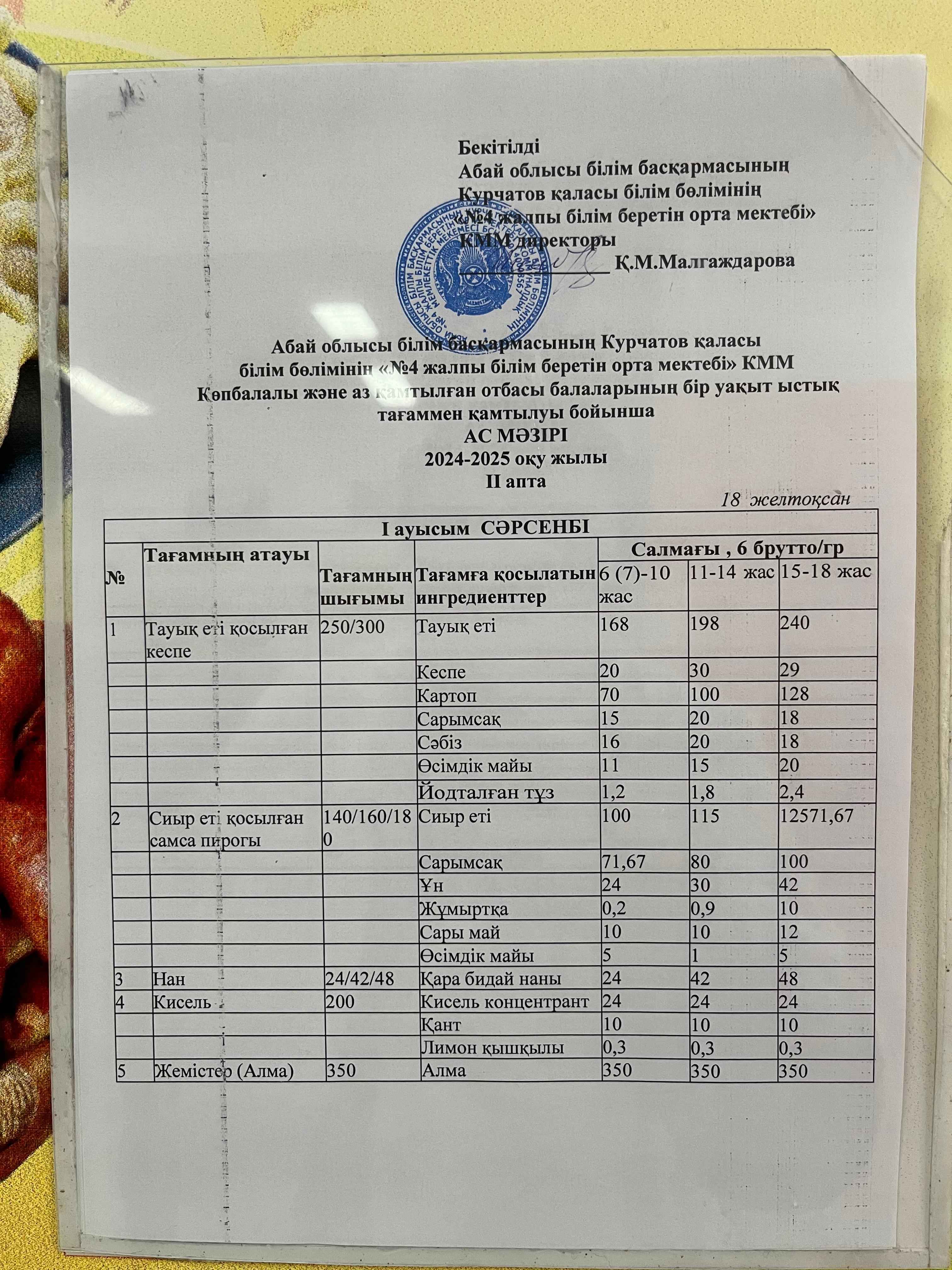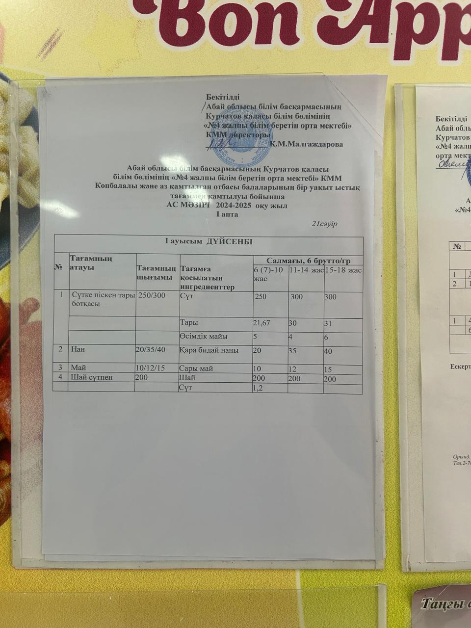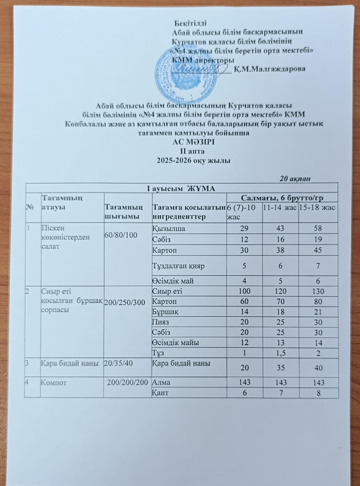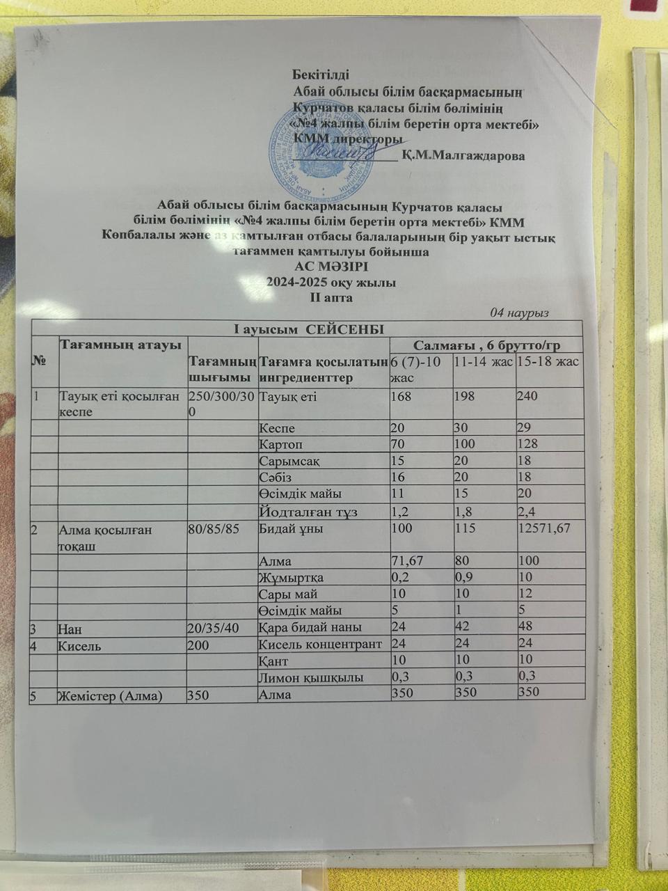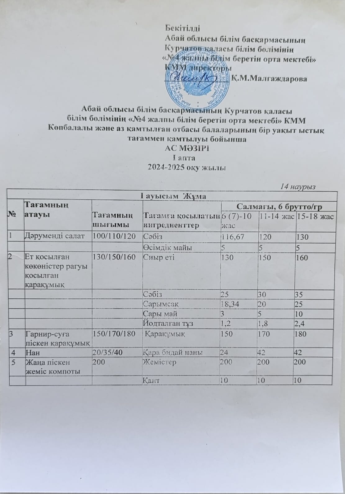 | 1 | 2 апталық 5 күндік ас мәзірі | |
