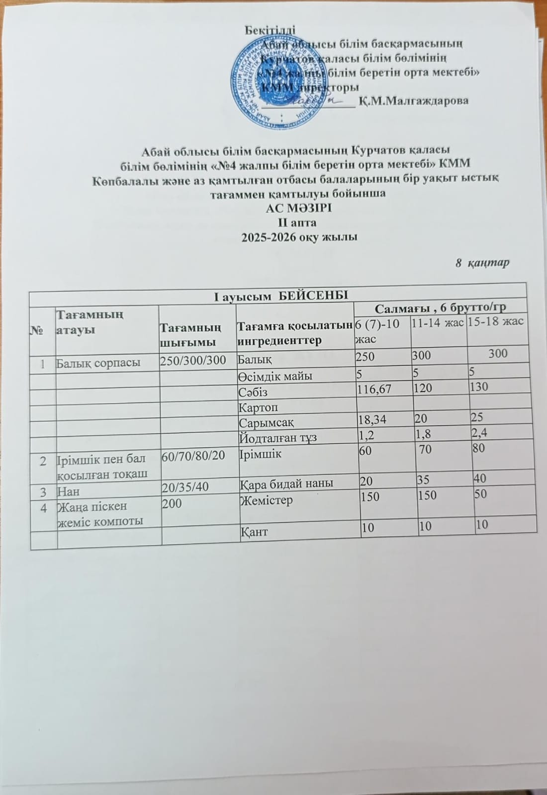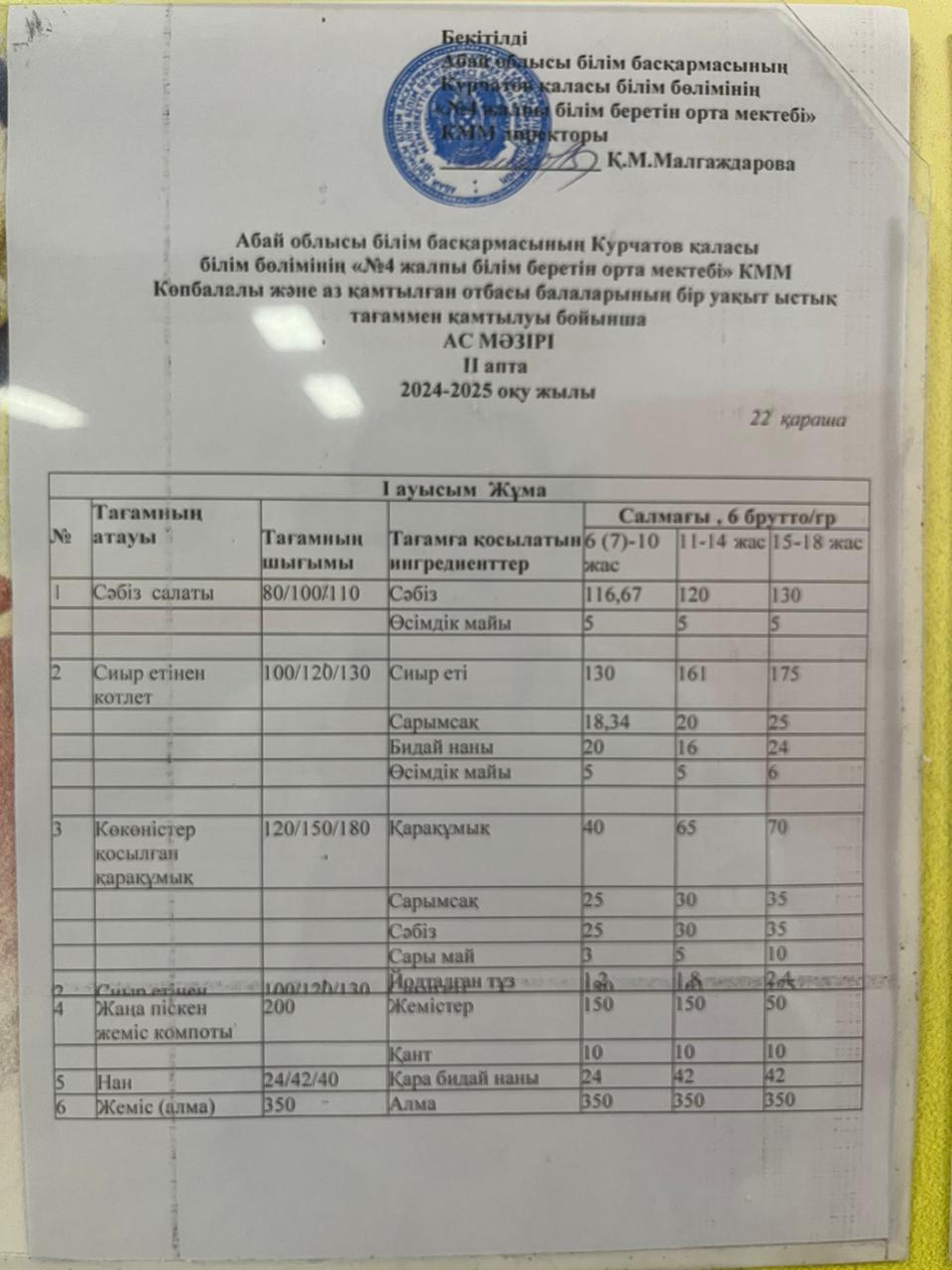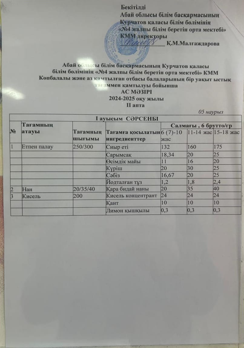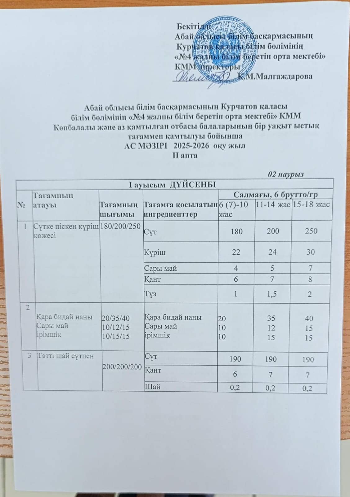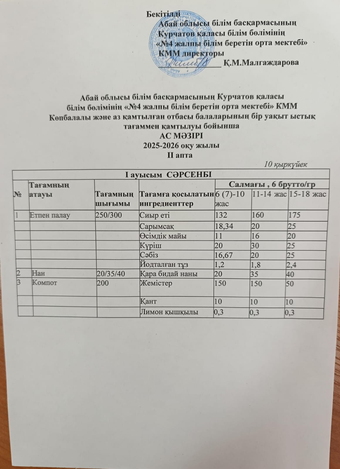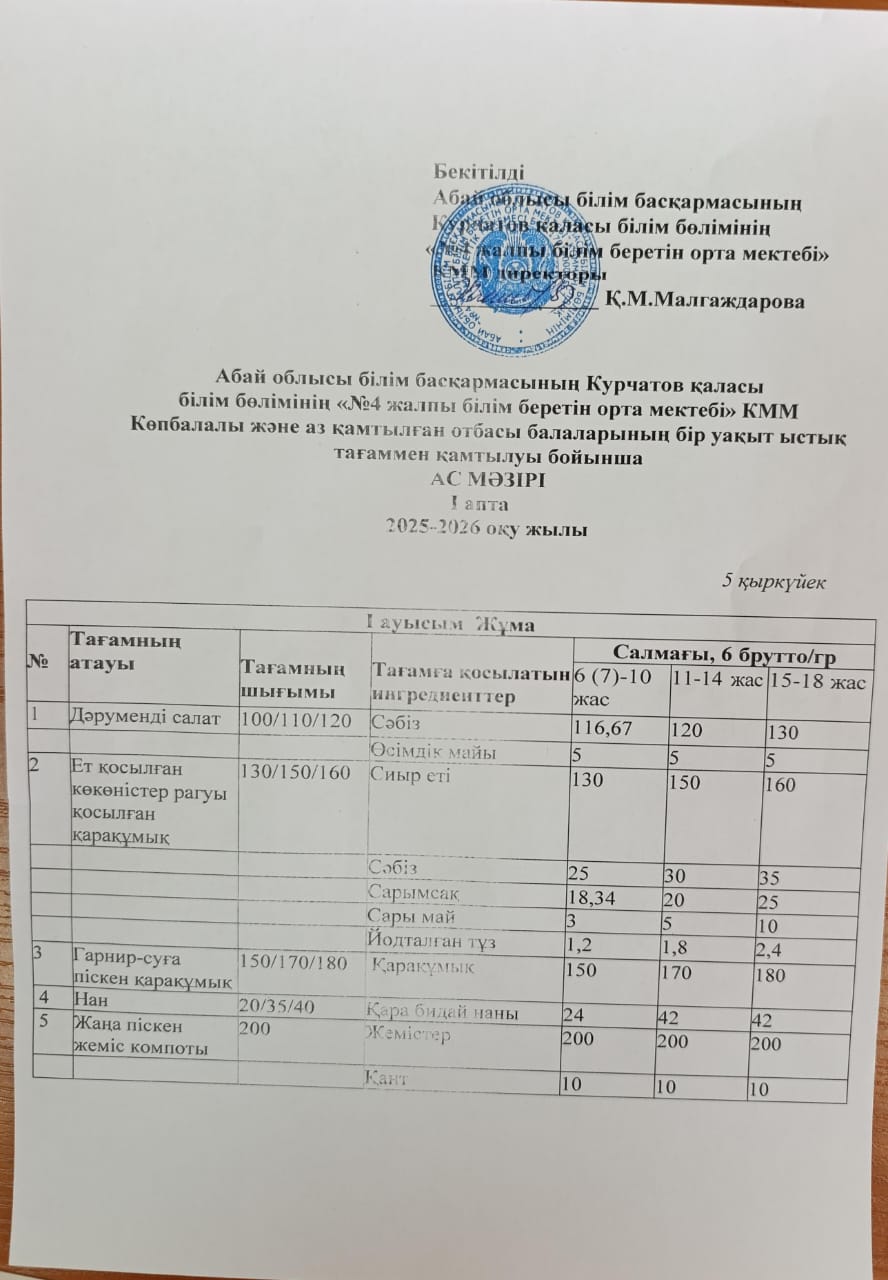 | 1 | 2 апталық 5 күндік ас мәзірі | |