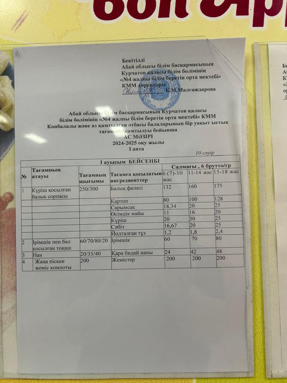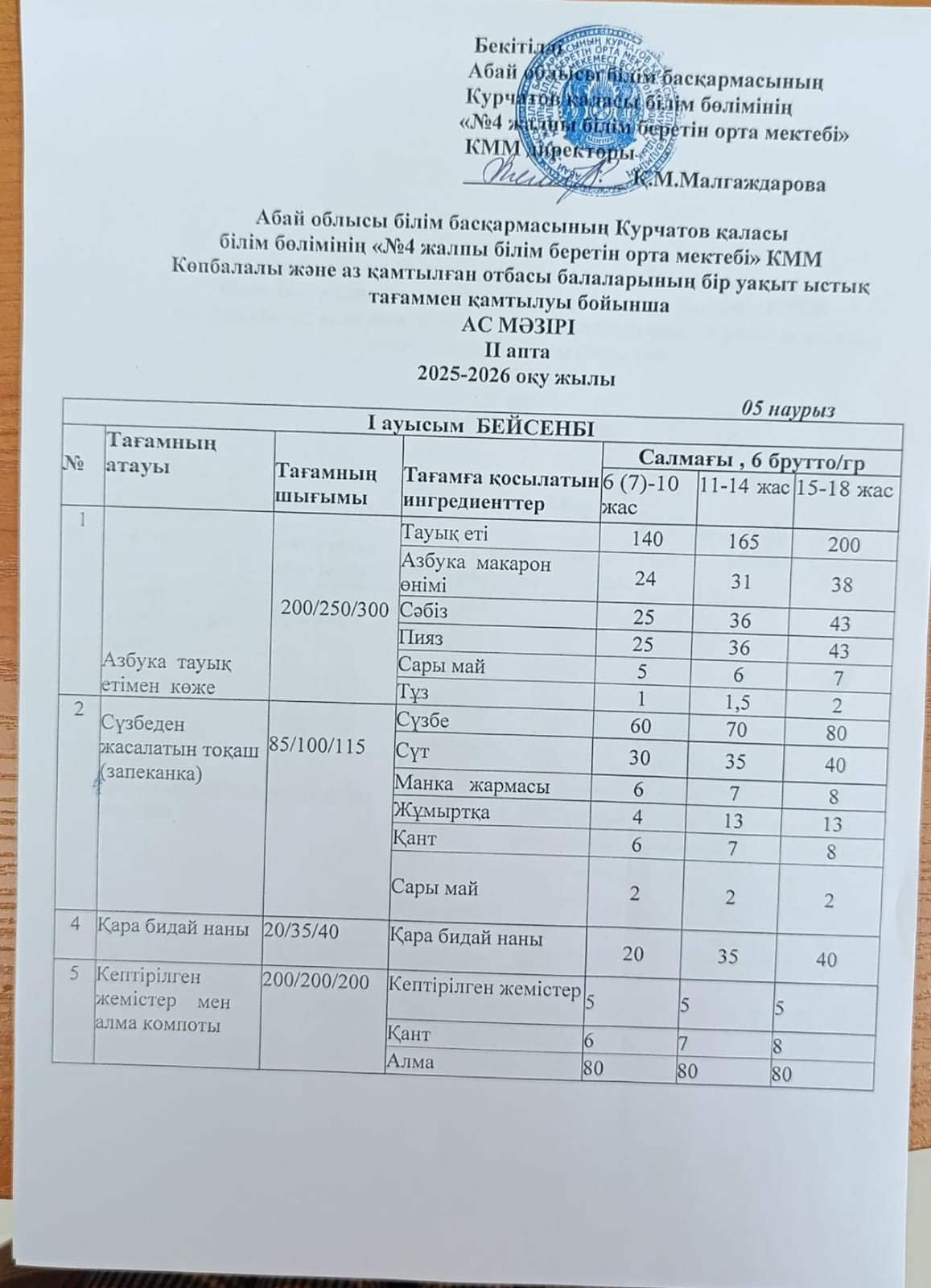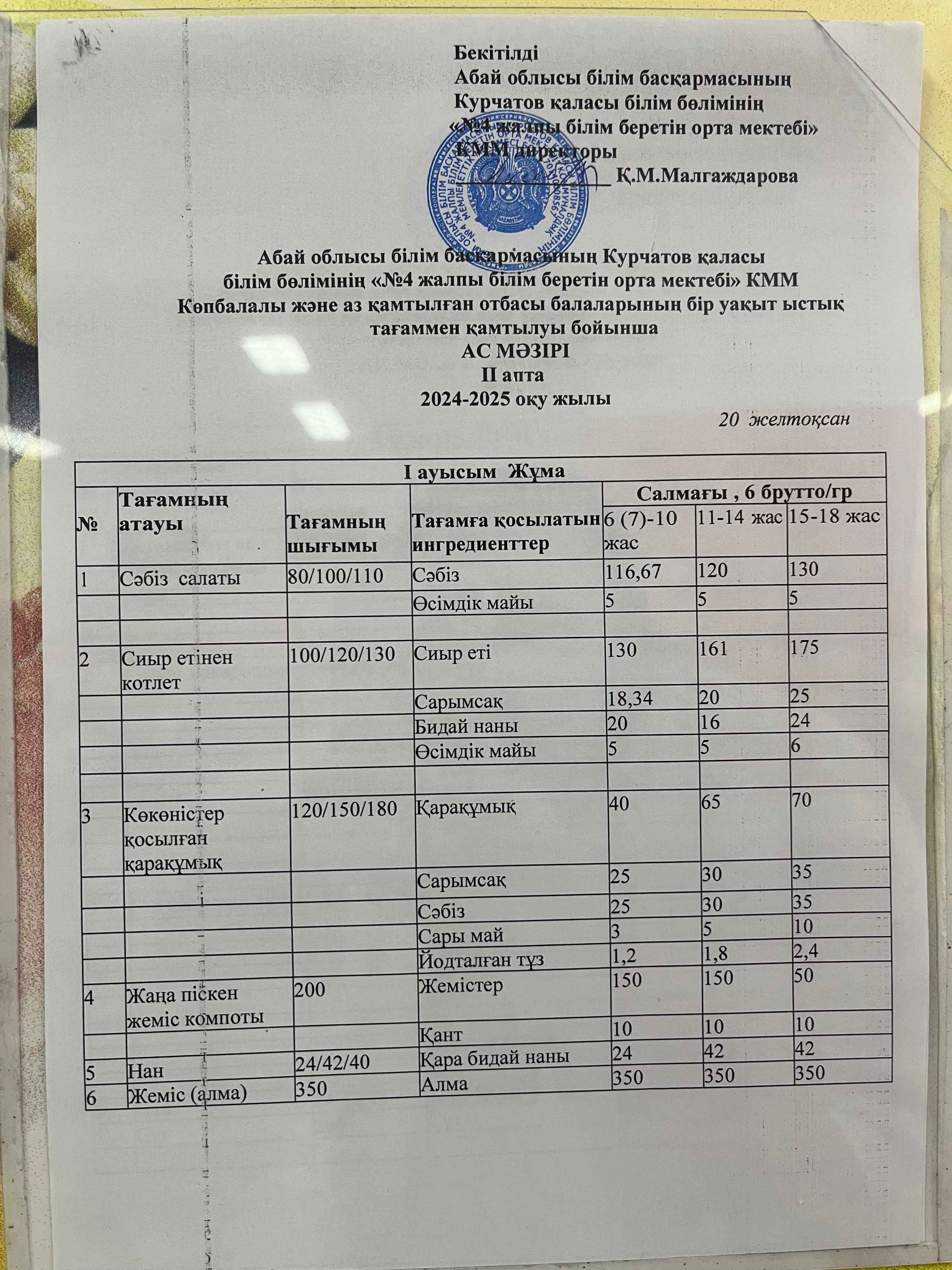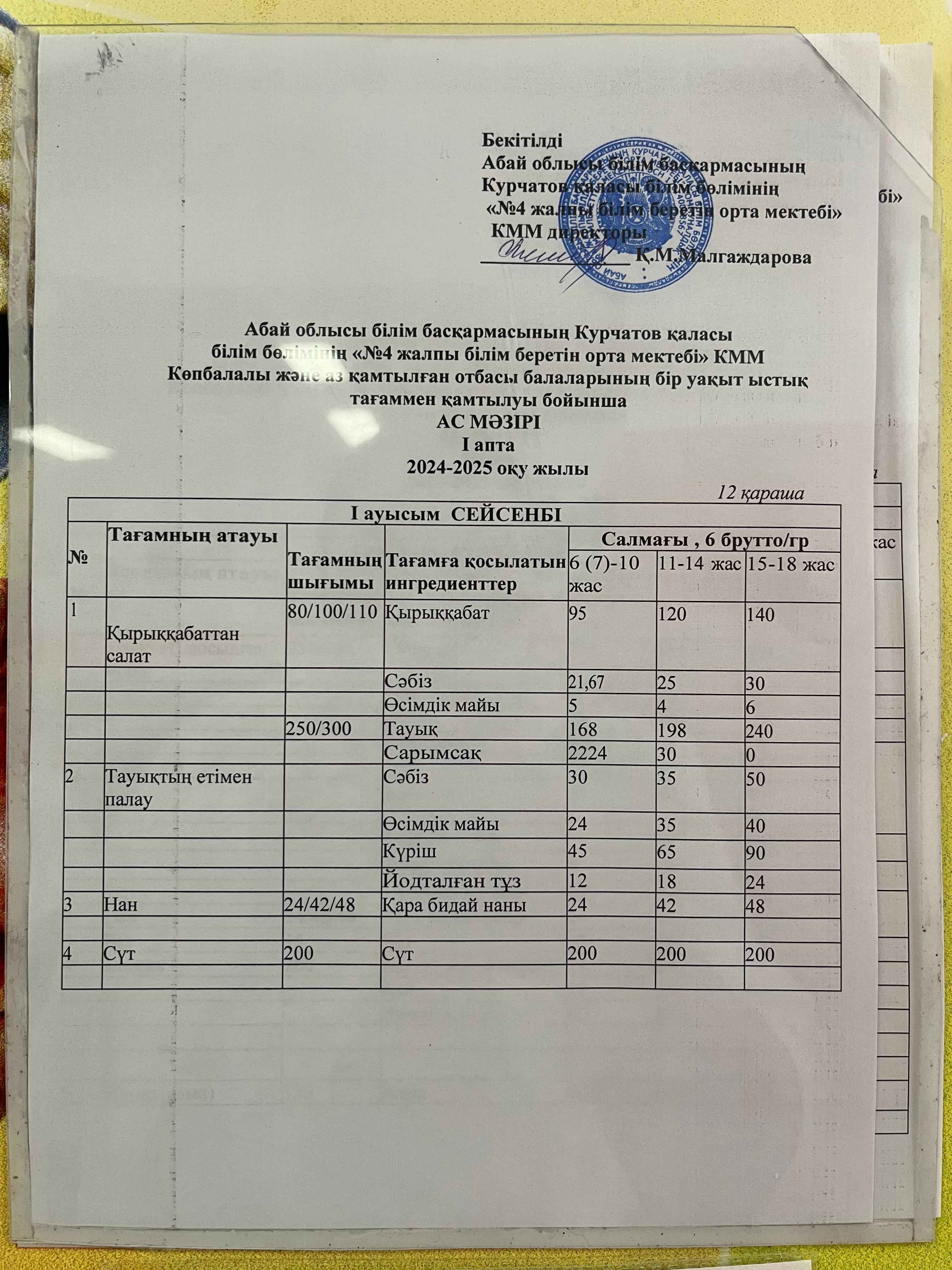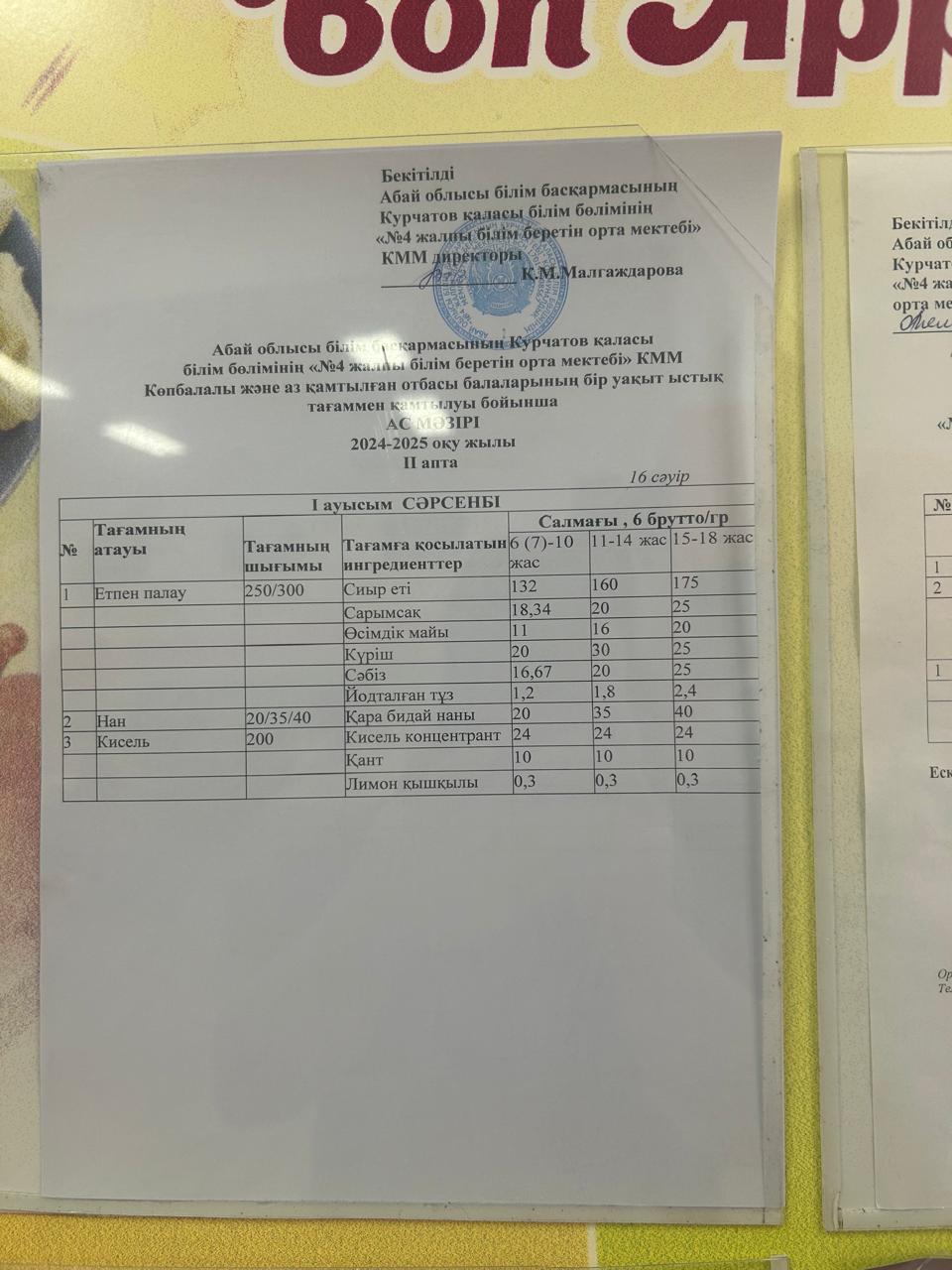 | 1 | 2 апталық 5 күндік ас мәзірі | |
