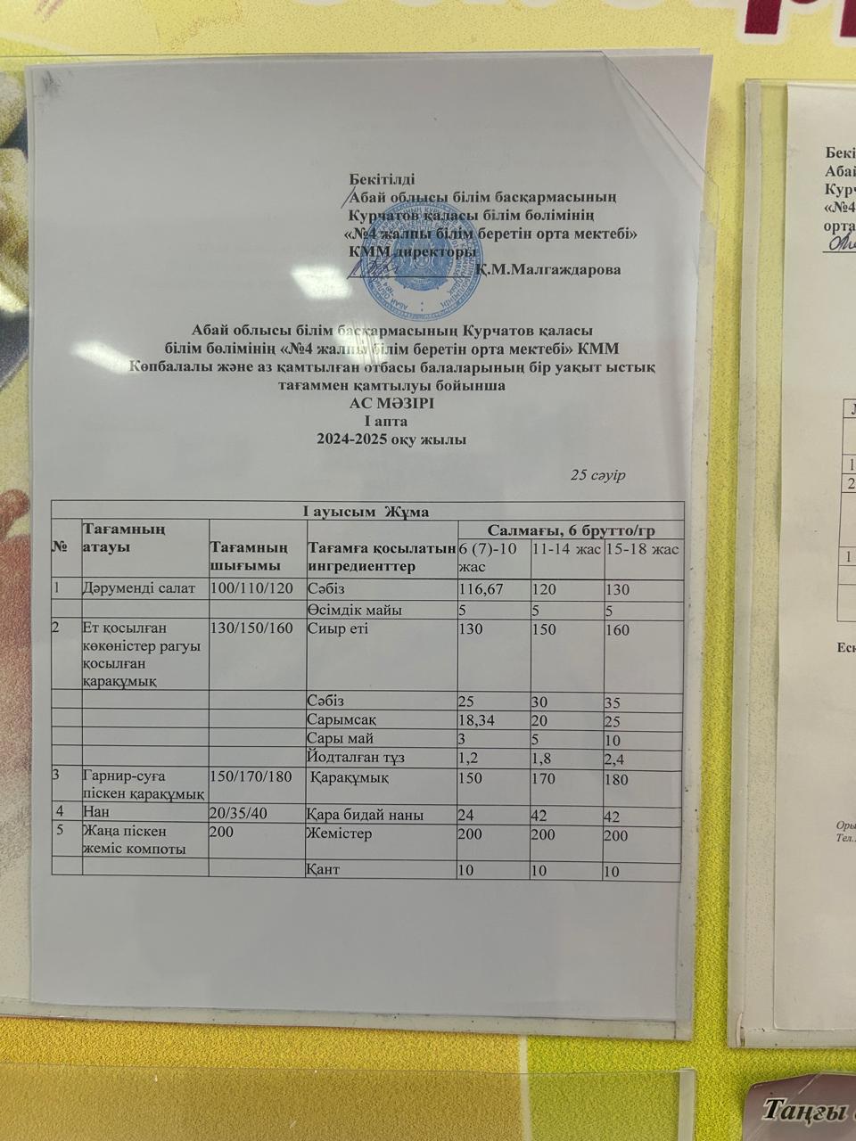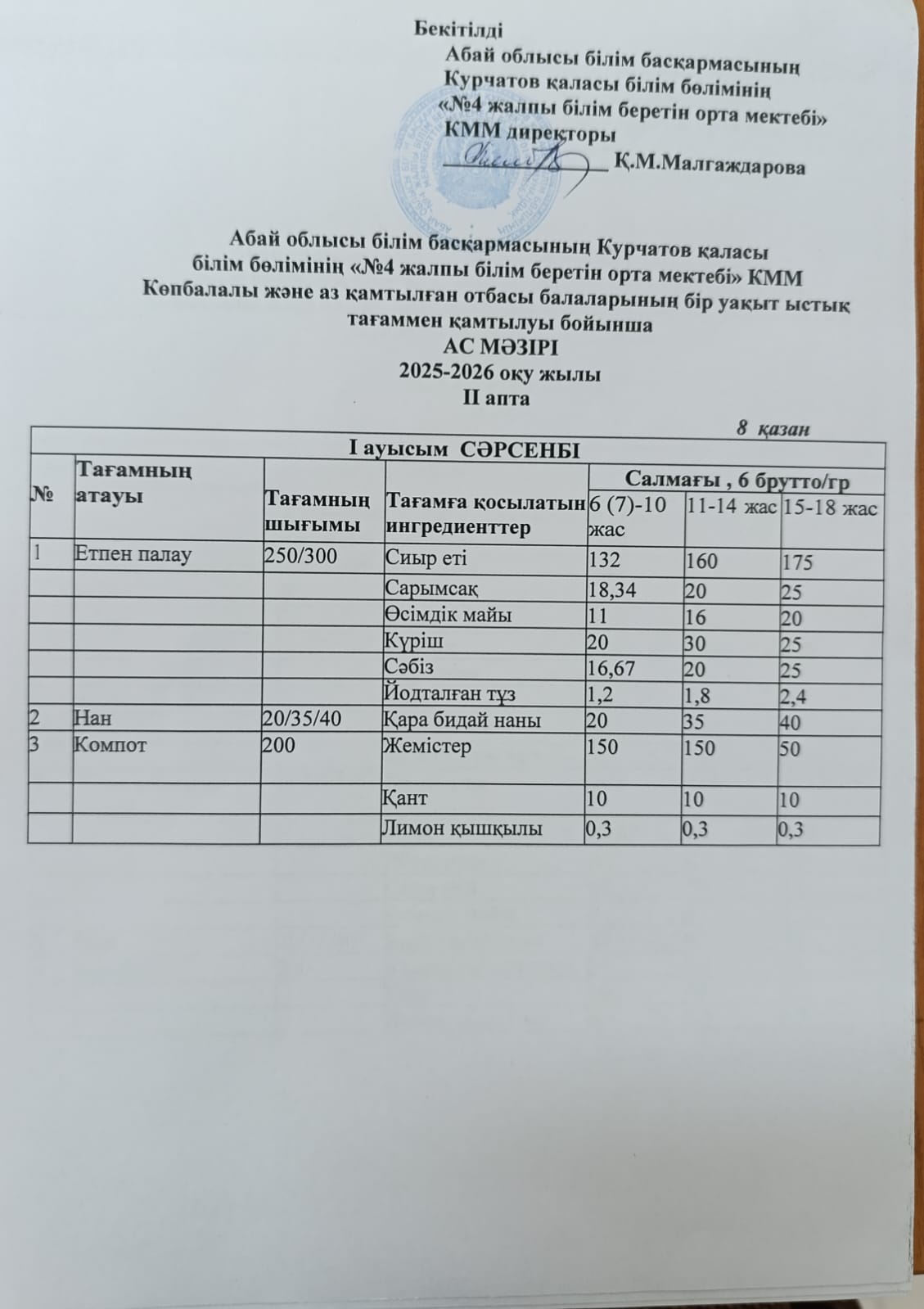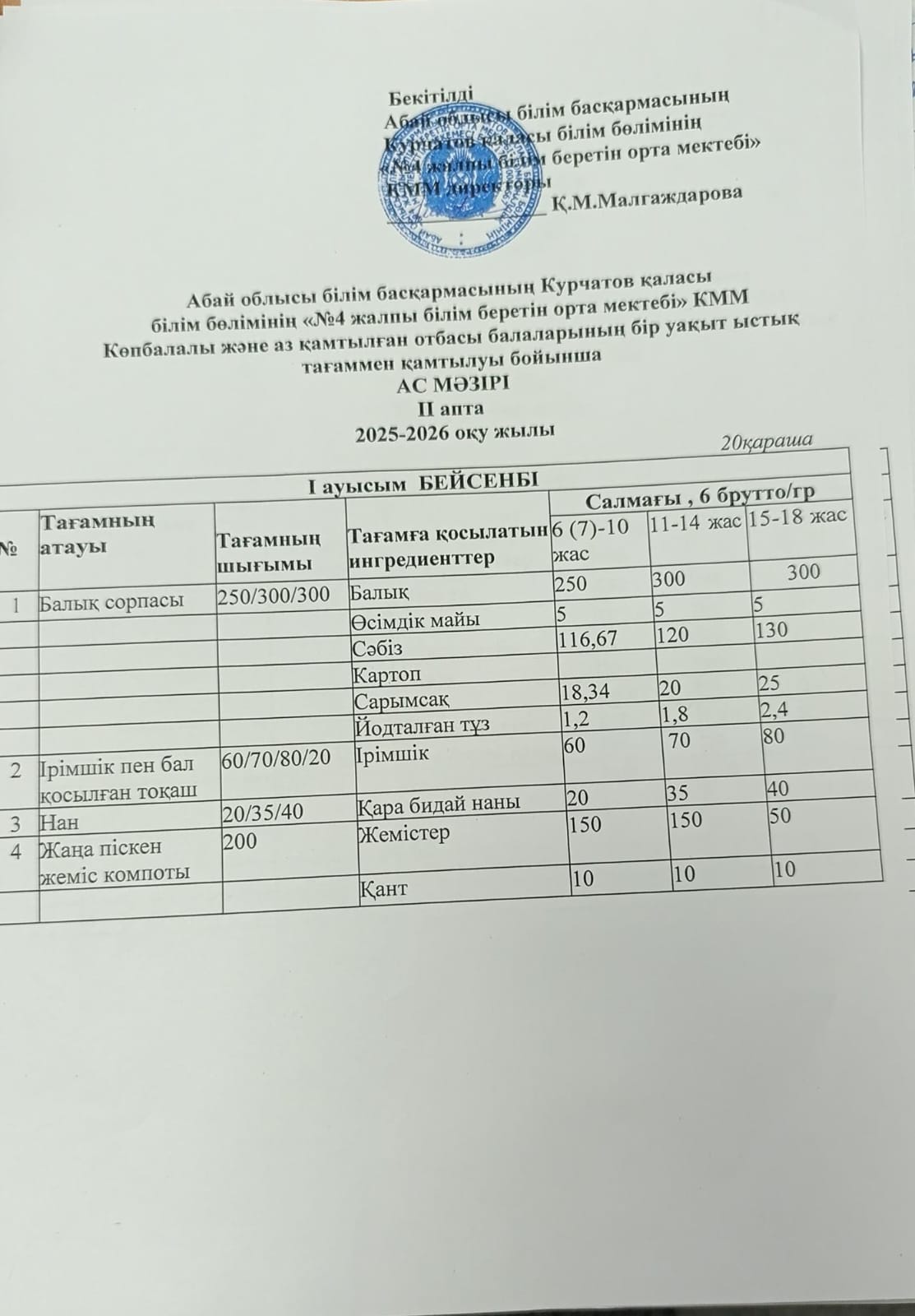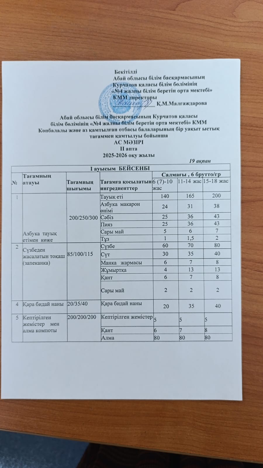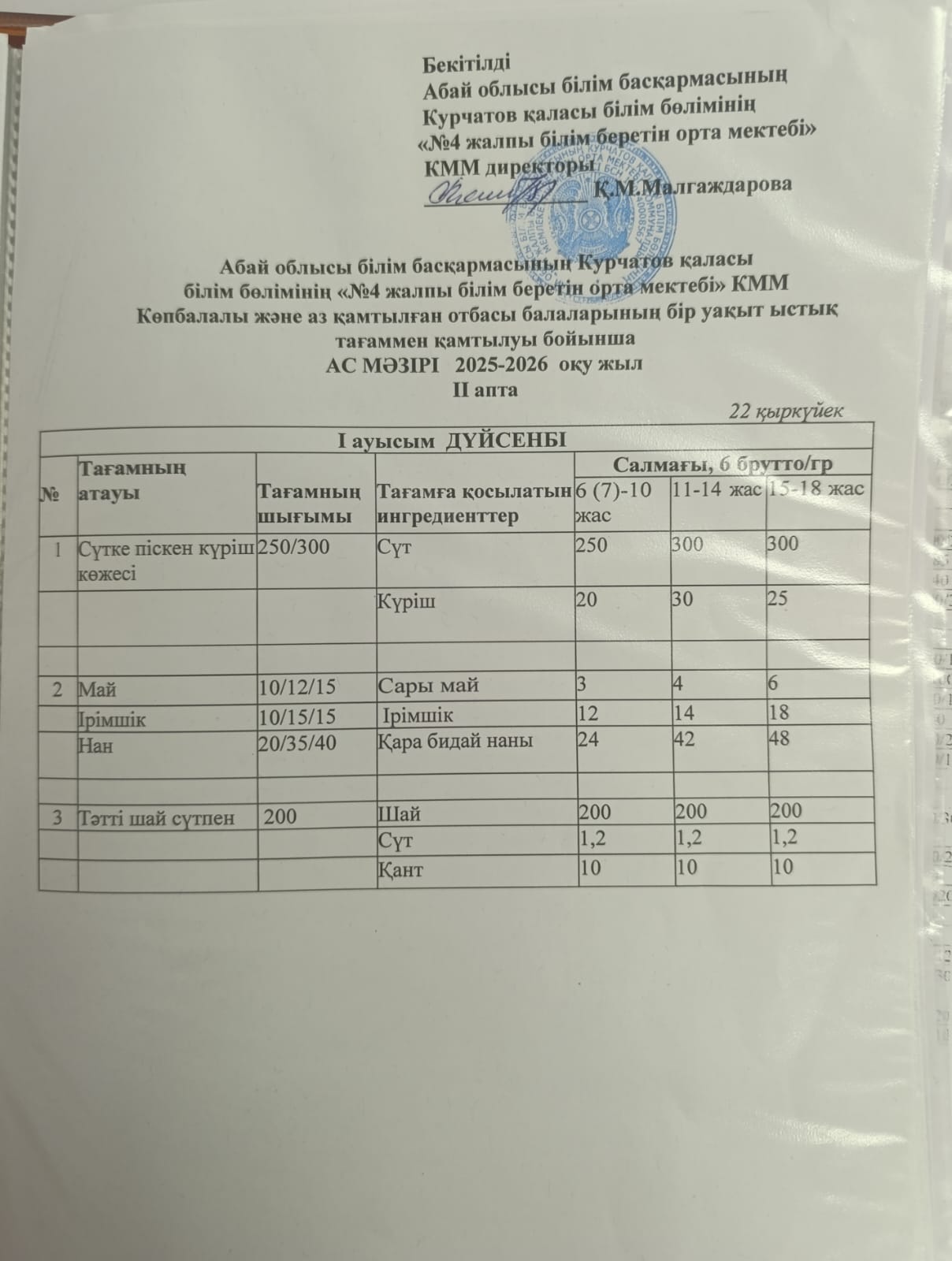 | 1 | 2 апталық 5 күндік ас мәзірі | |