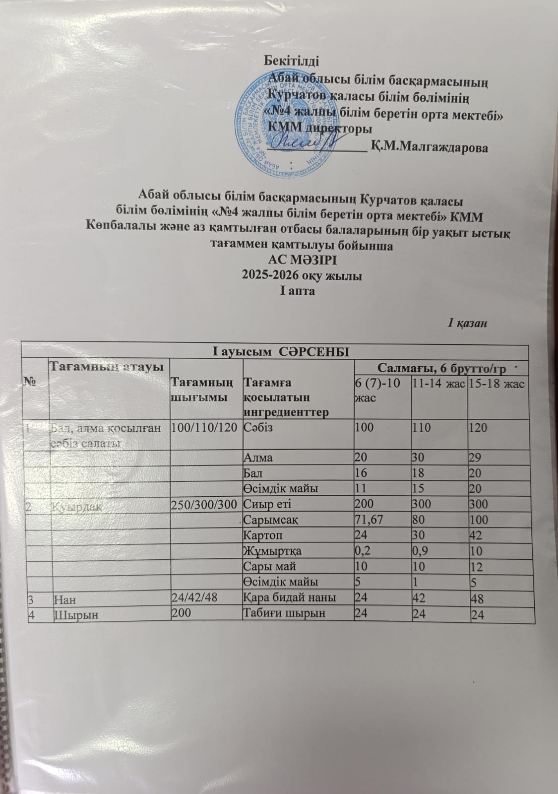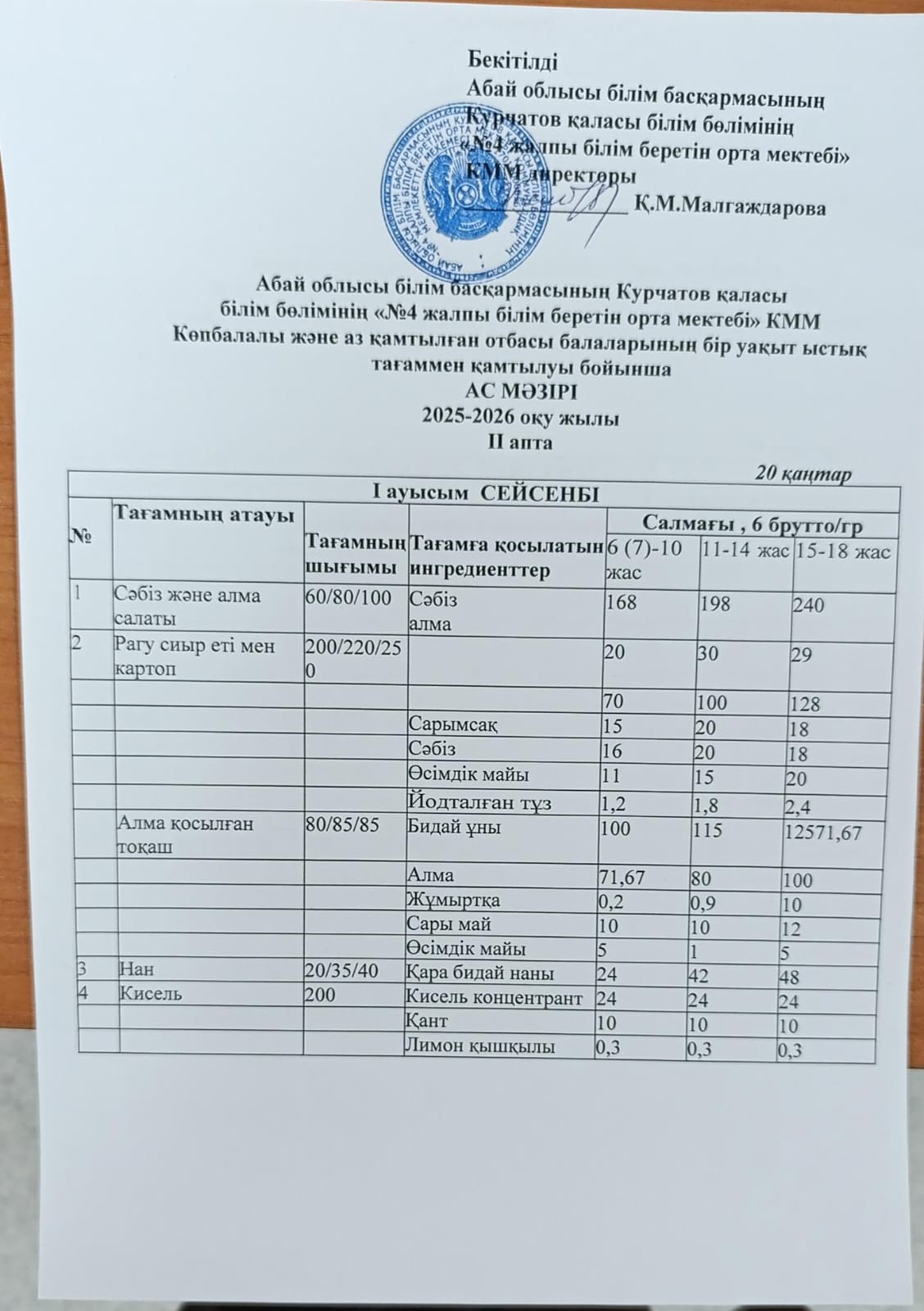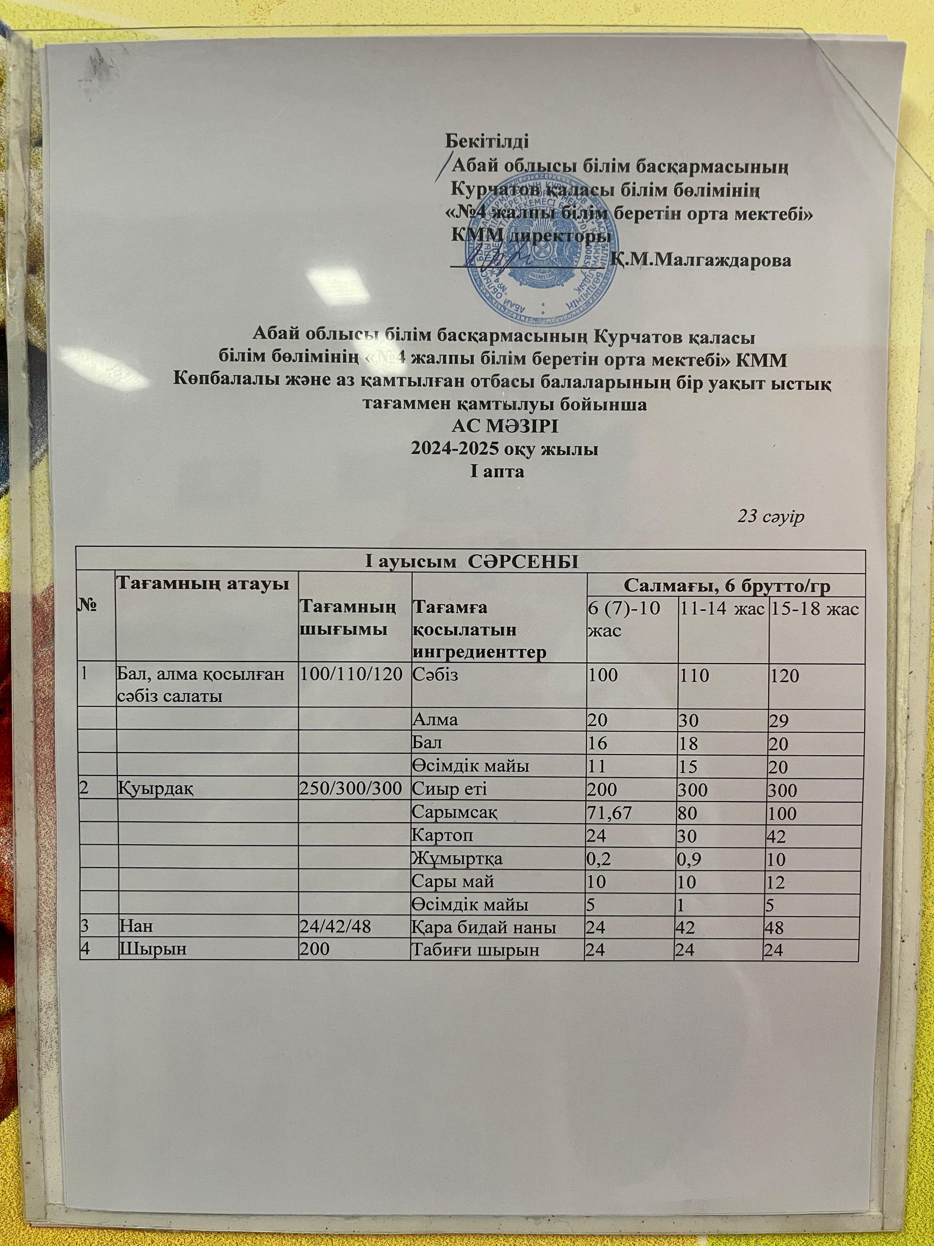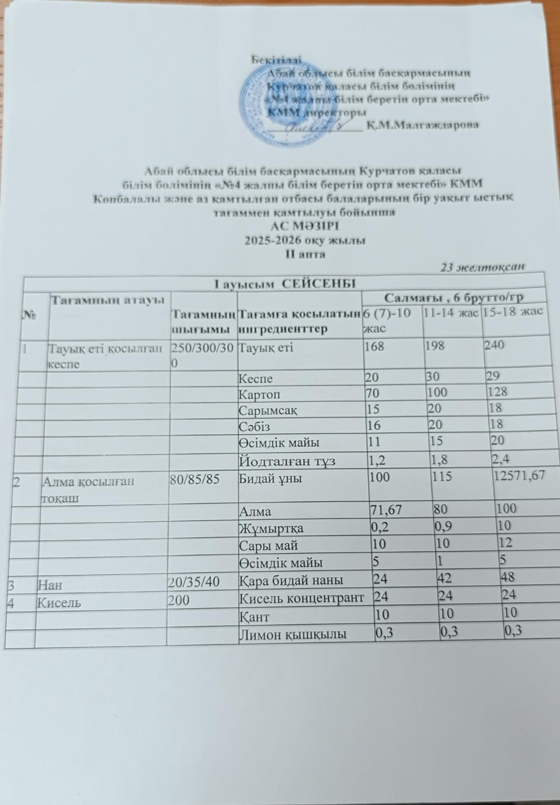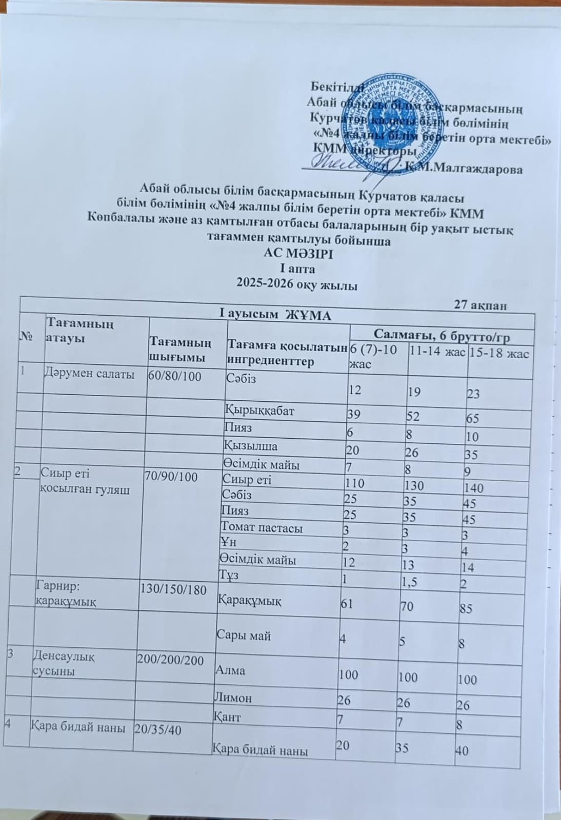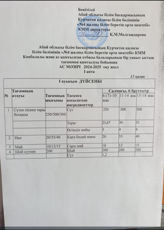 | 1 | 2 апталық 5 күндік ас мәзірі | |