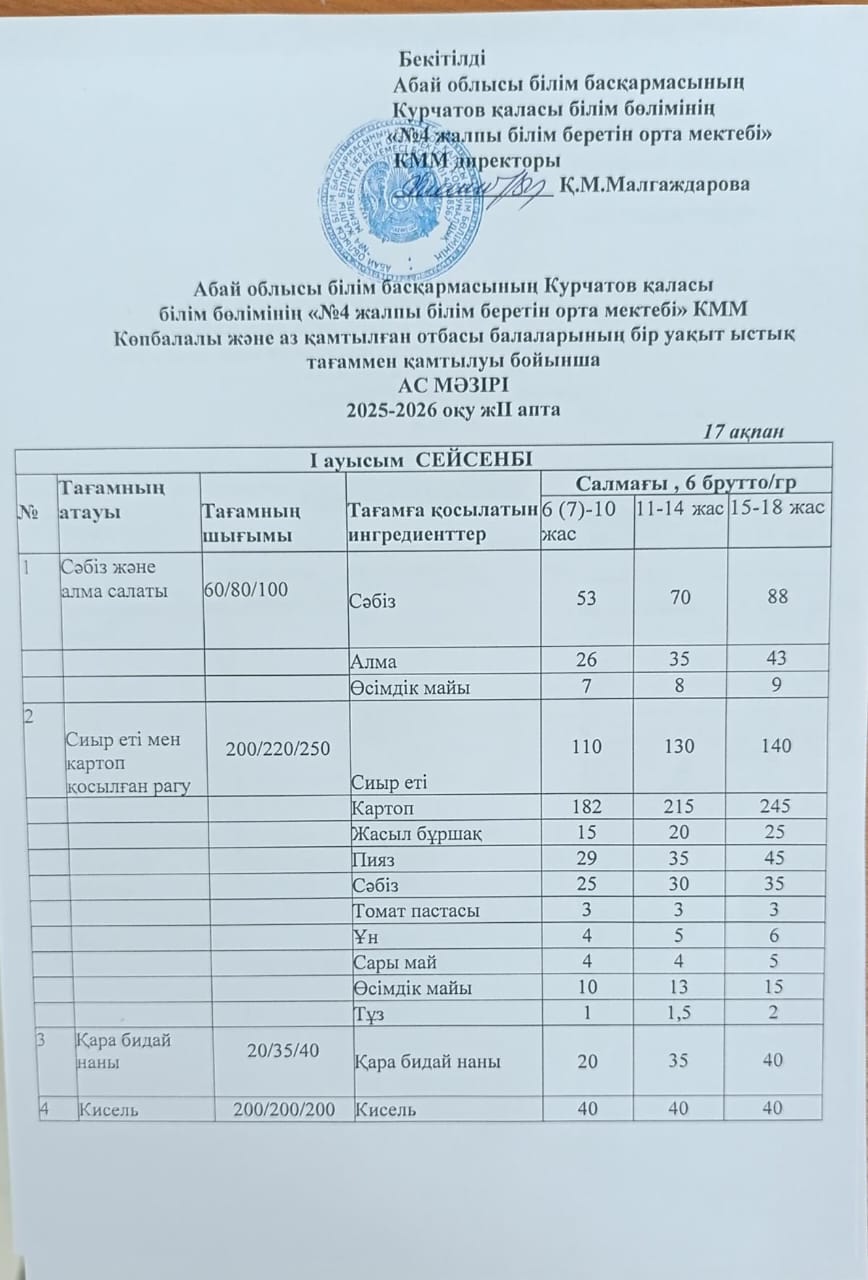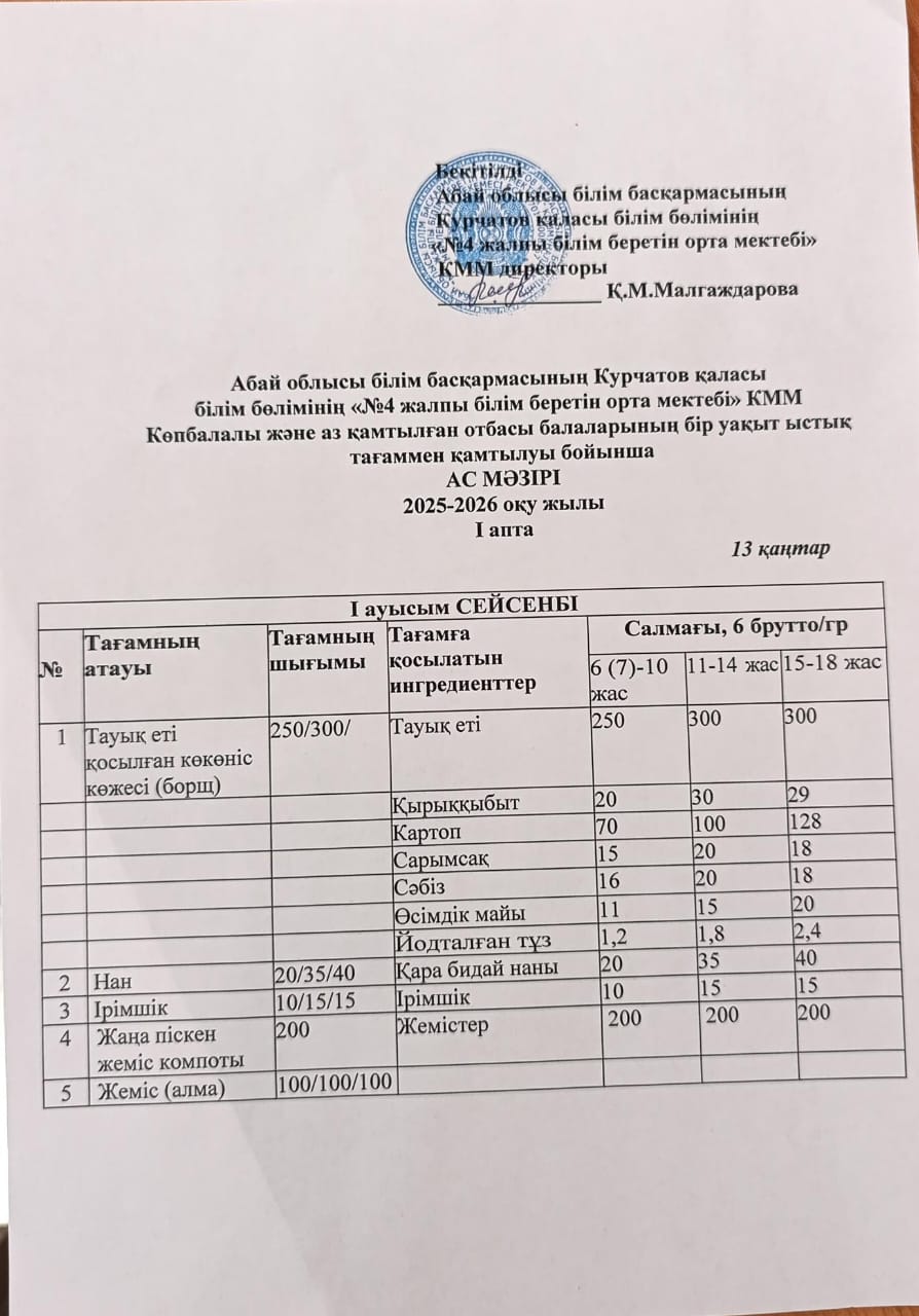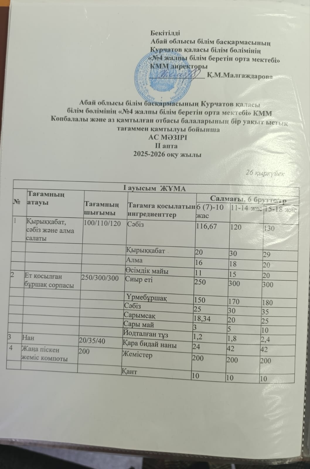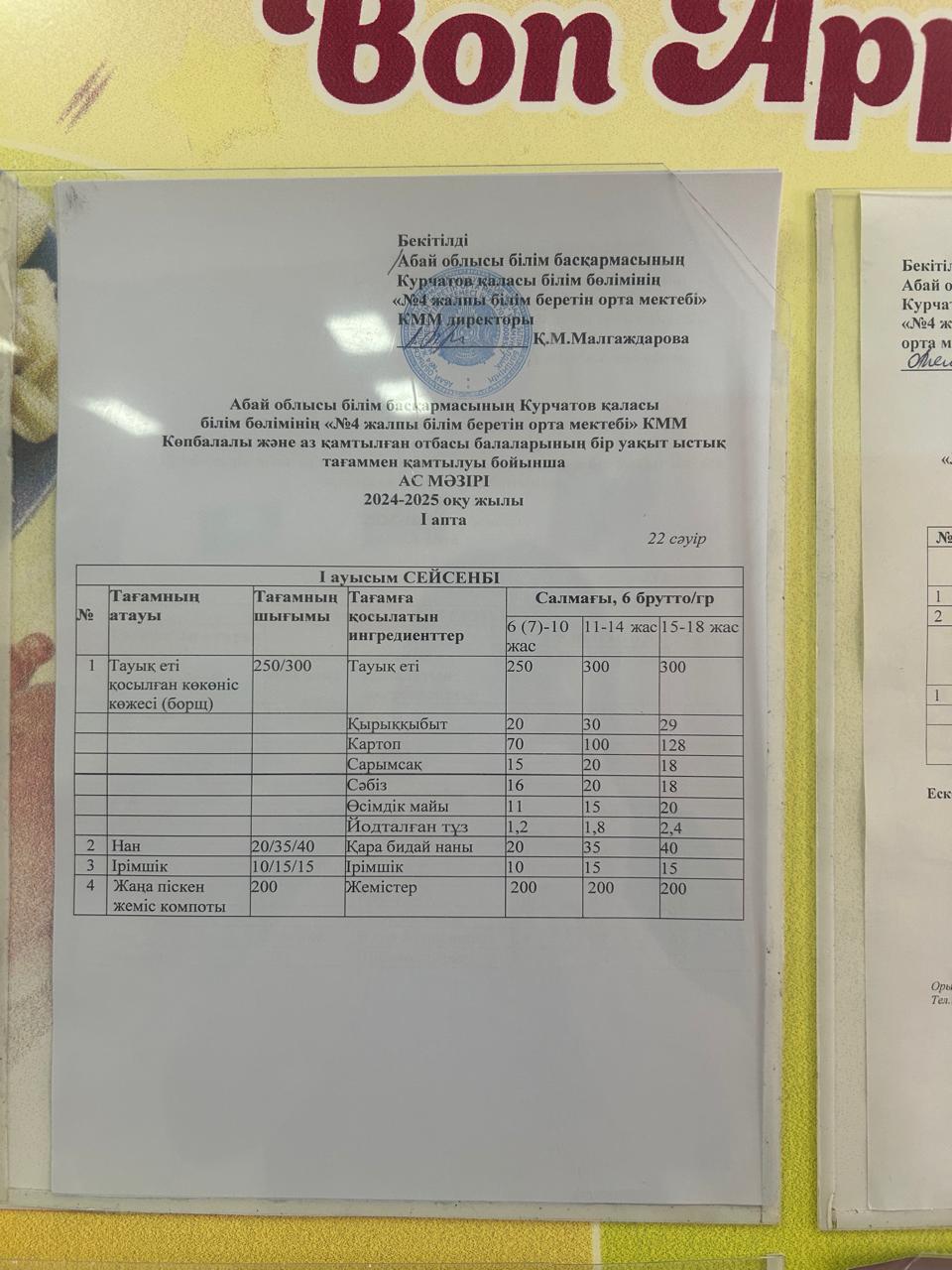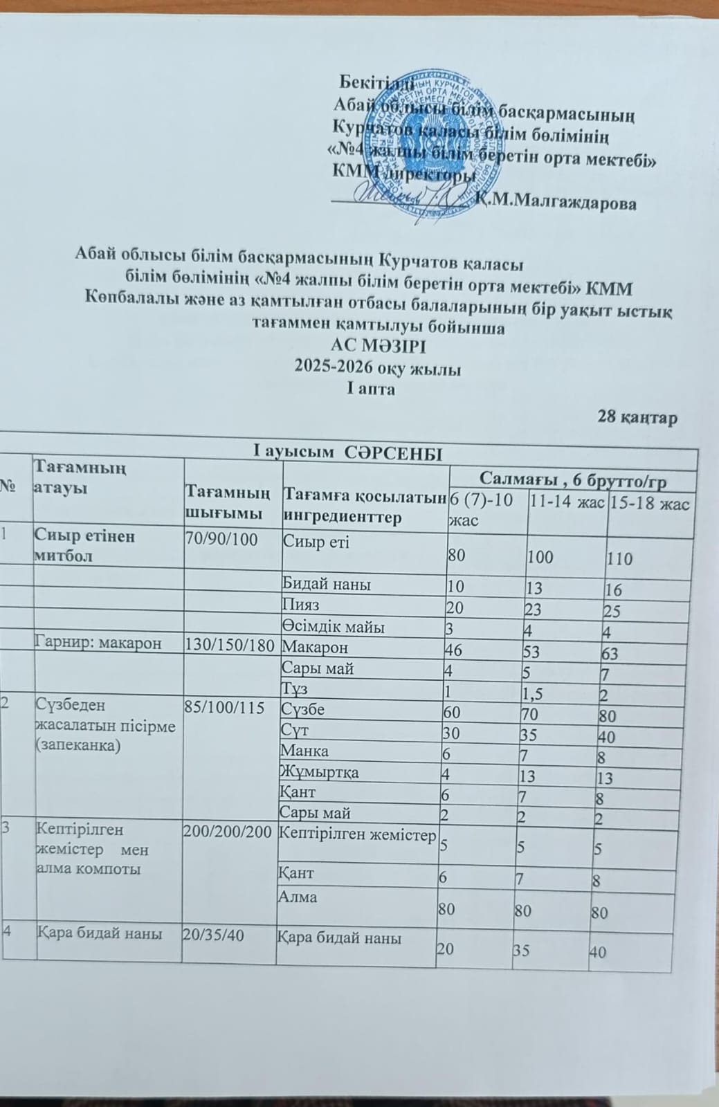| 1 | 2 апталық 5 күндік ас мәзірі | |