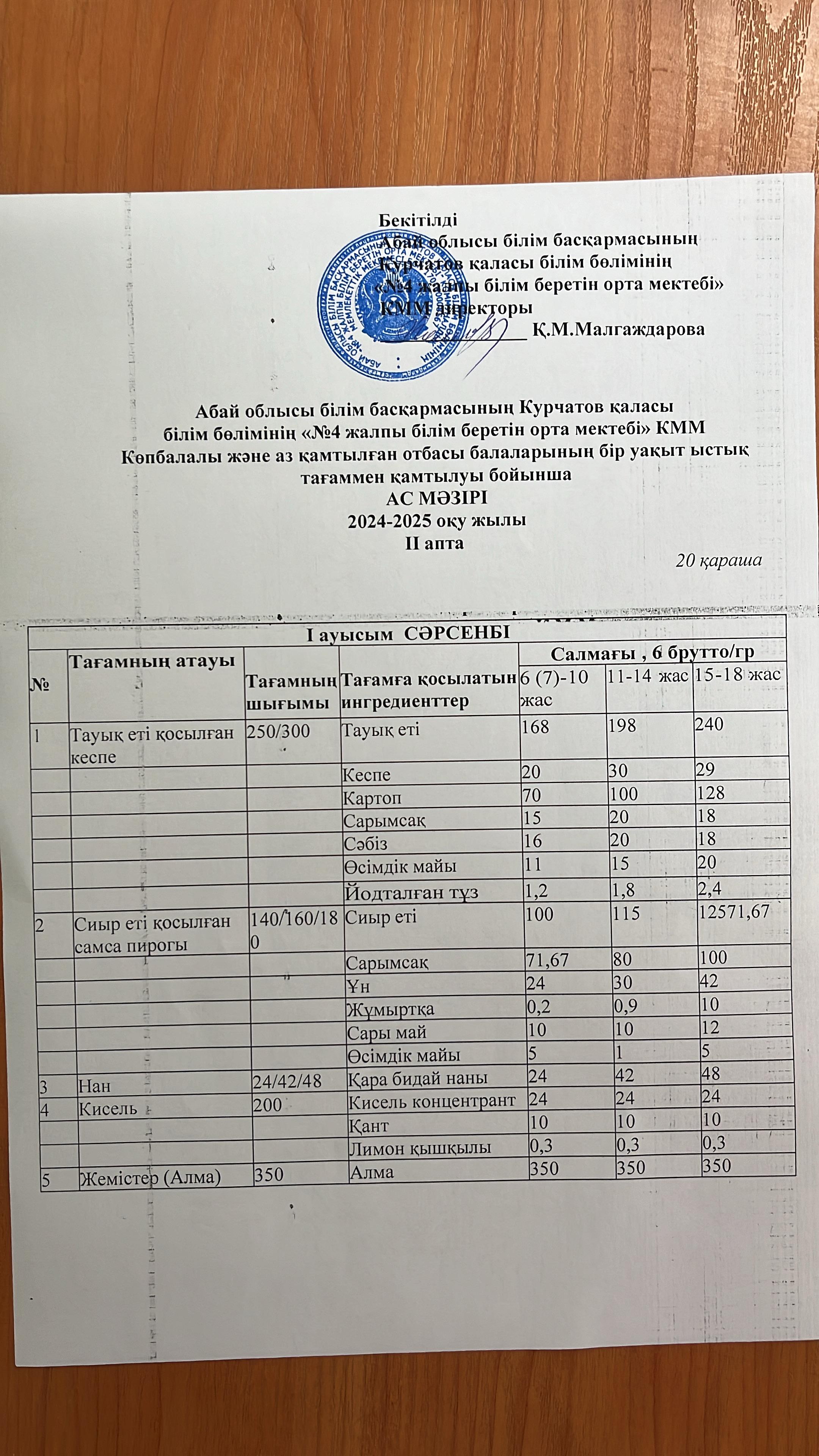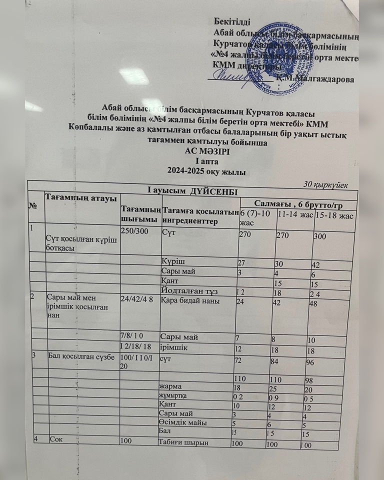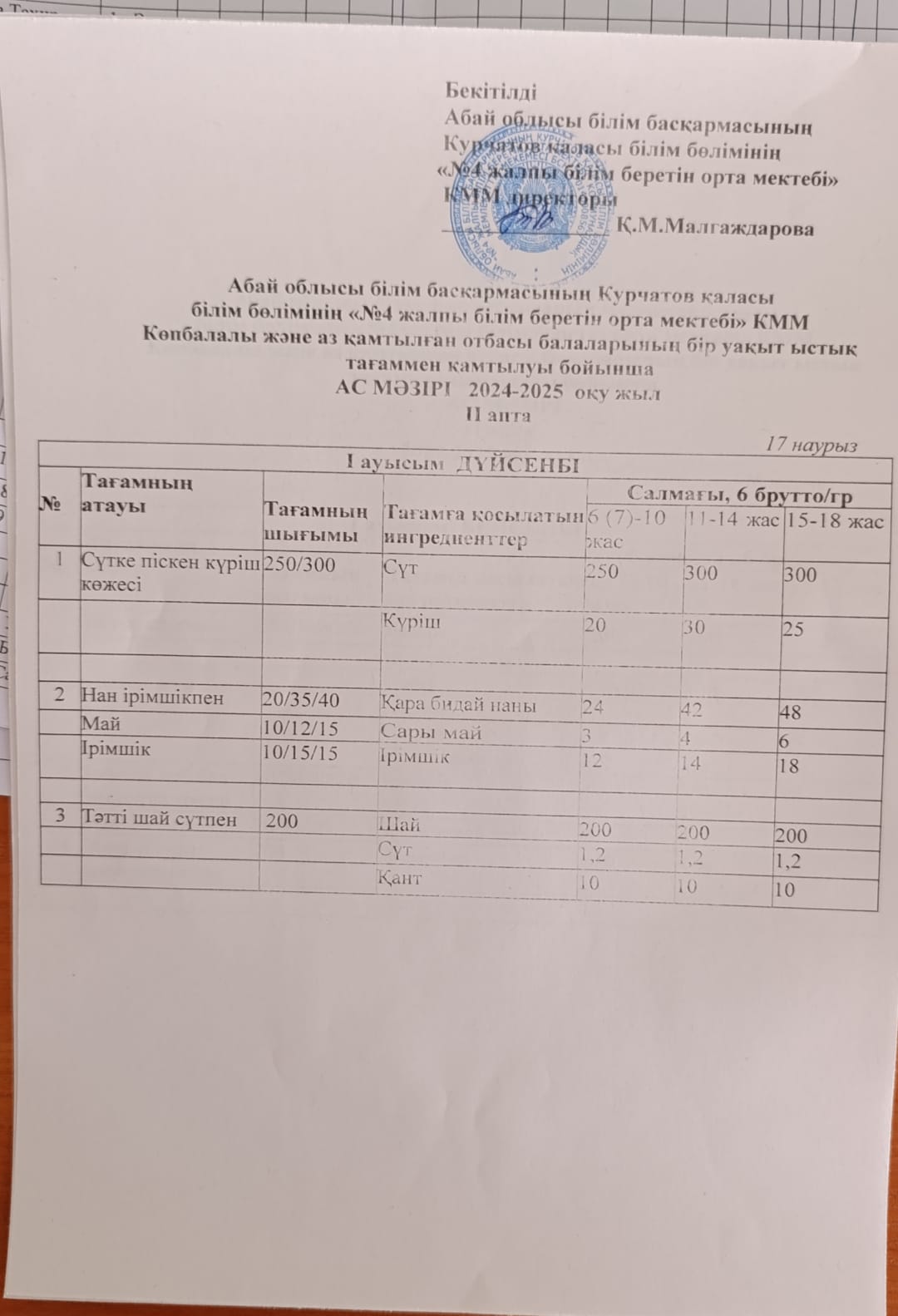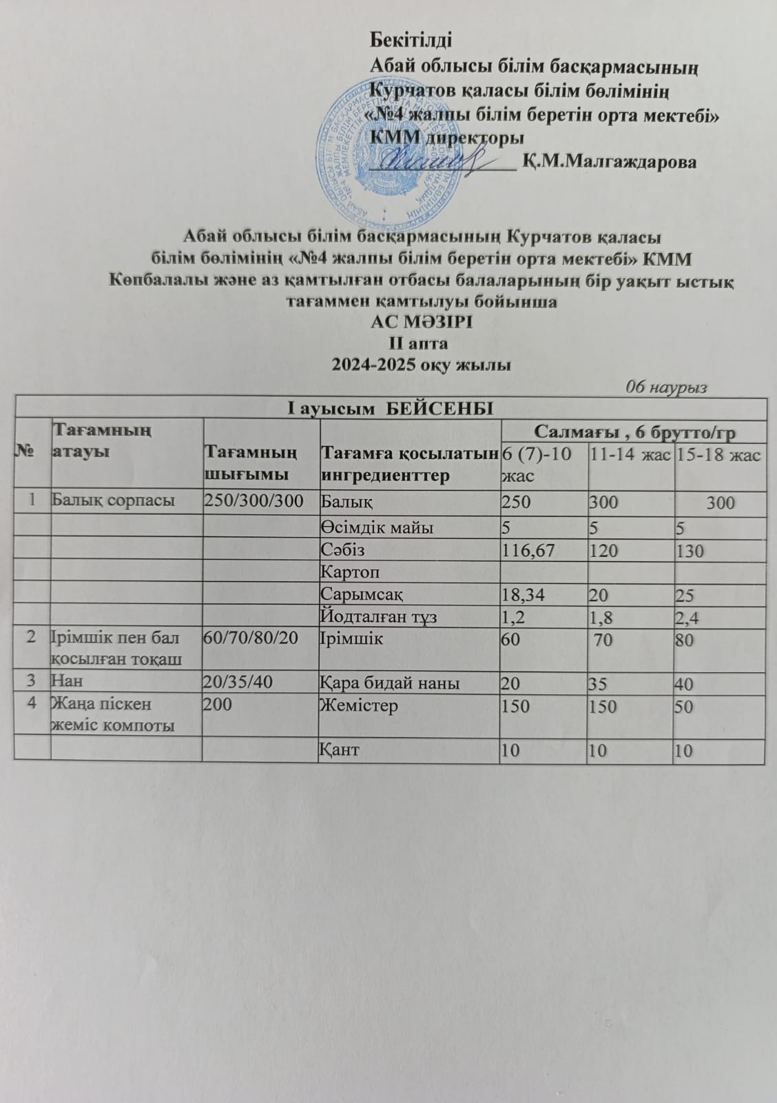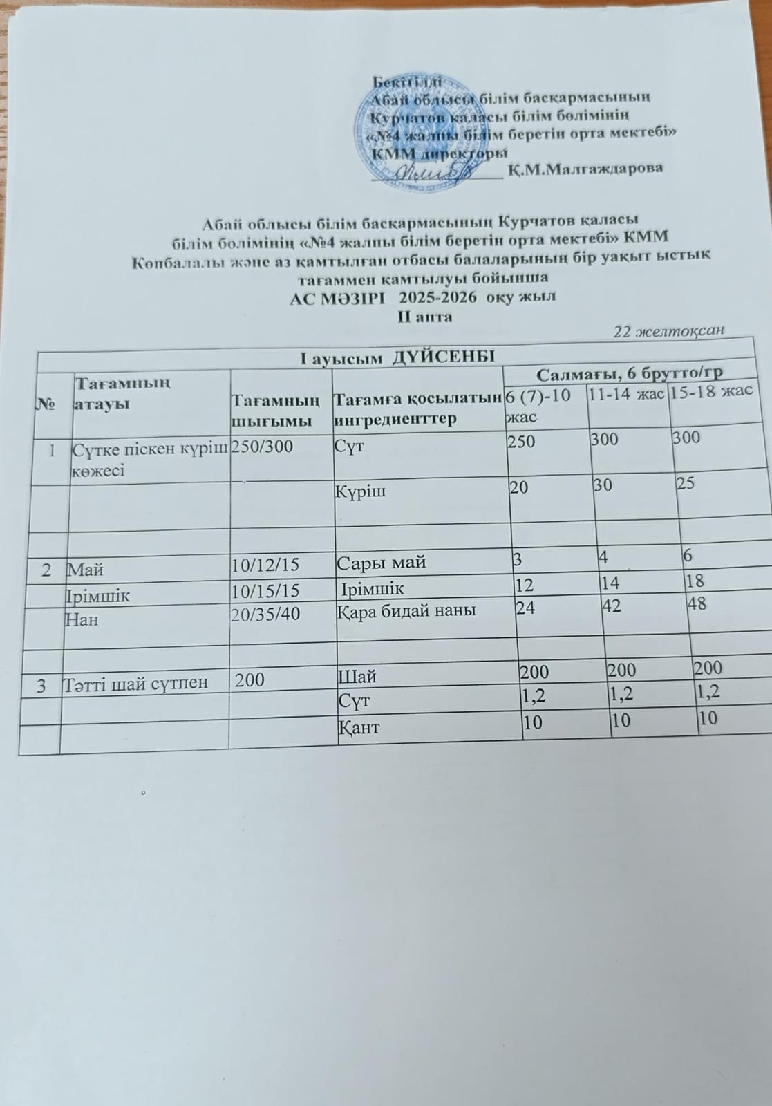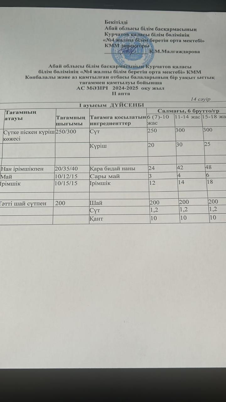 | 1 | 2 апталық 5 күндік ас мәзірі | |