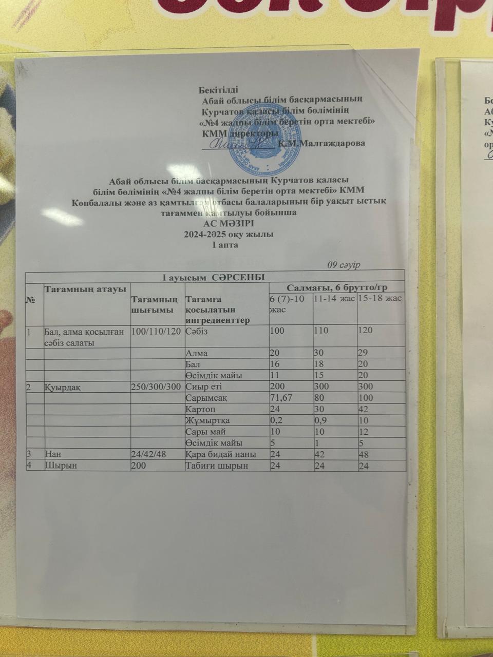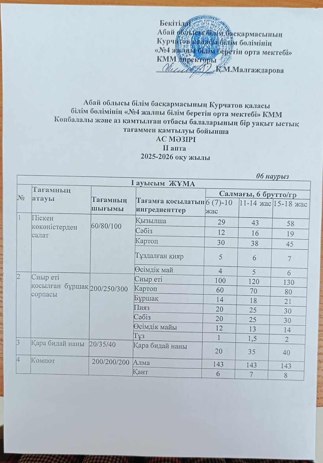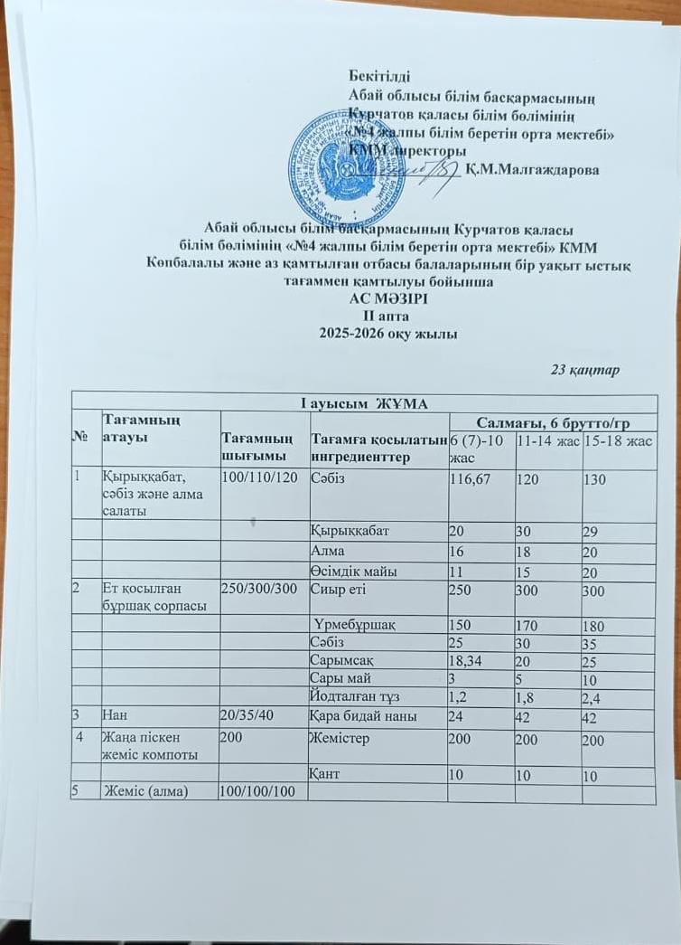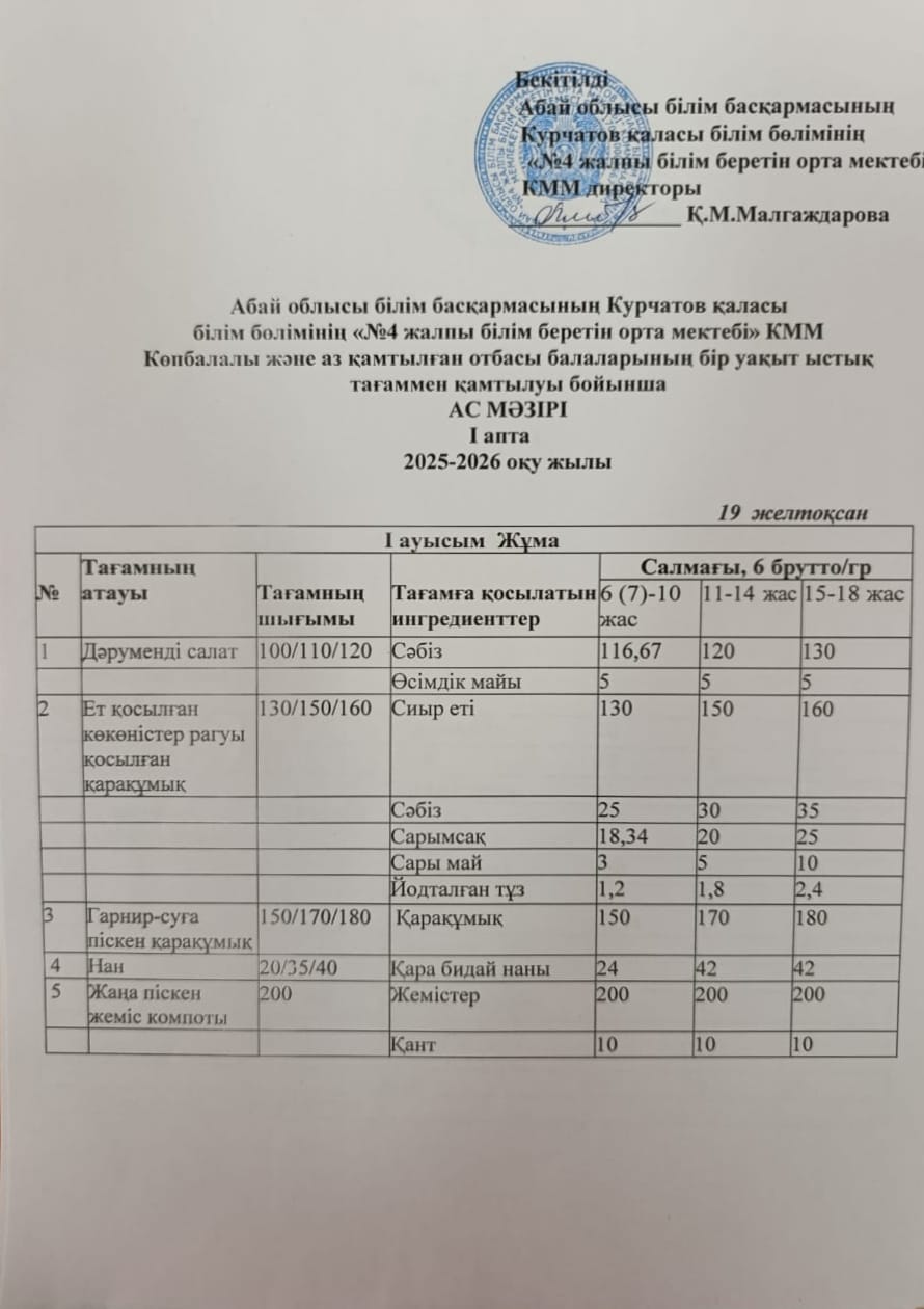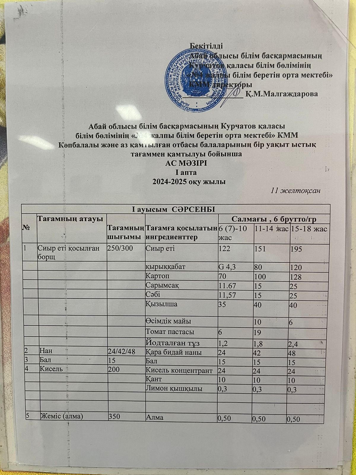 | 1 | 2 апталық 5 күндік ас мәзірі | |