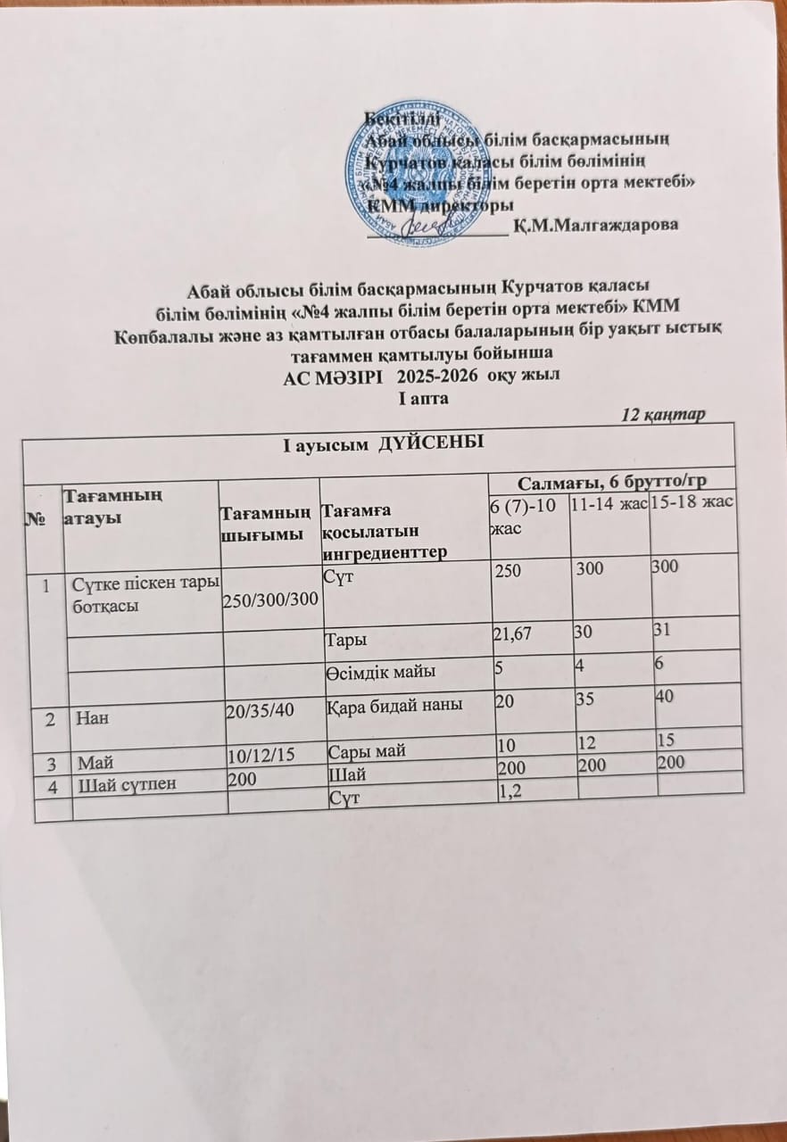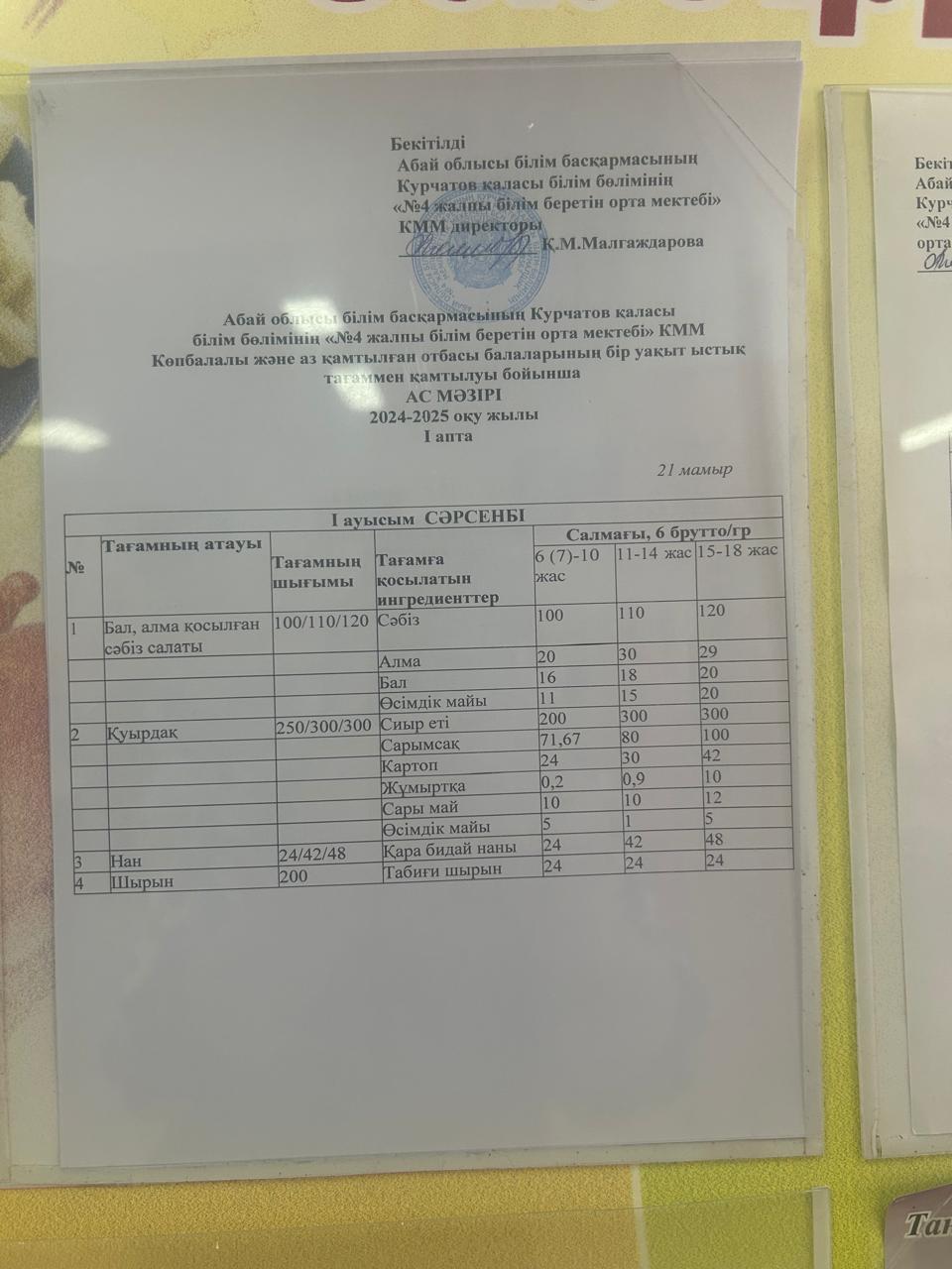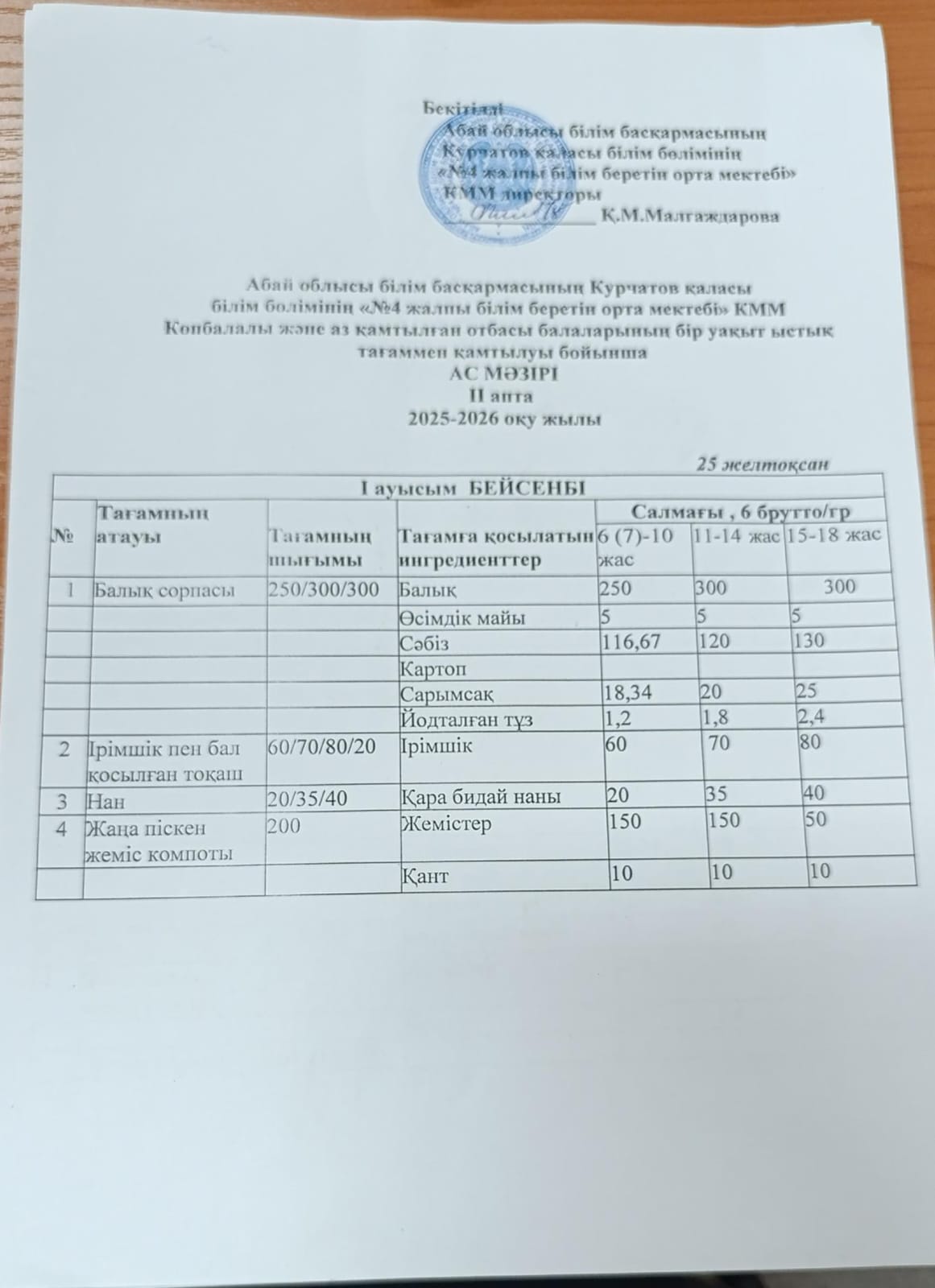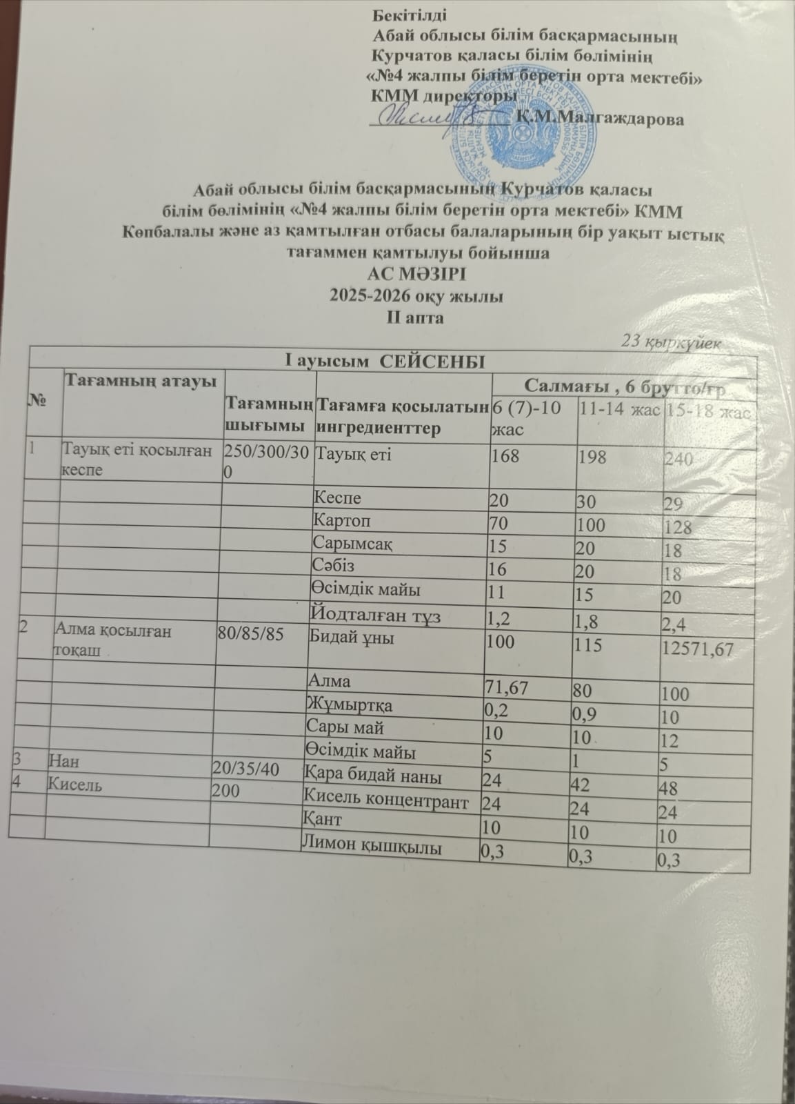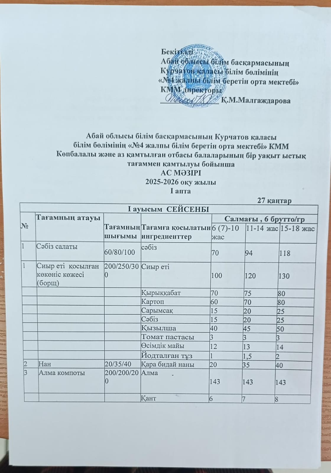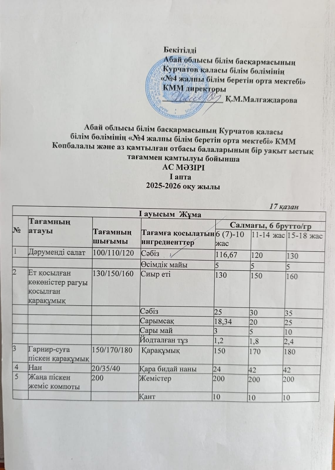 | 1 | 2 апталық 5 күндік ас мәзірі | |