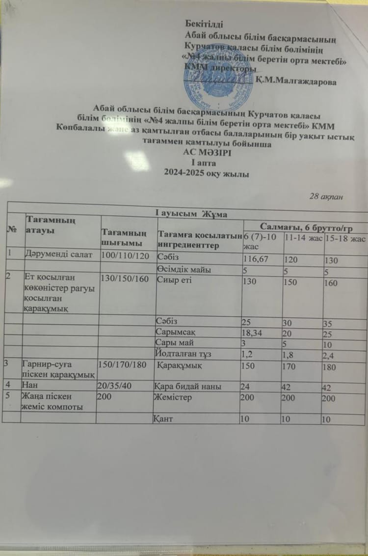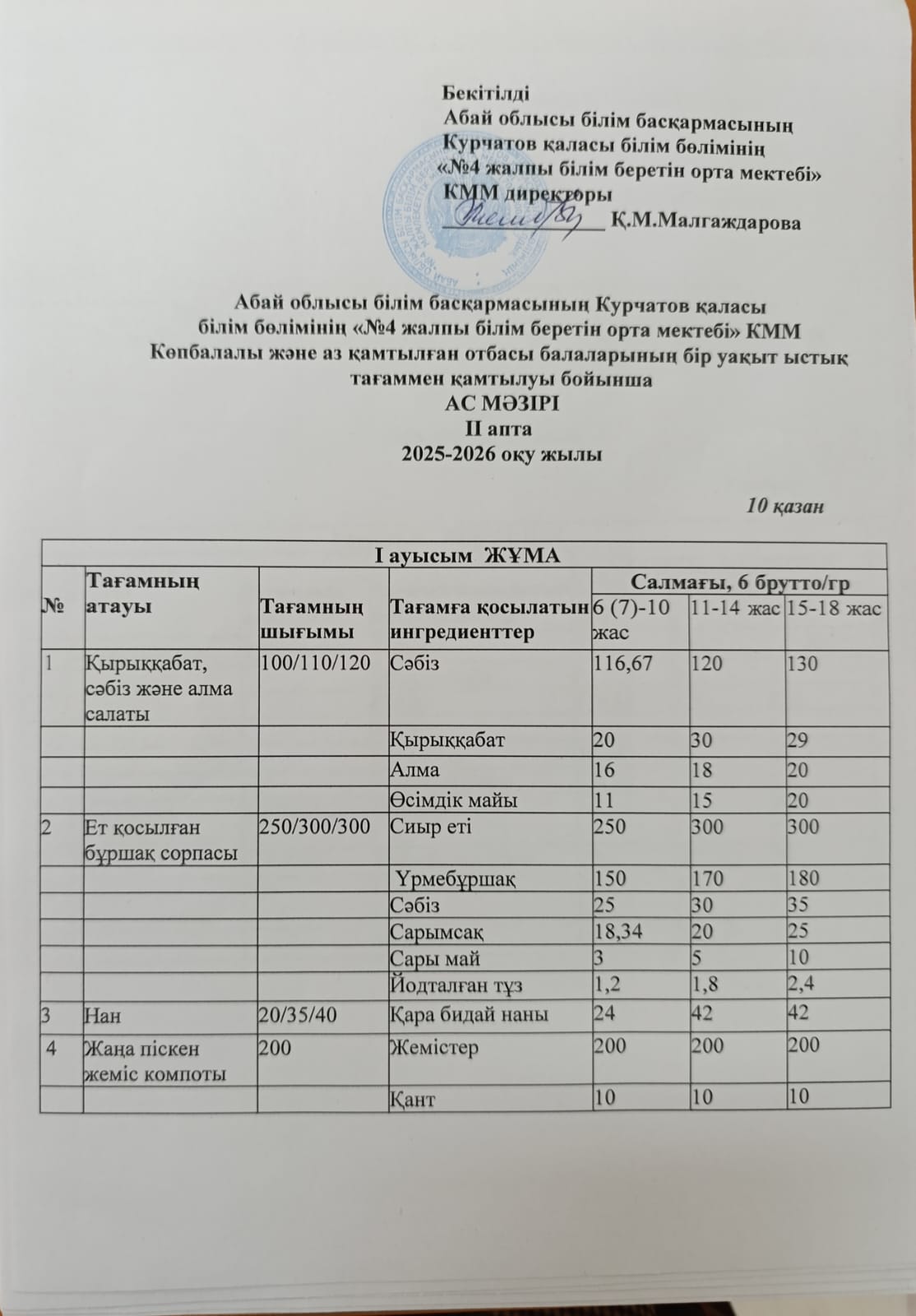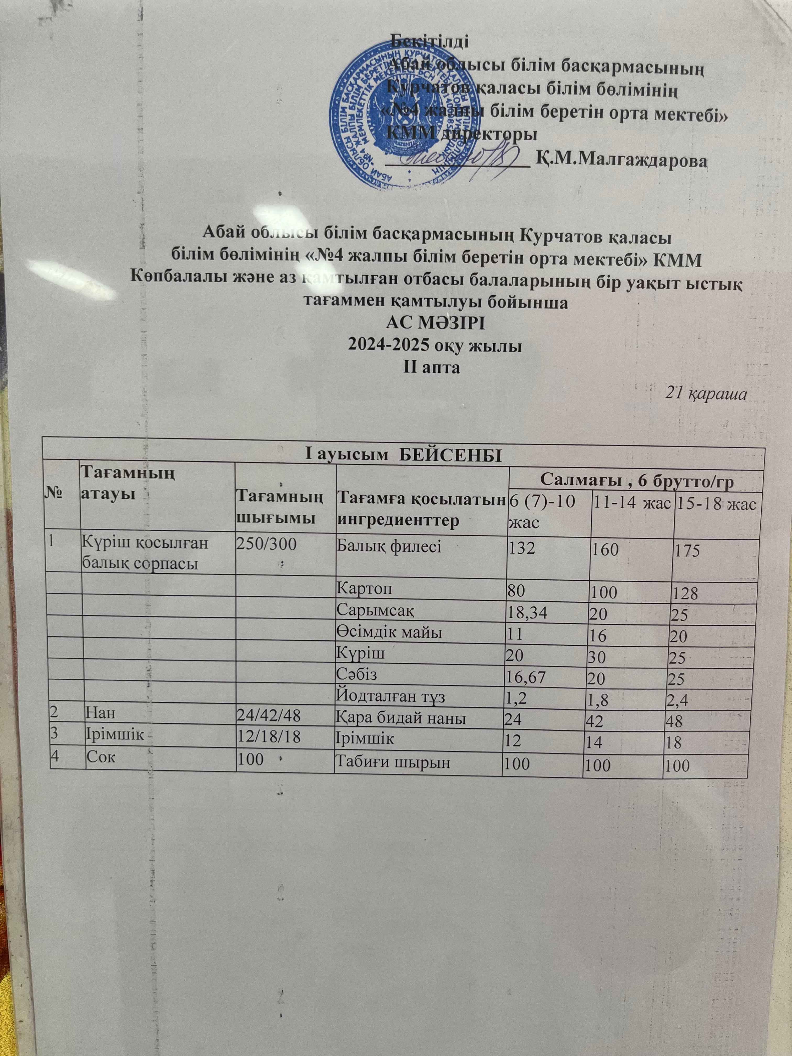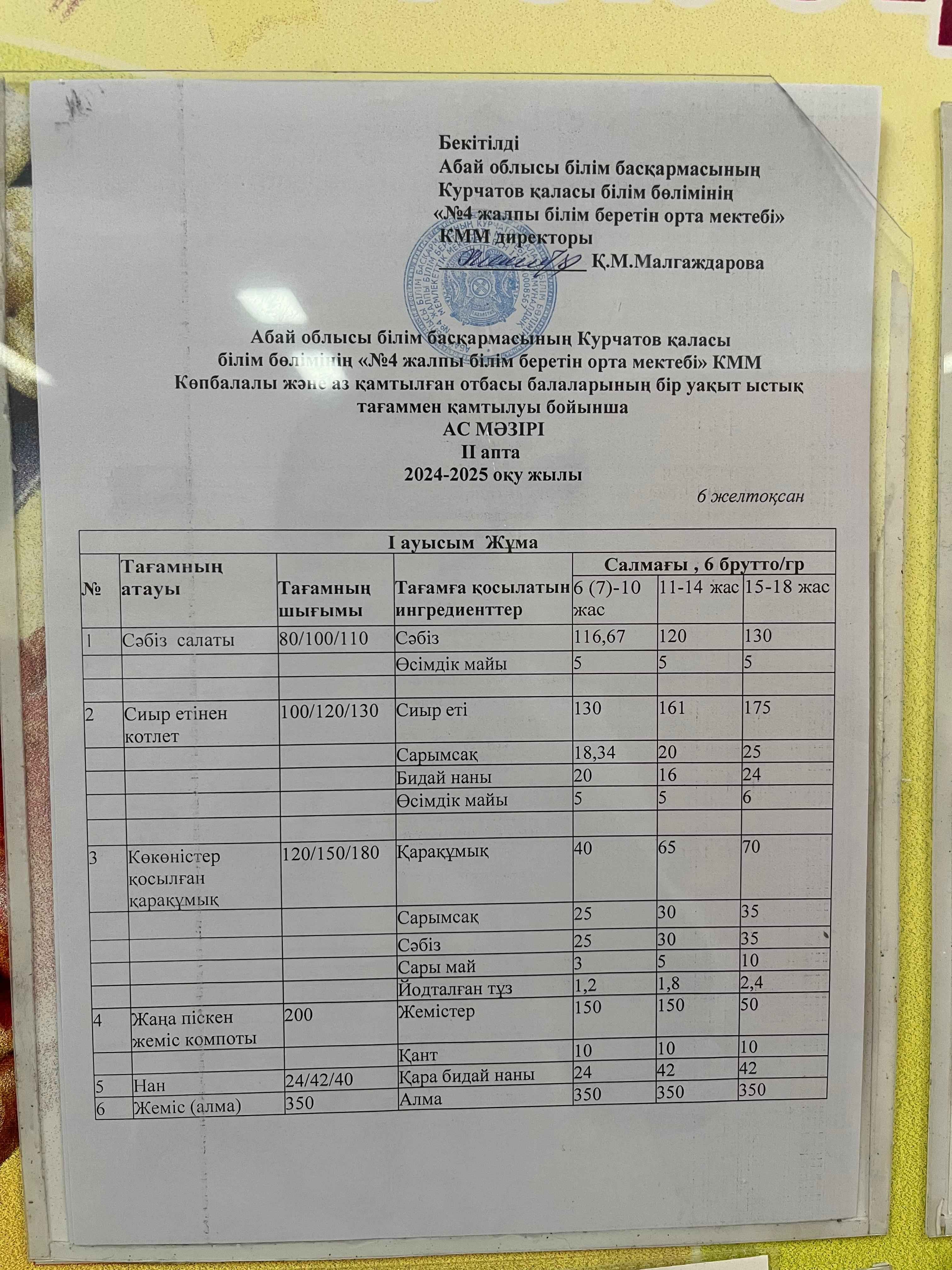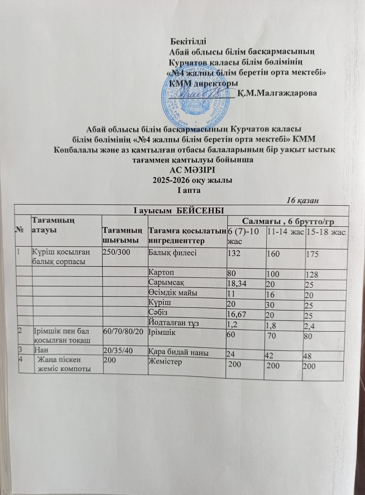 | 1 | 2 апталық 5 күндік ас мәзірі | |