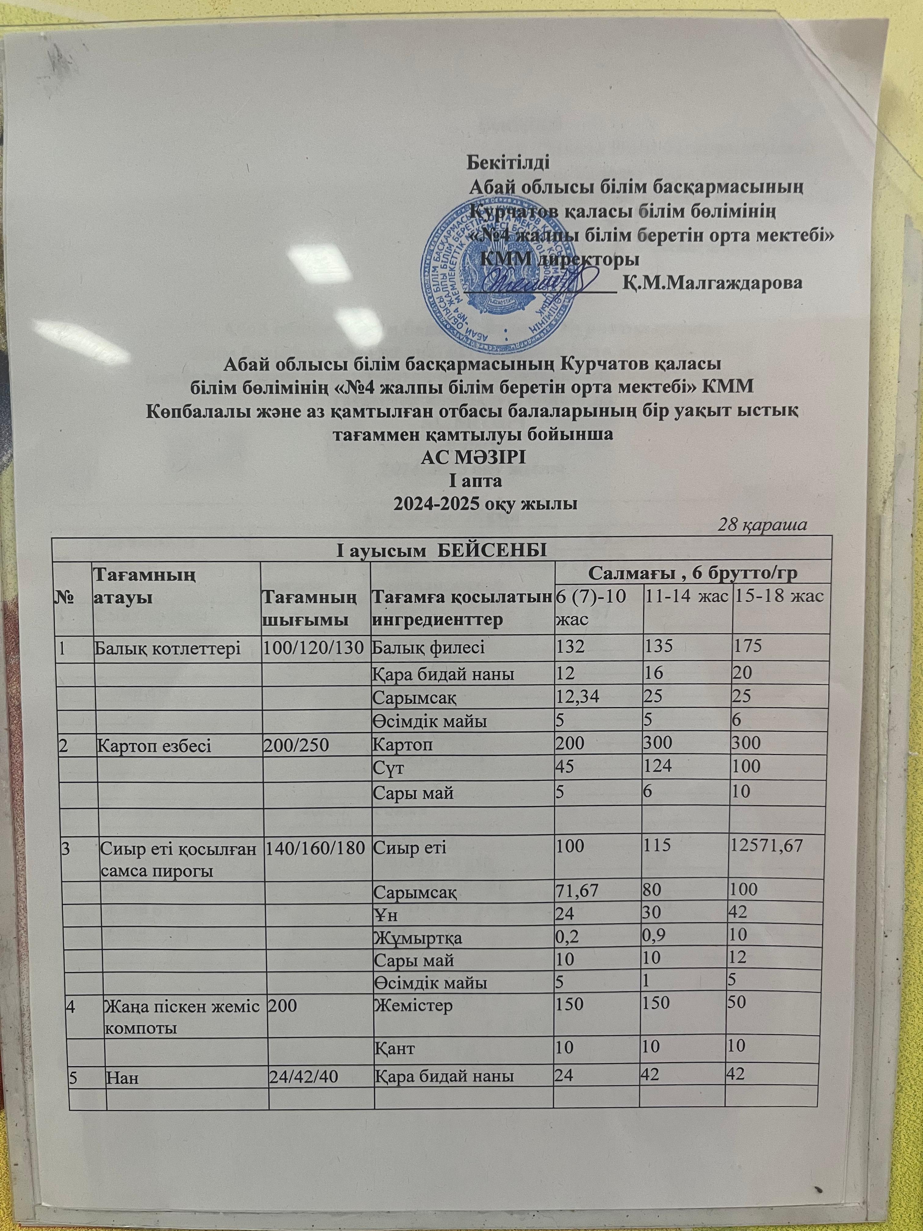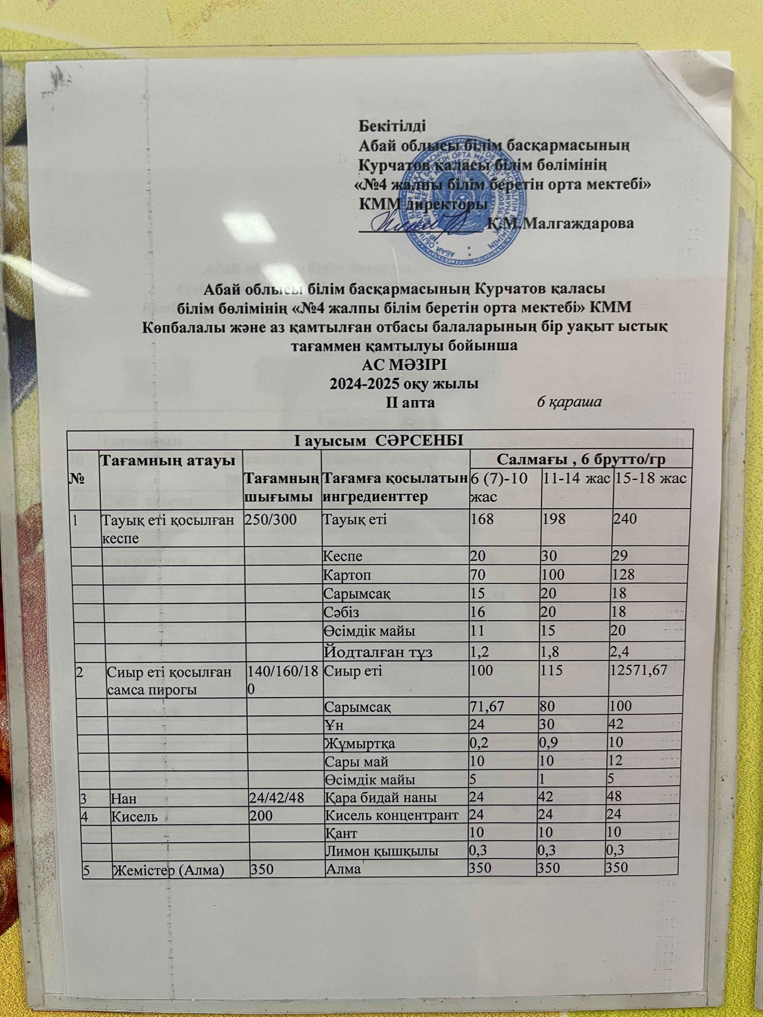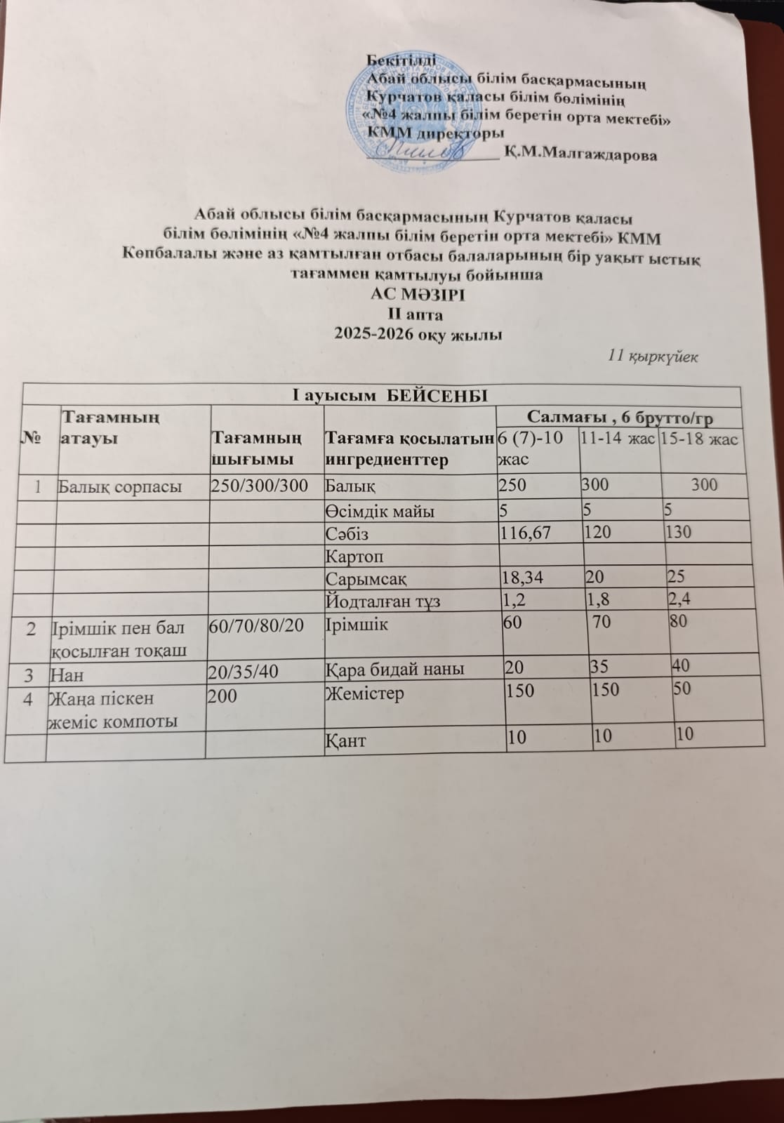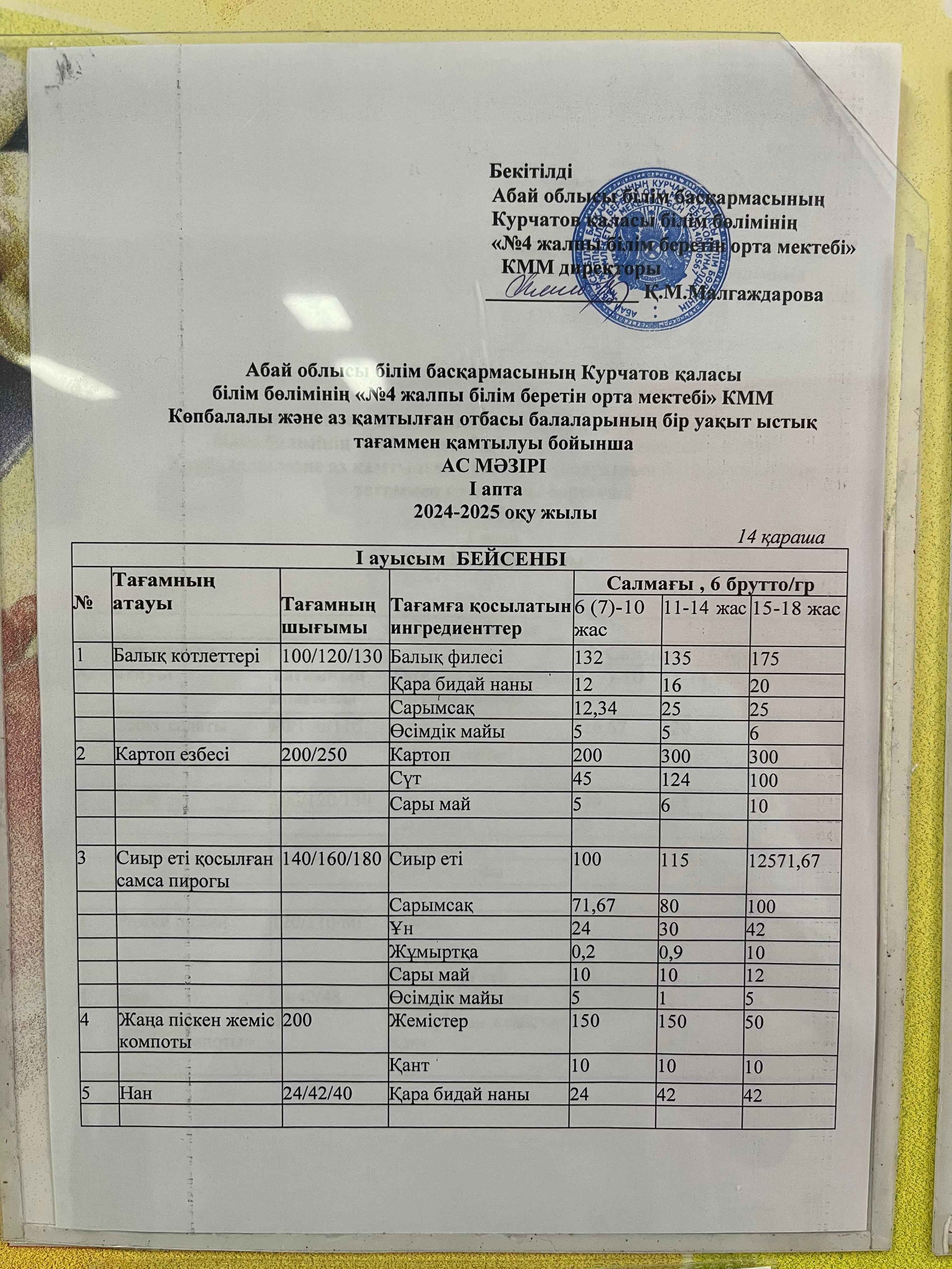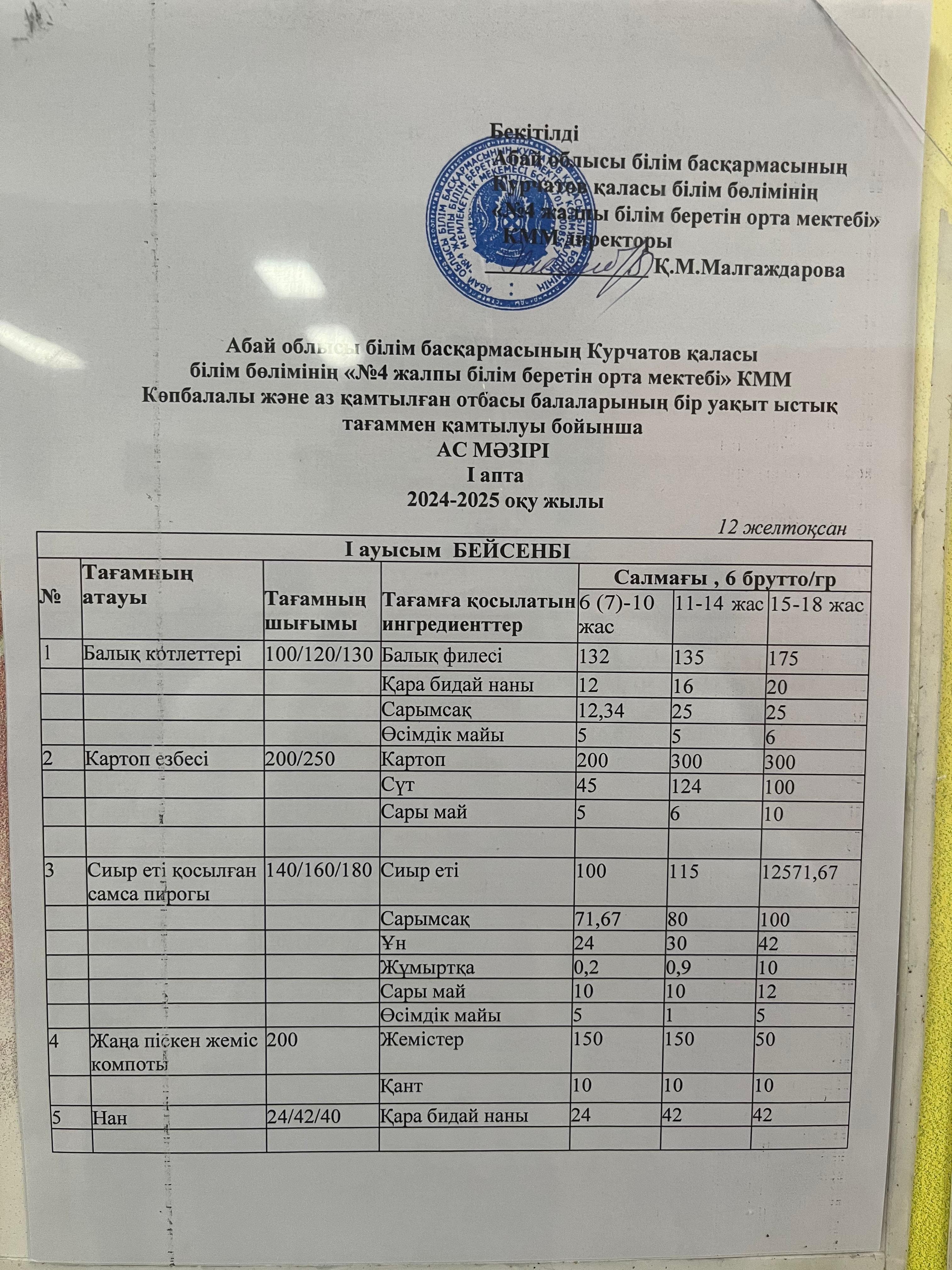 | 1 | 2 апталық 5 күндік ас мәзірі | |