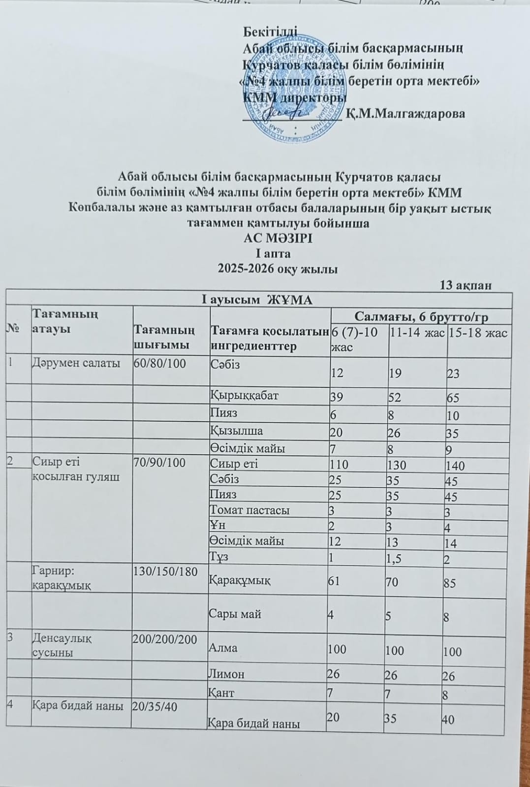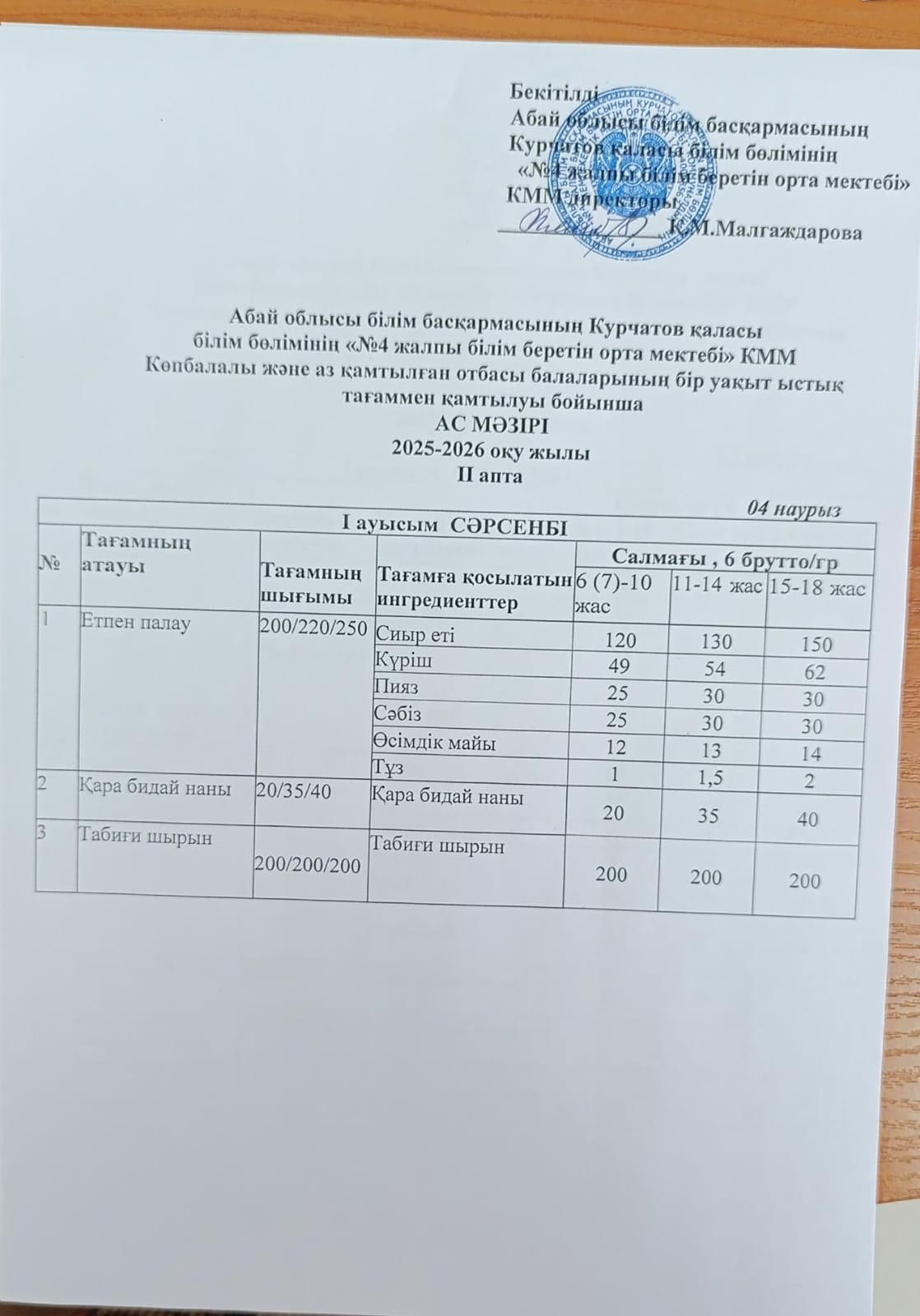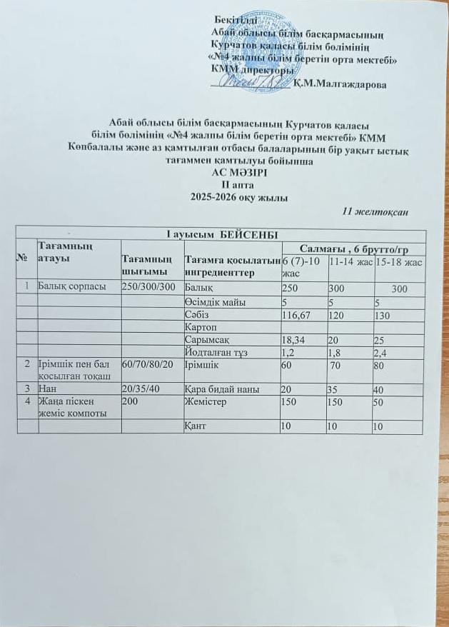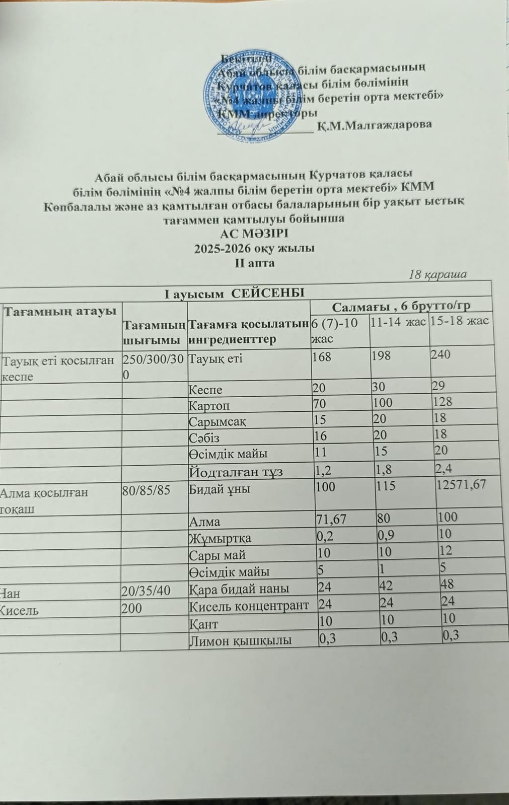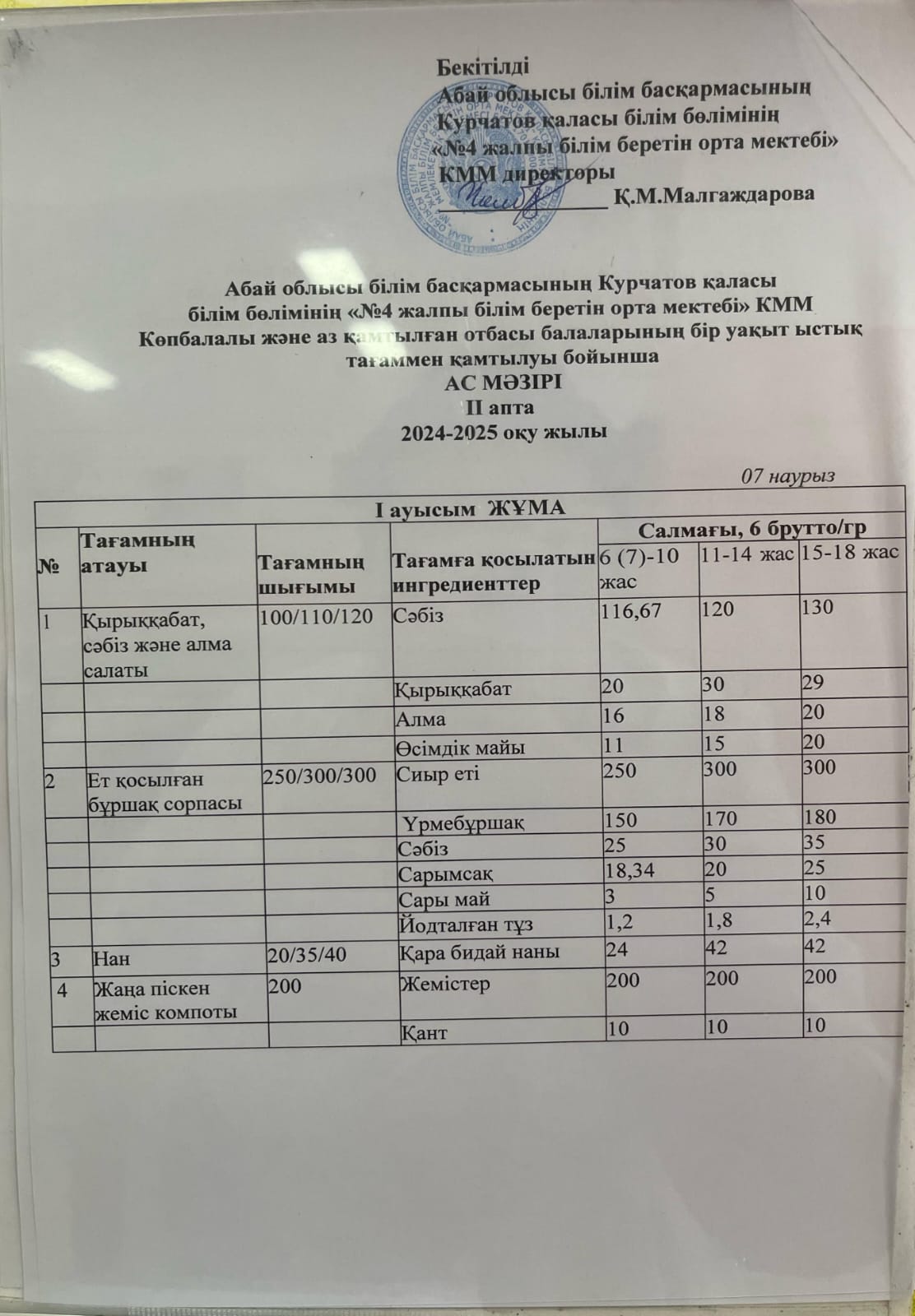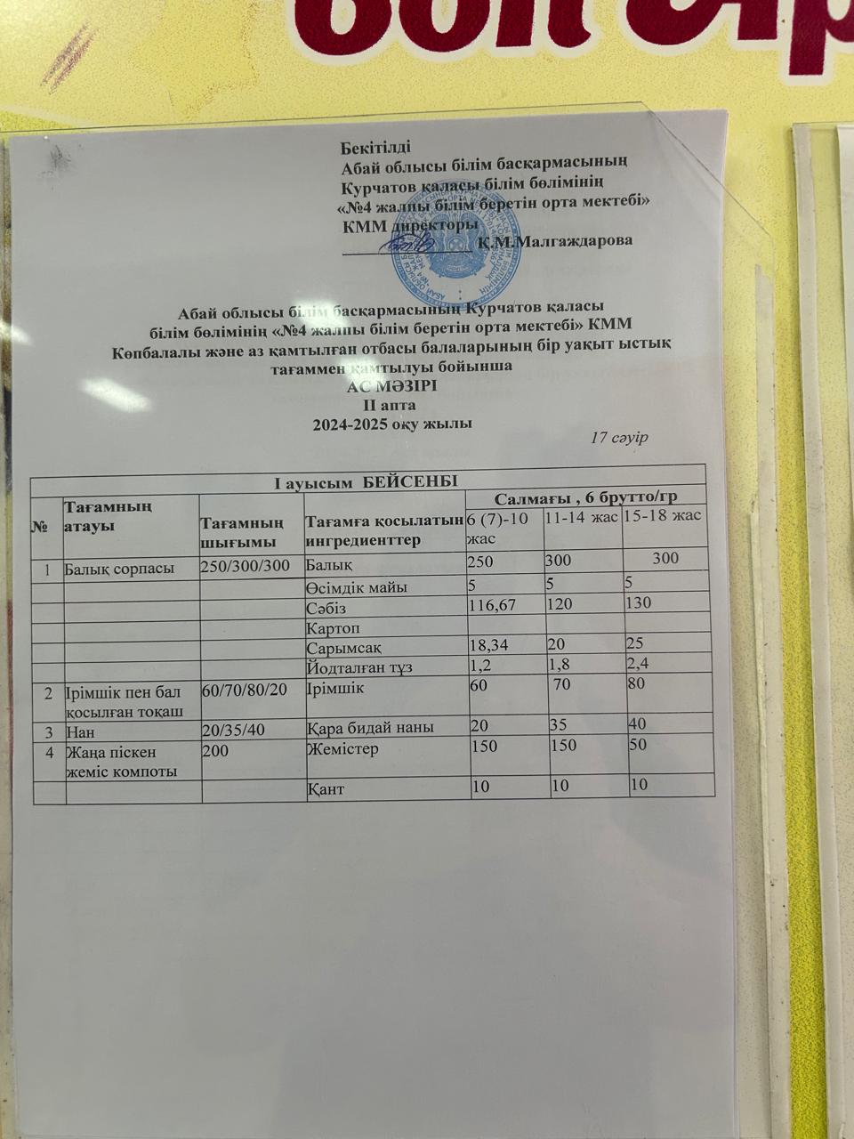 | 1 | 2 апталық 5 күндік ас мәзірі | |