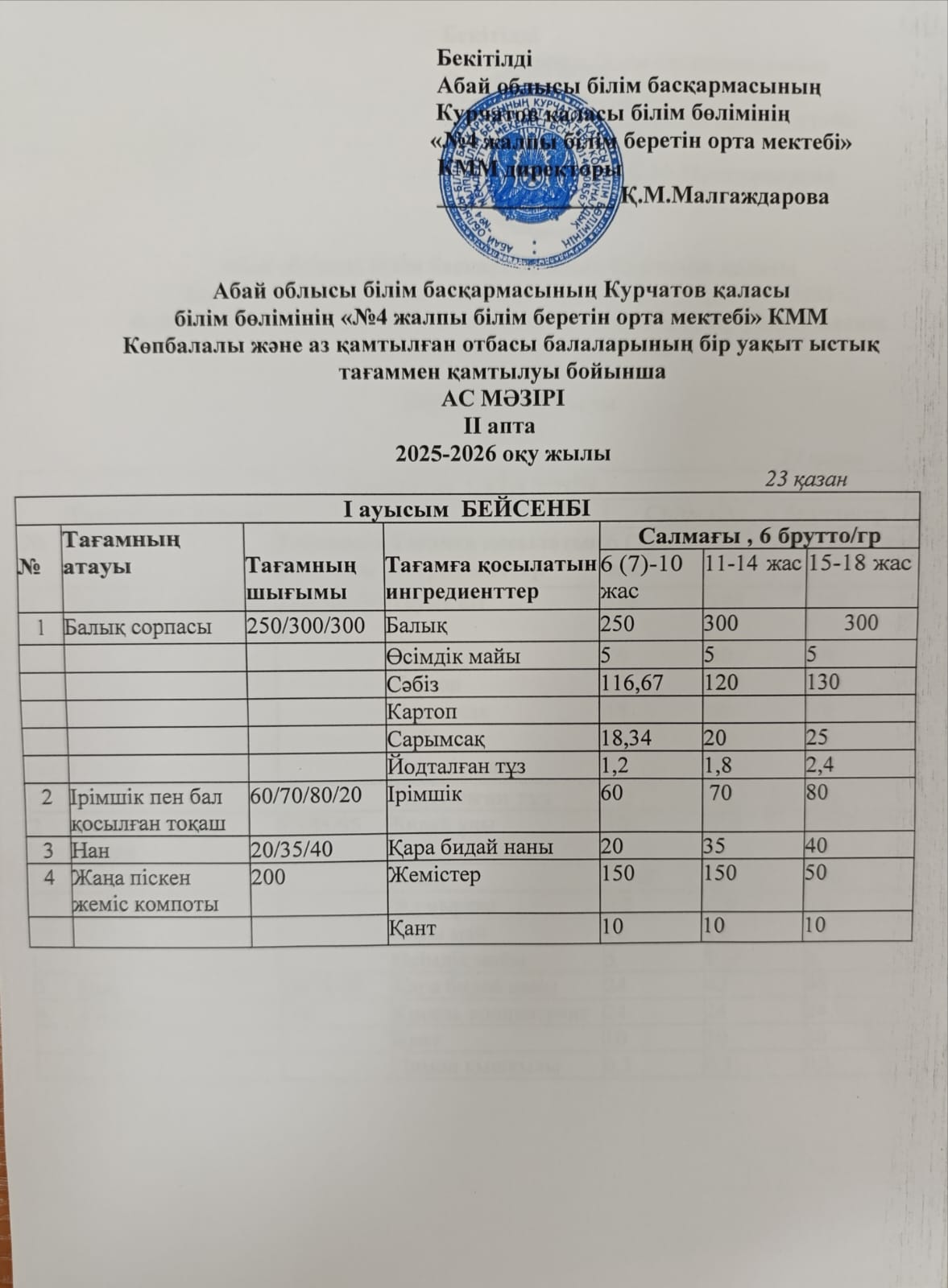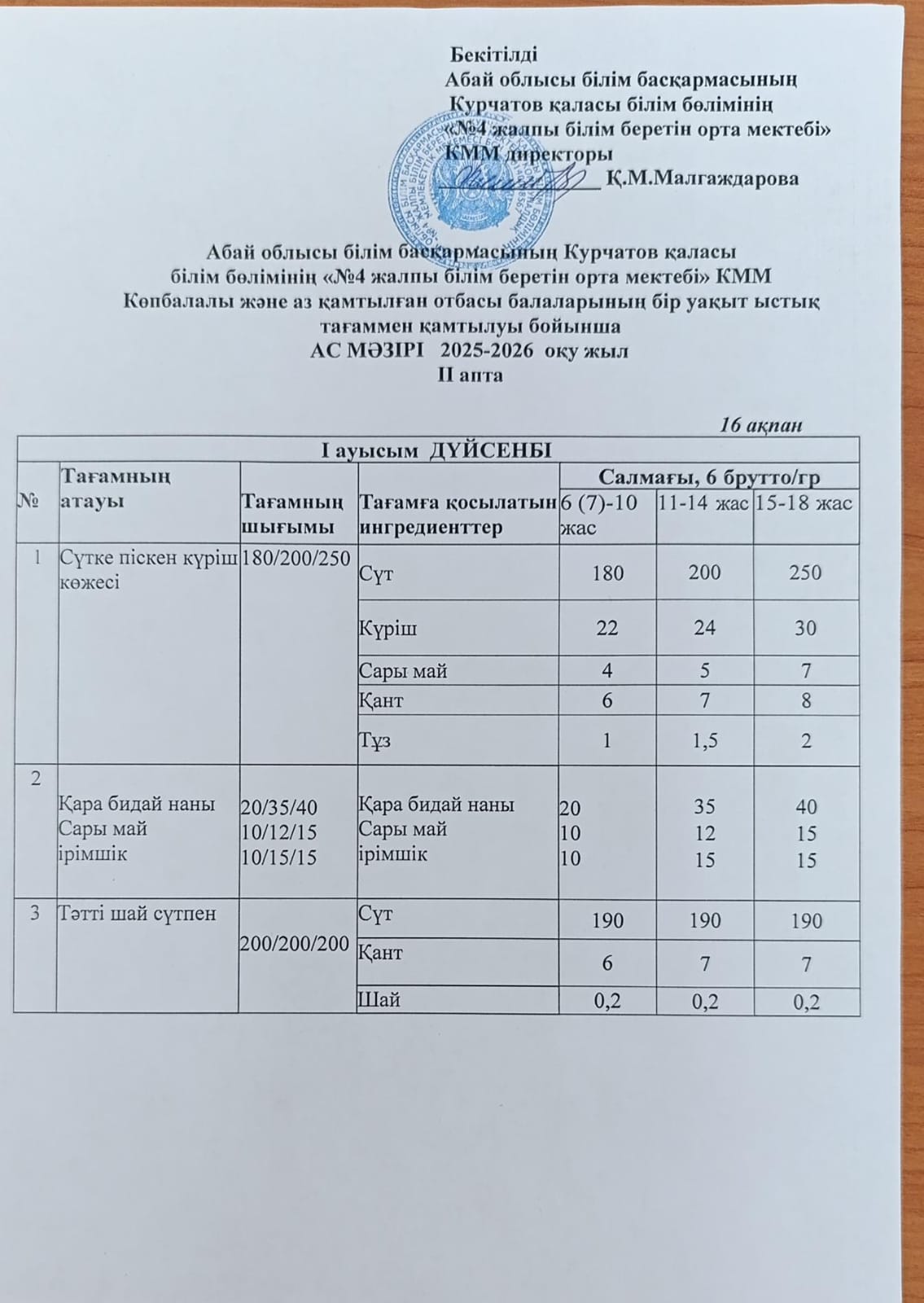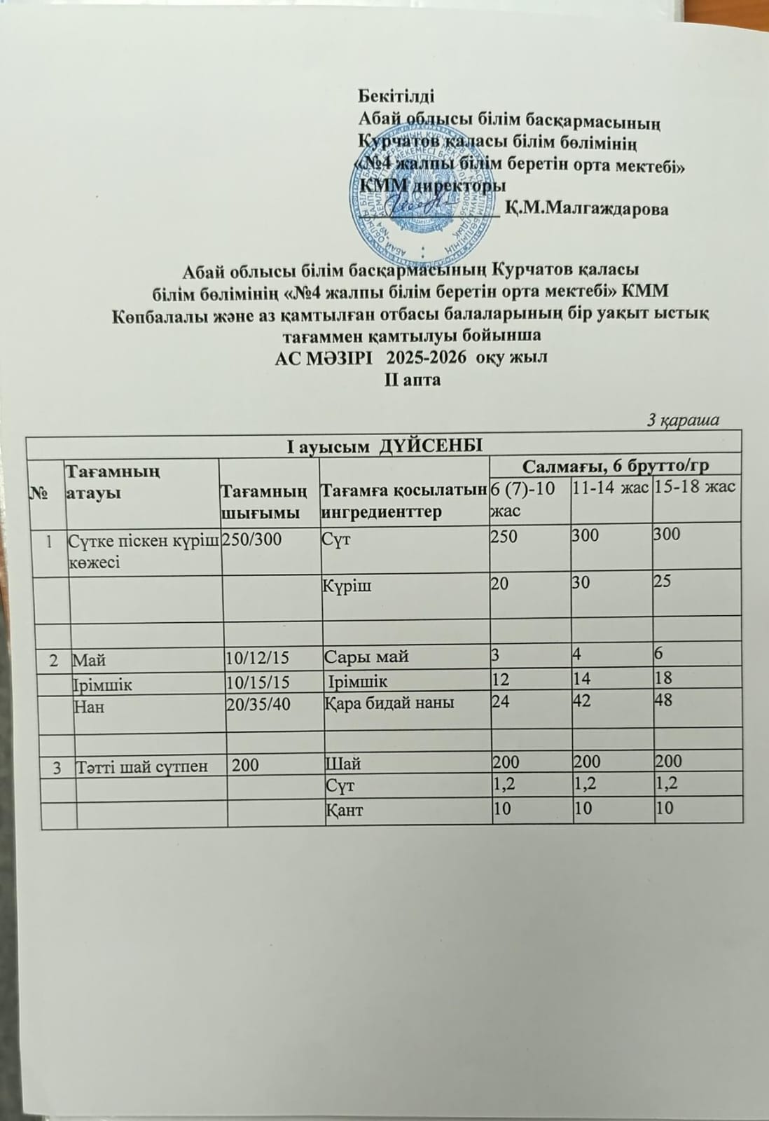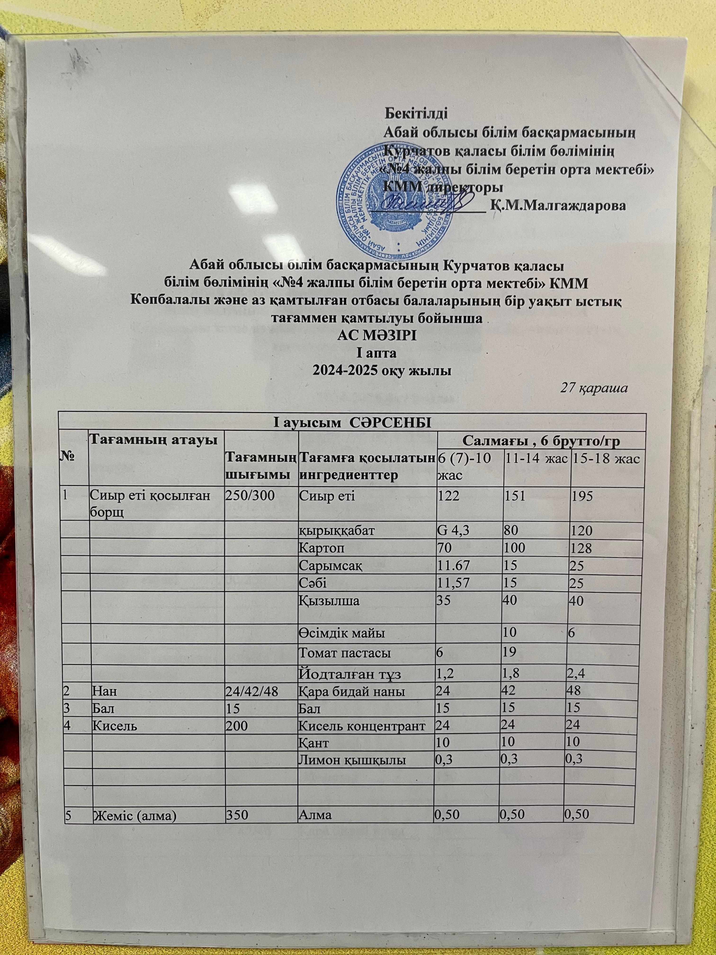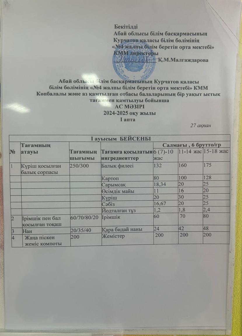 | 1 | 2 апталық 5 күндік ас мәзірі | |