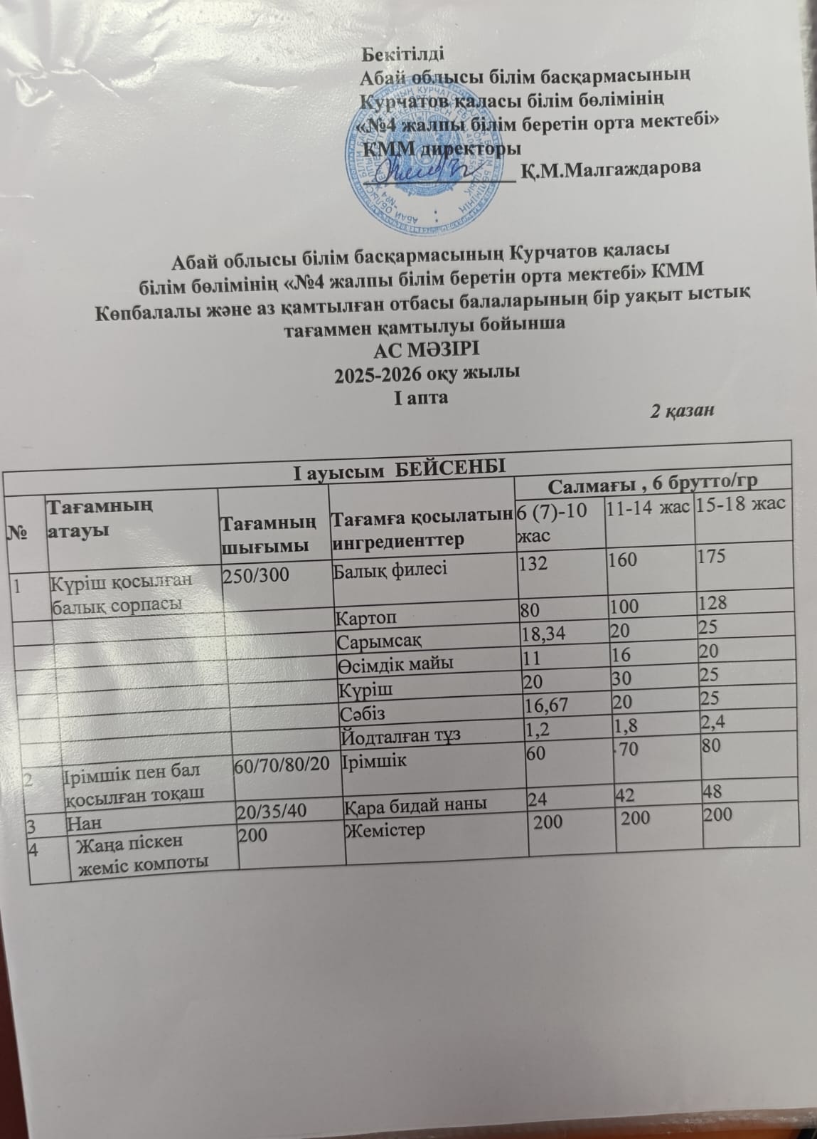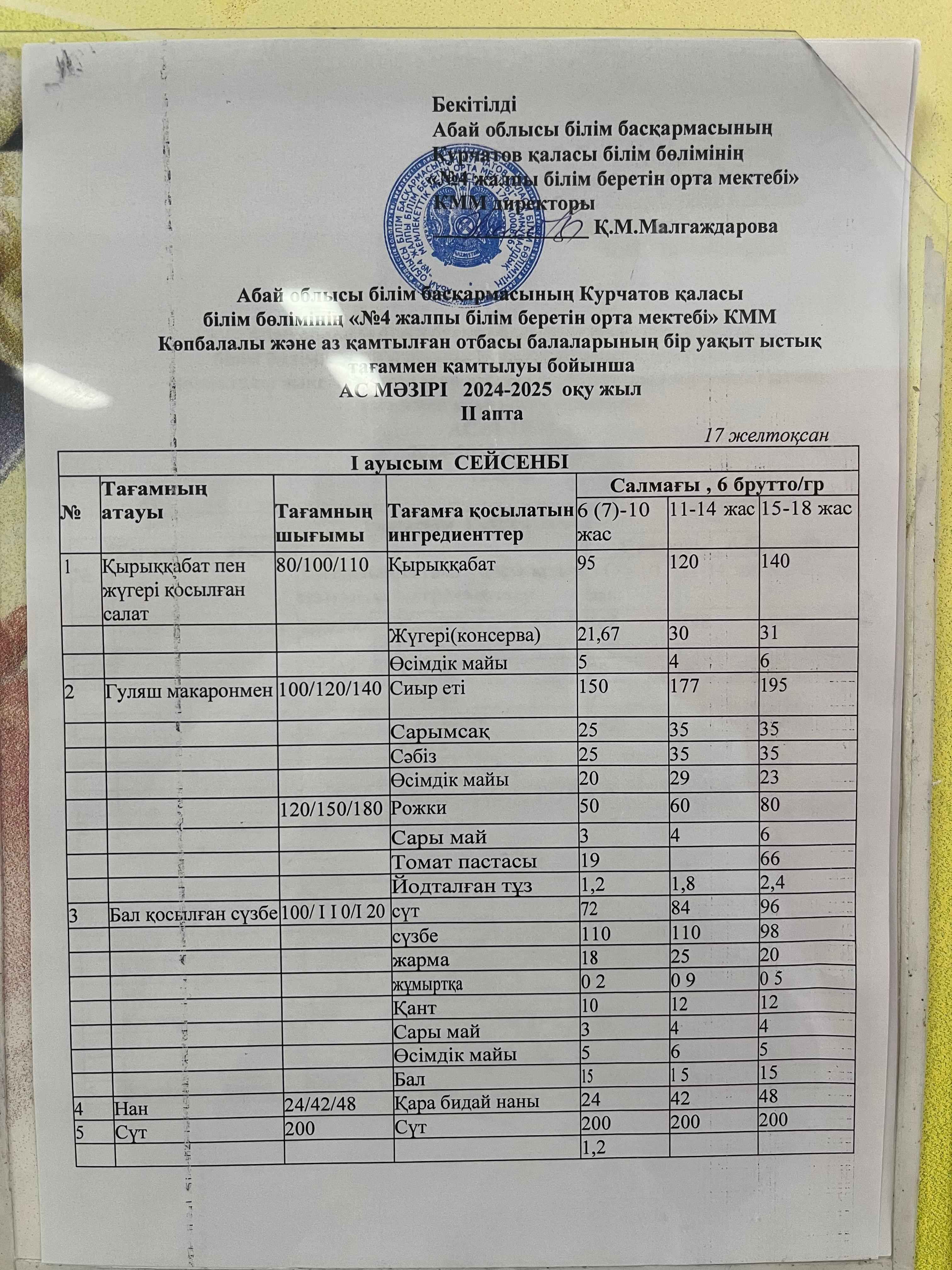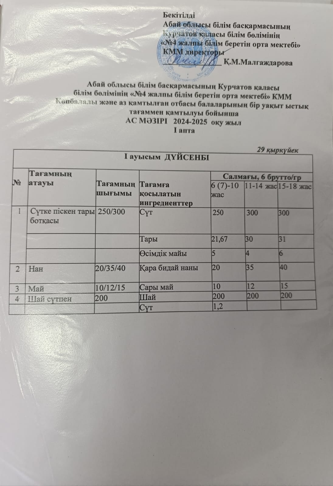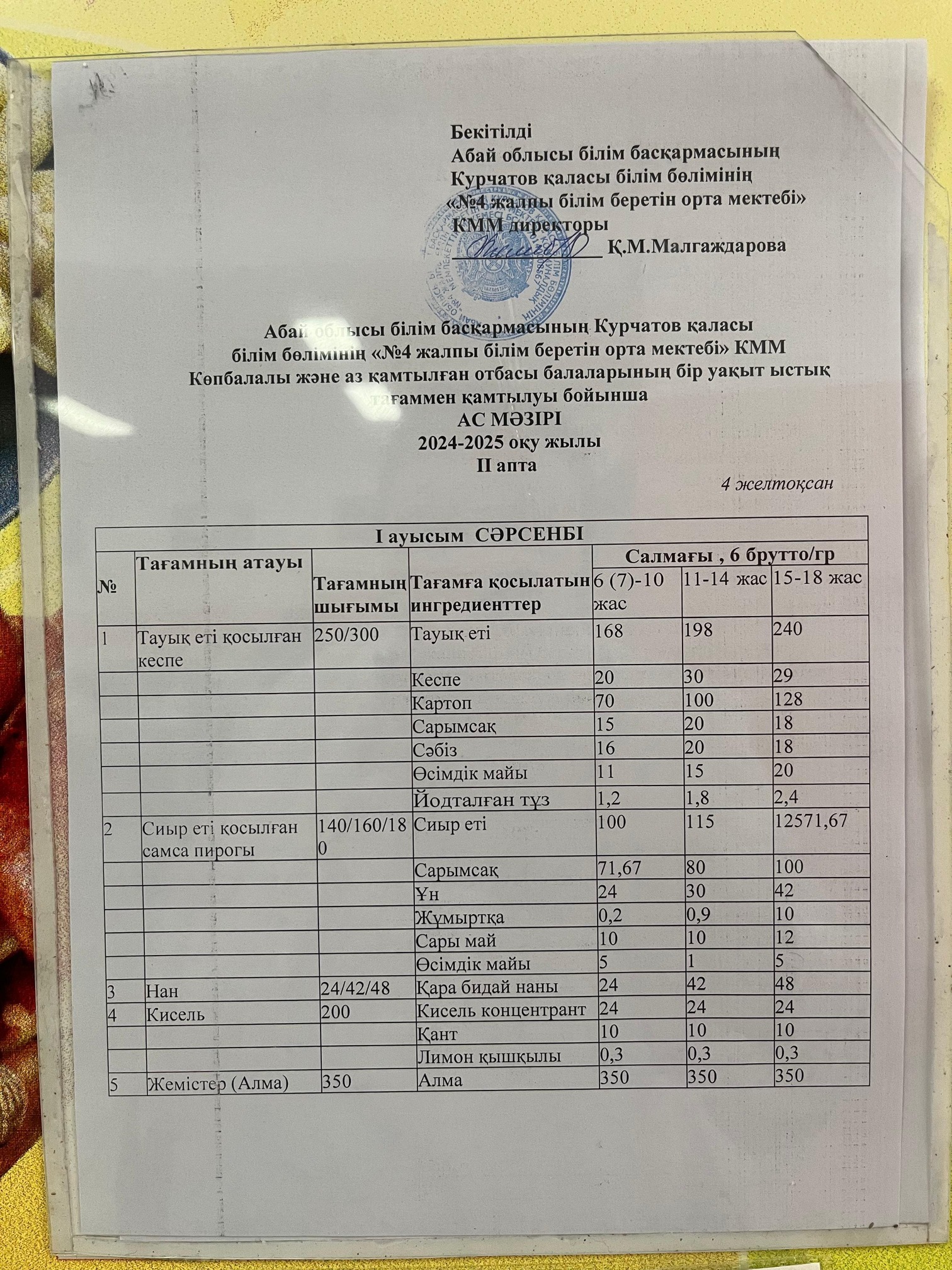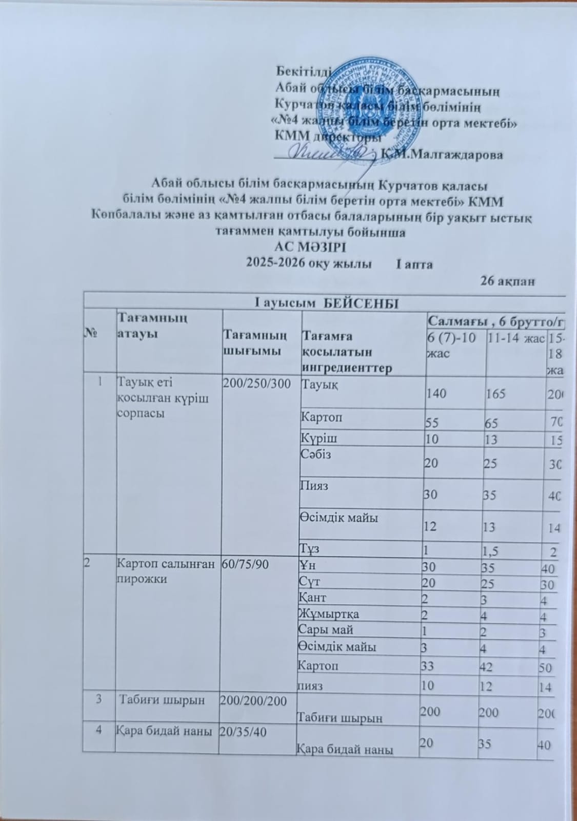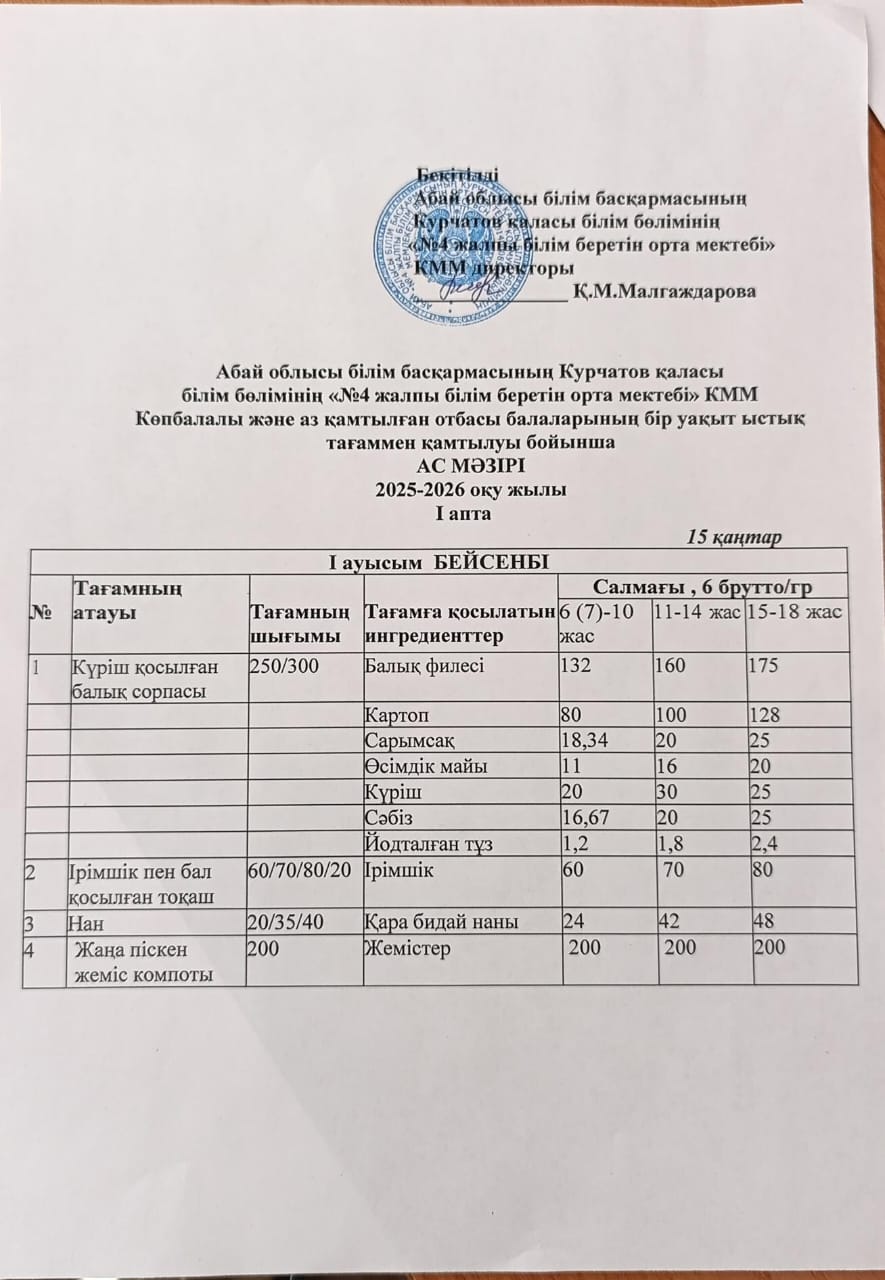 | 1 | 2 апталық 5 күндік ас мәзірі | |