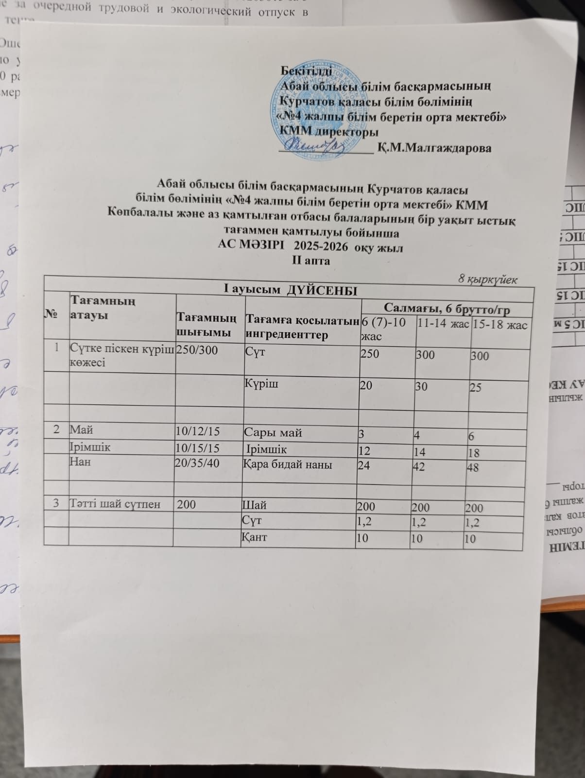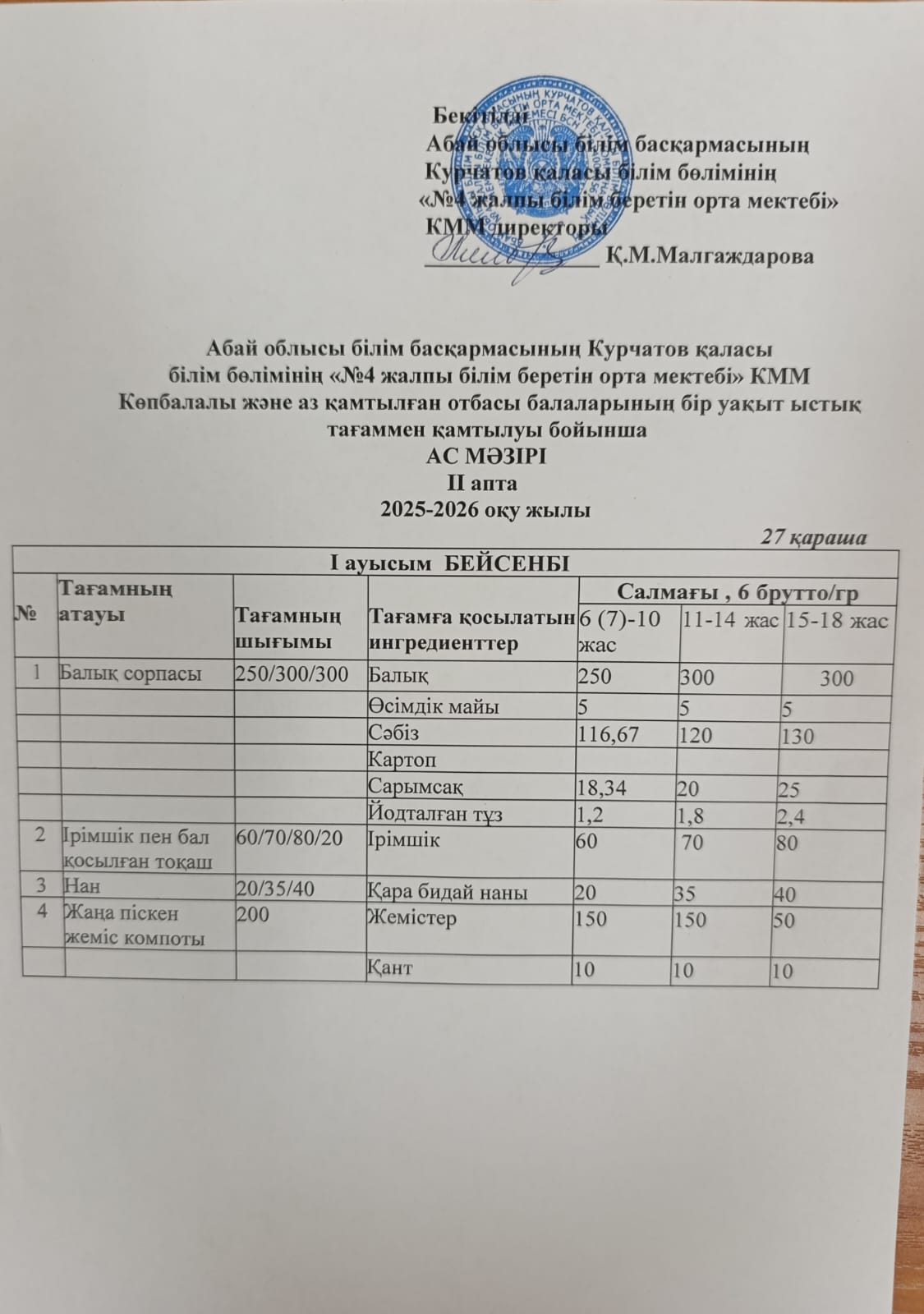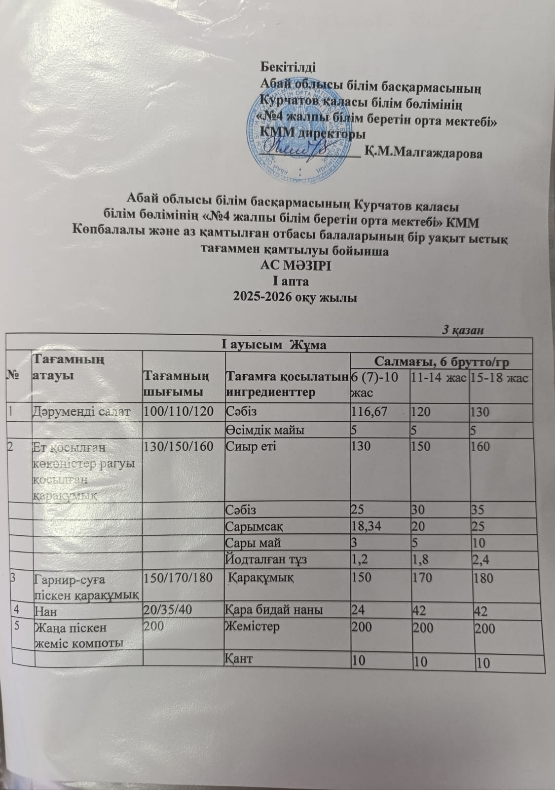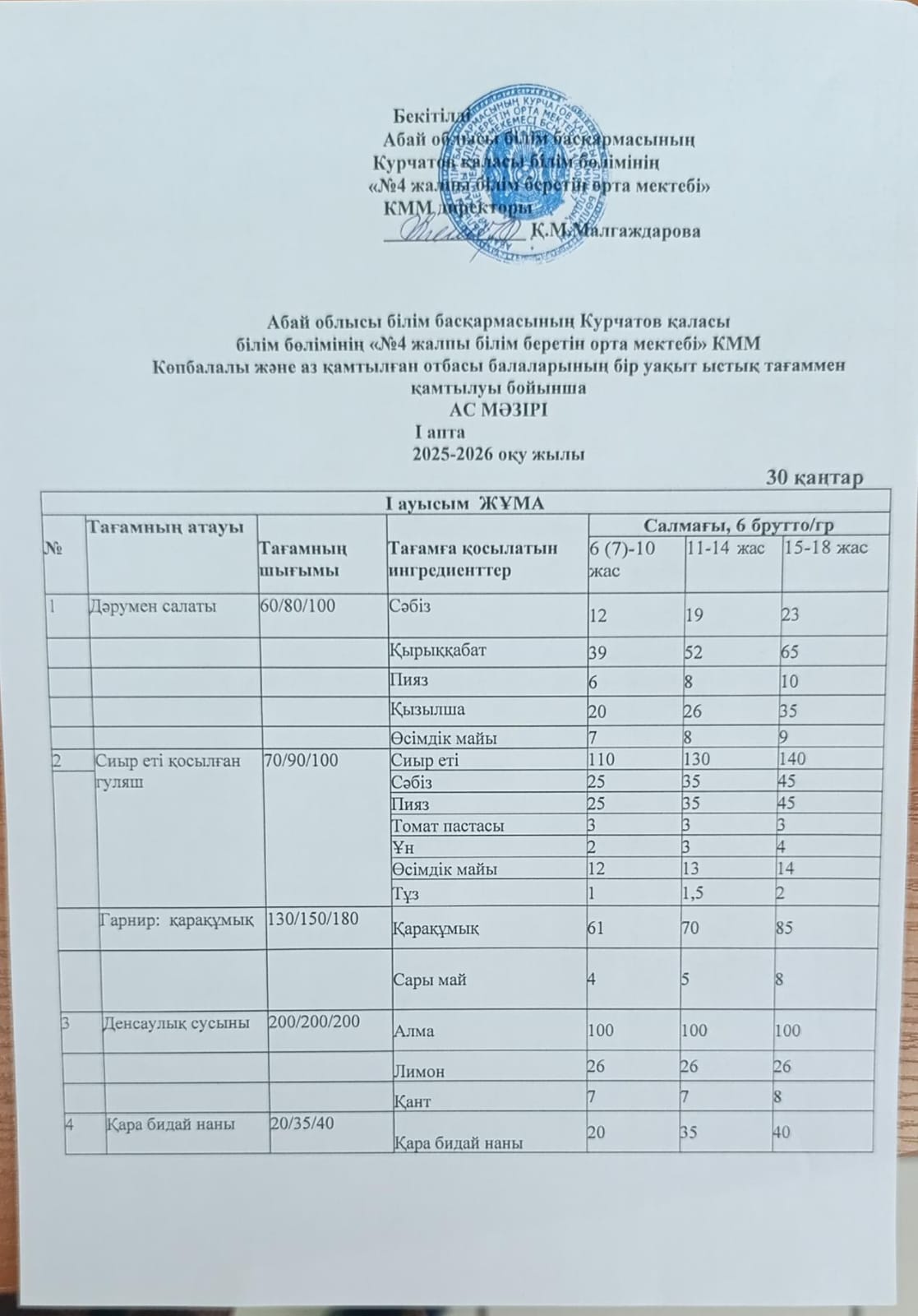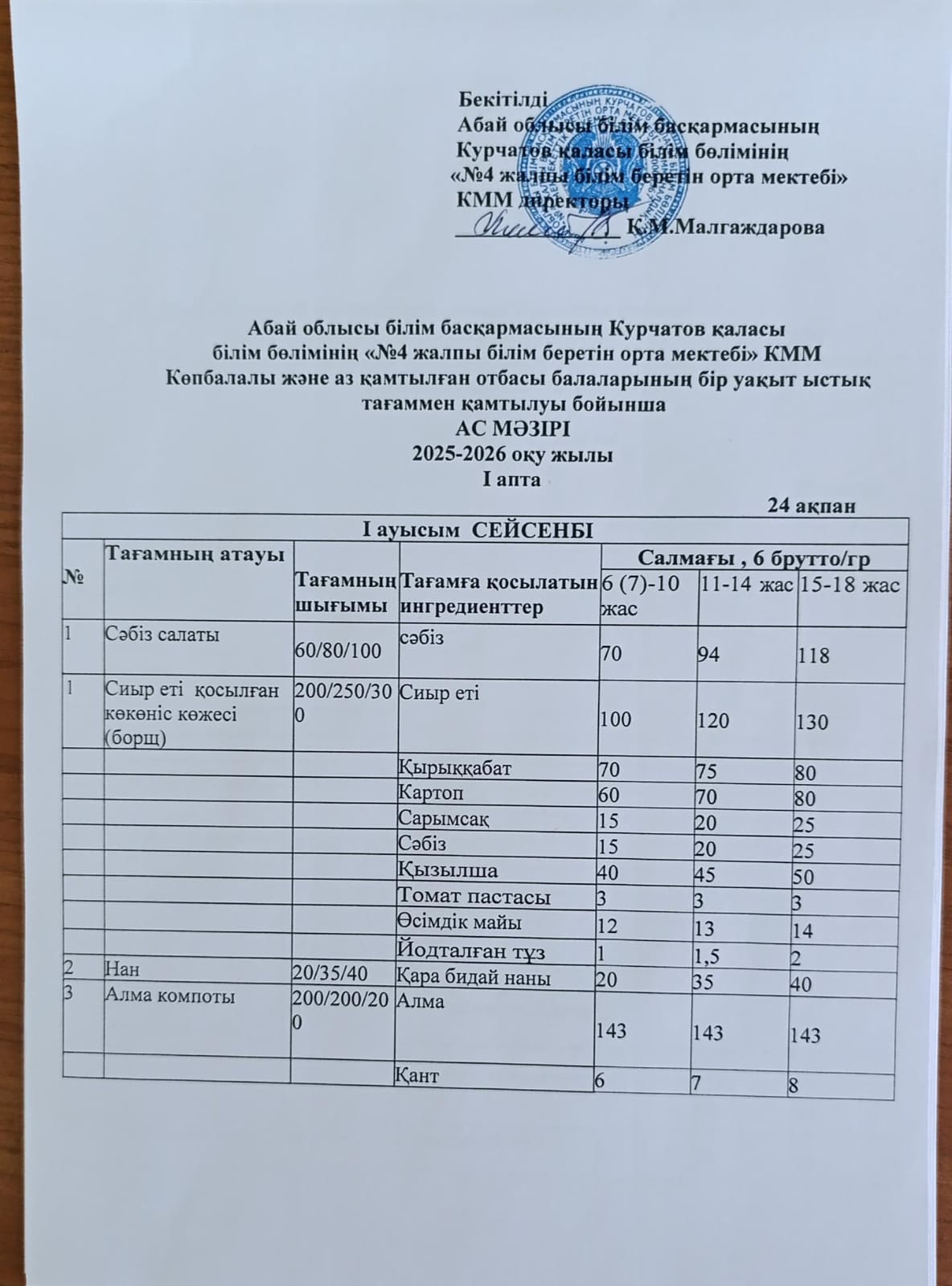 | 1 | 2 апталық 5 күндік ас мәзірі | |