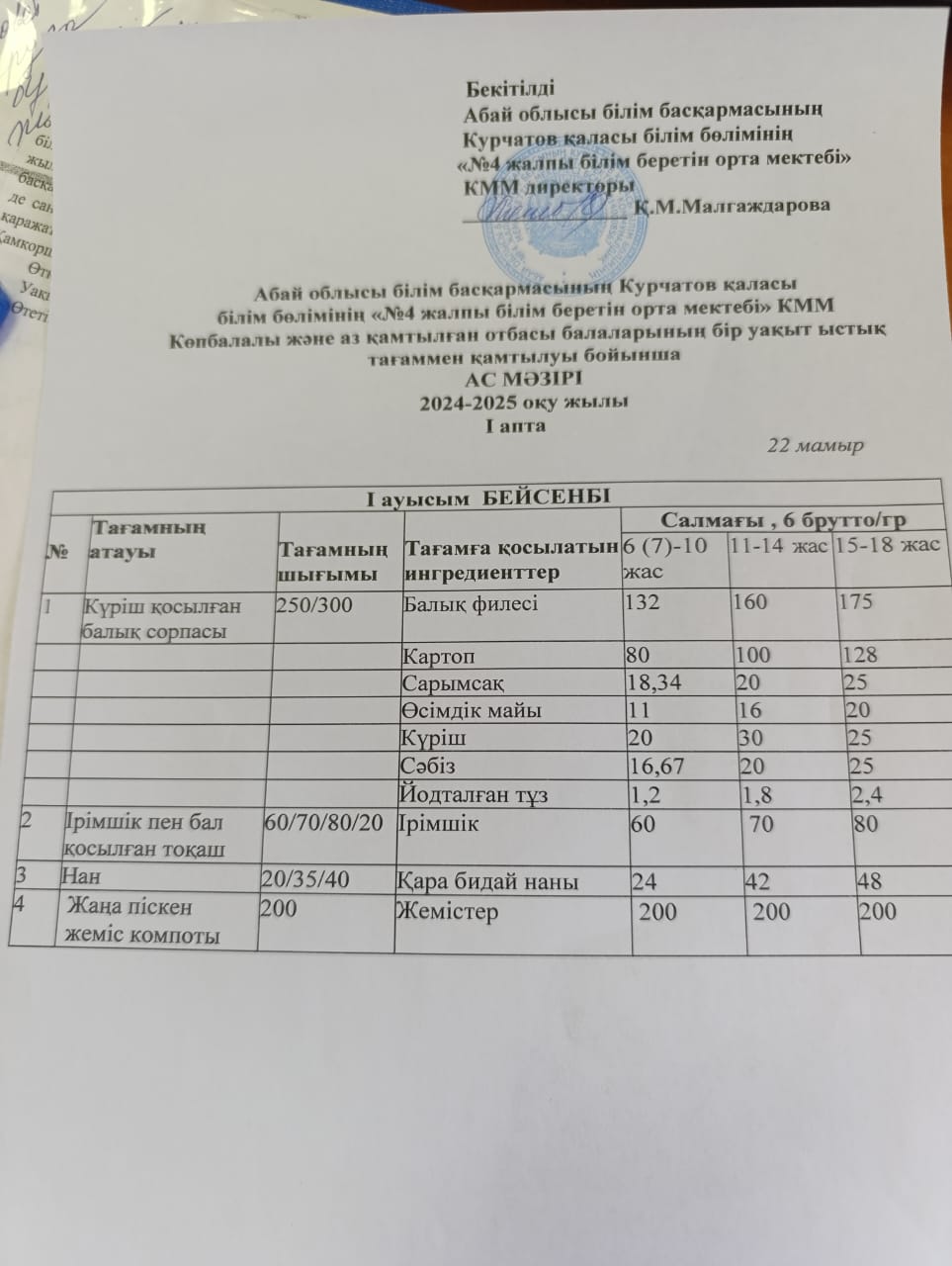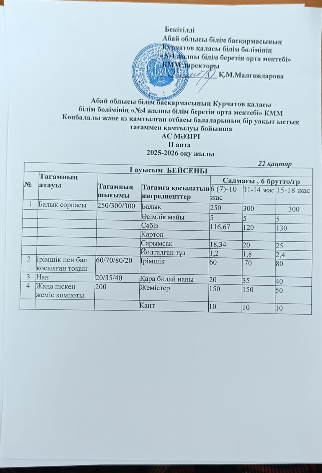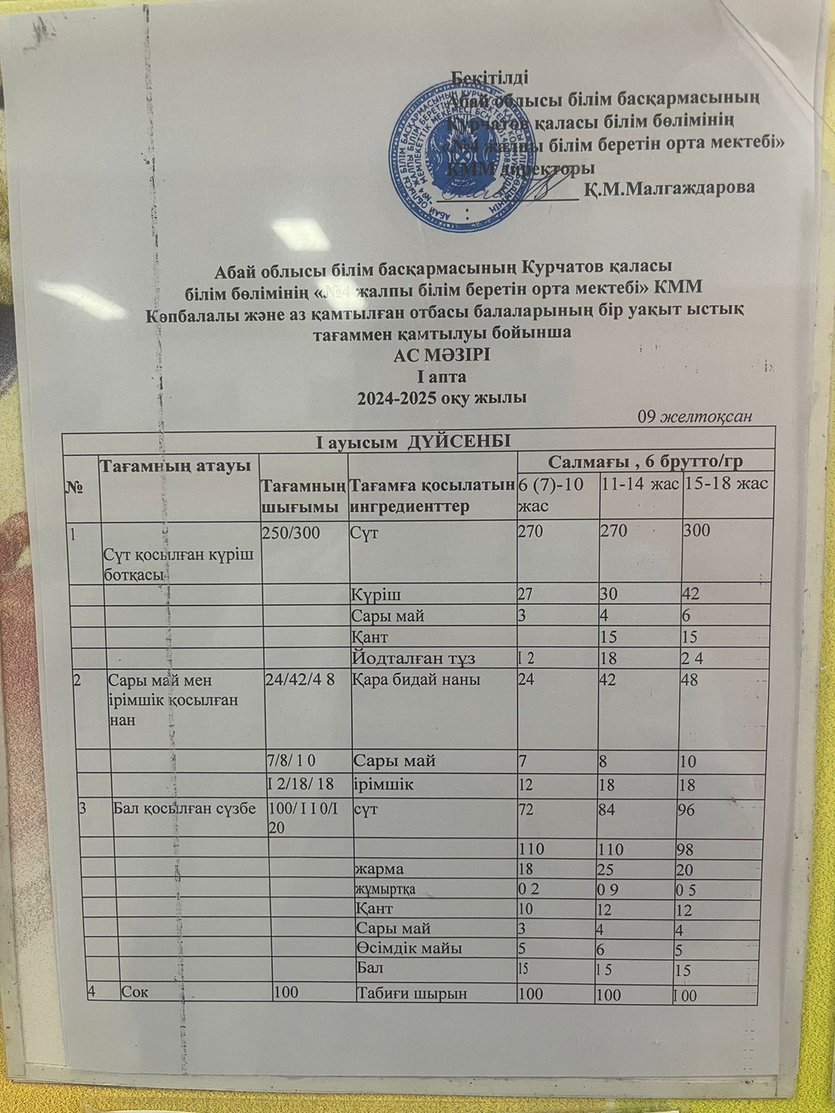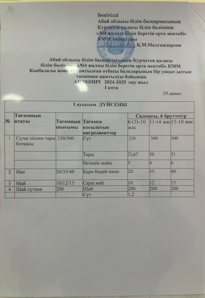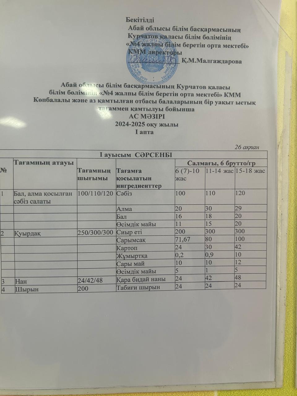 | 1 | 2 апталық 5 күндік ас мәзірі | |
