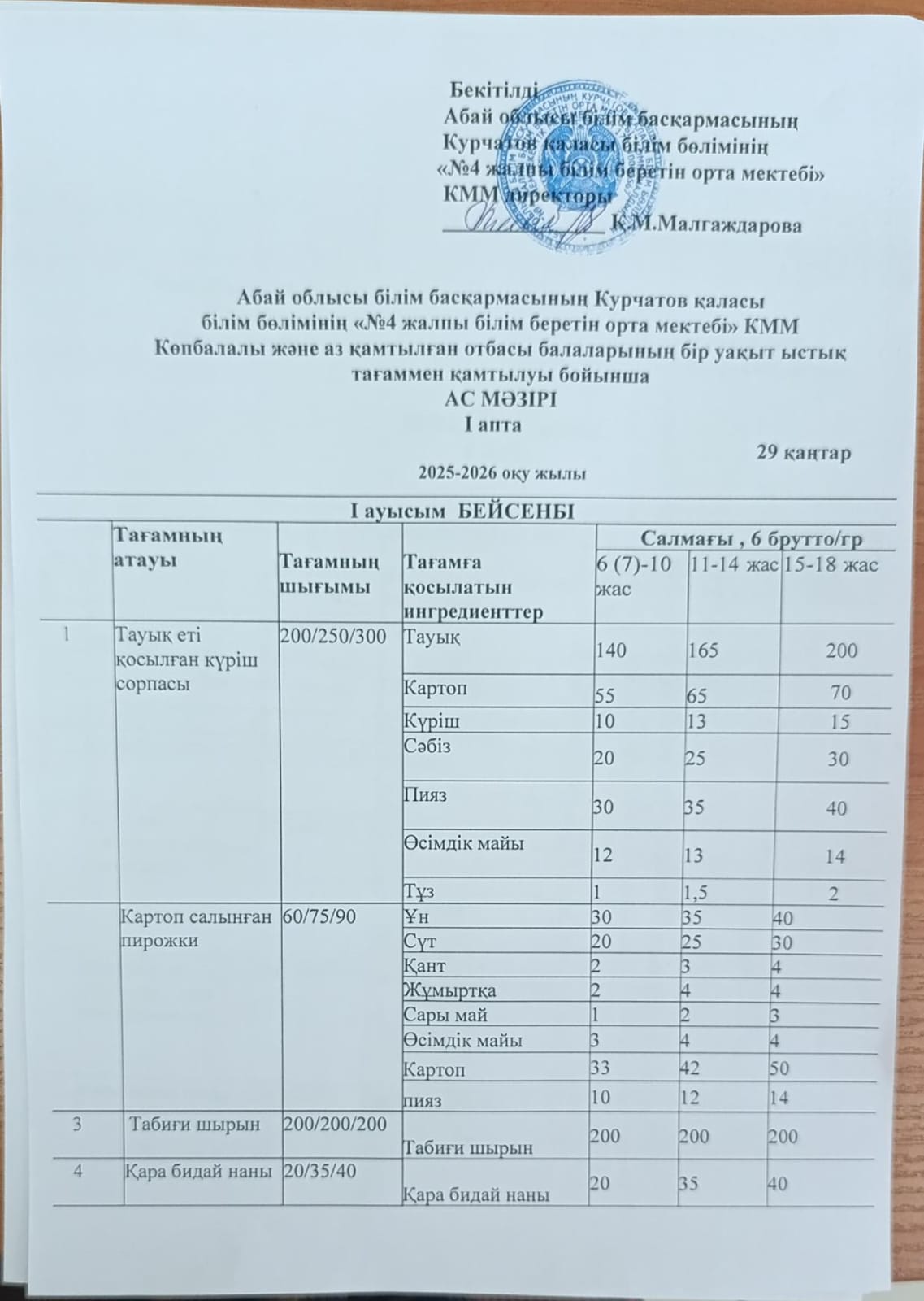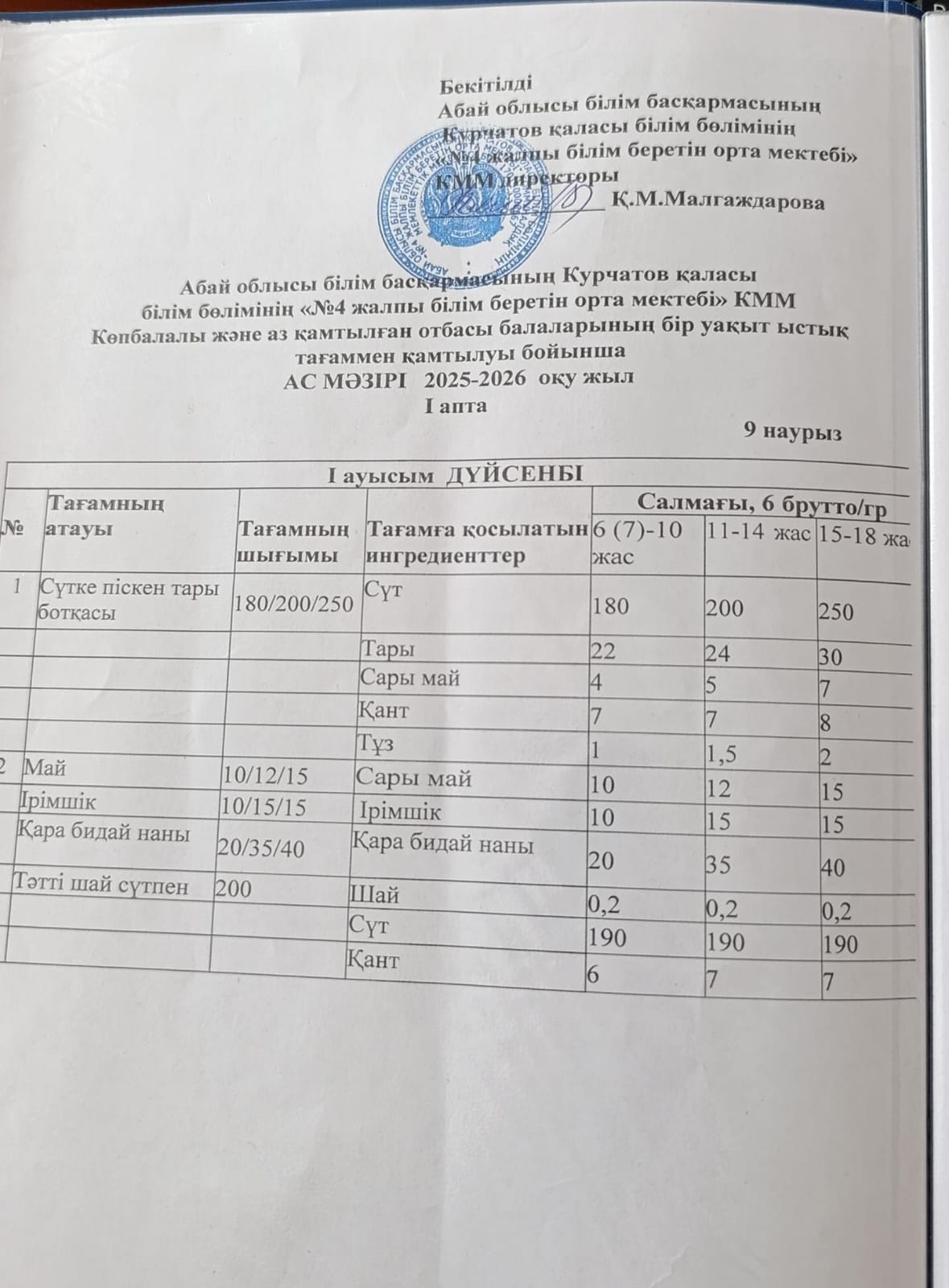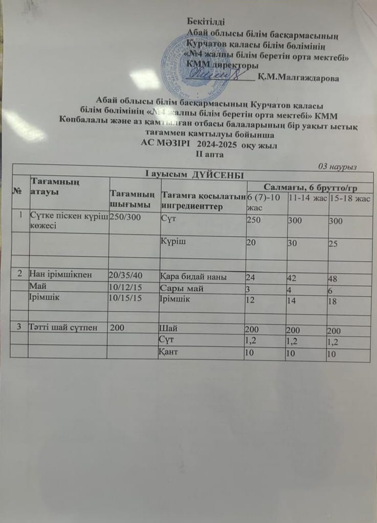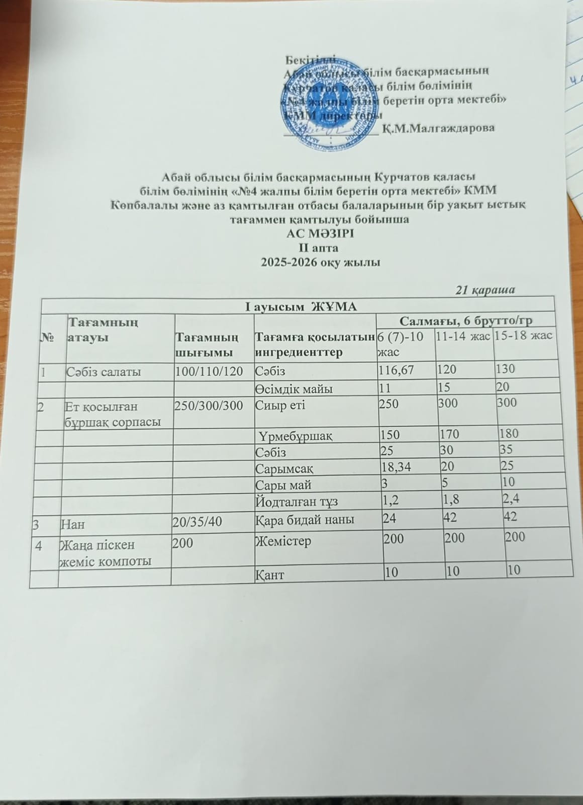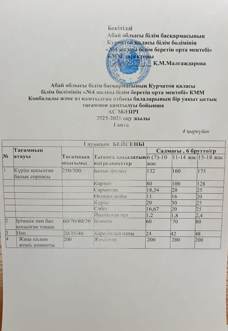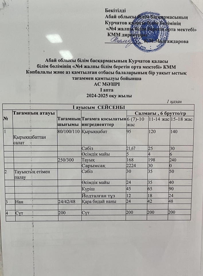 | 1 | 2 апталық 5 күндік ас мәзірі | |