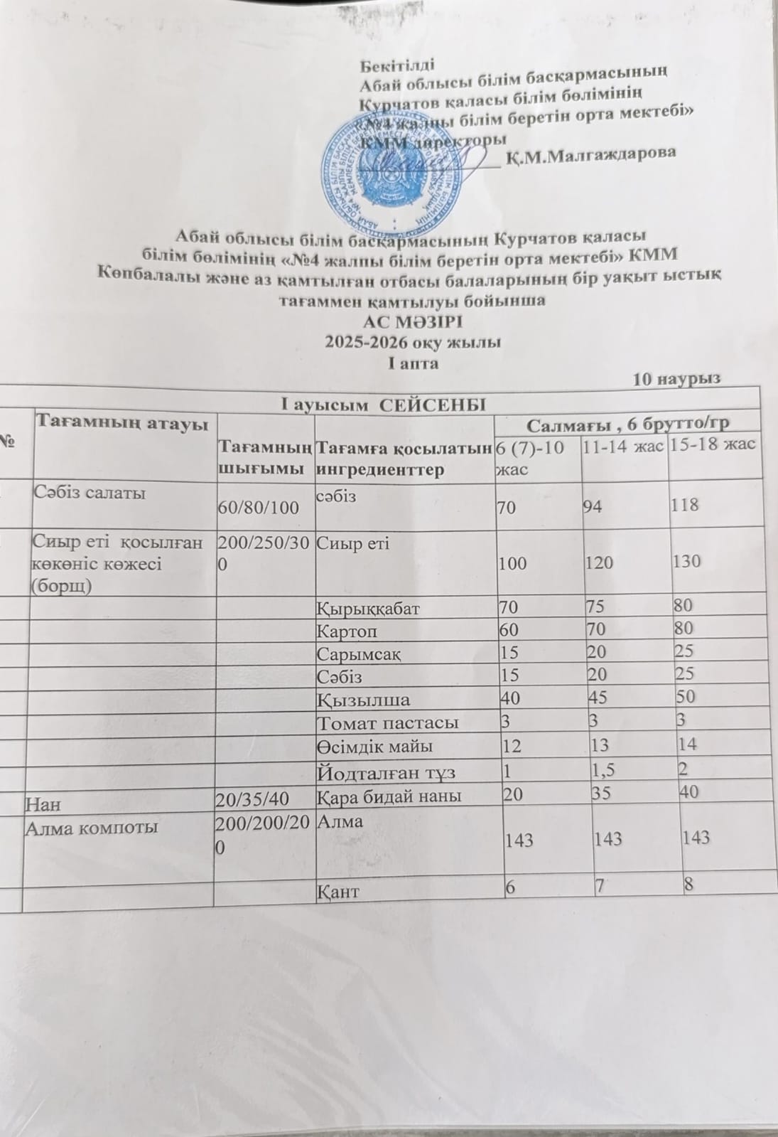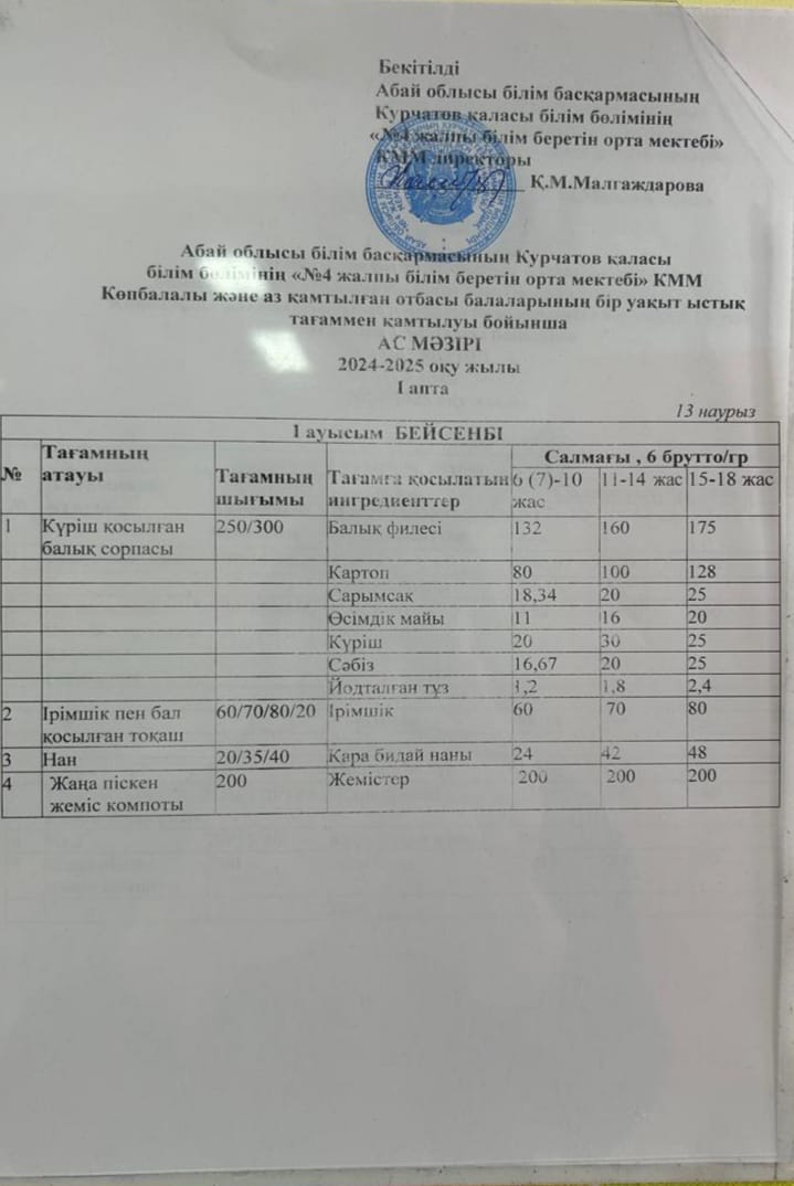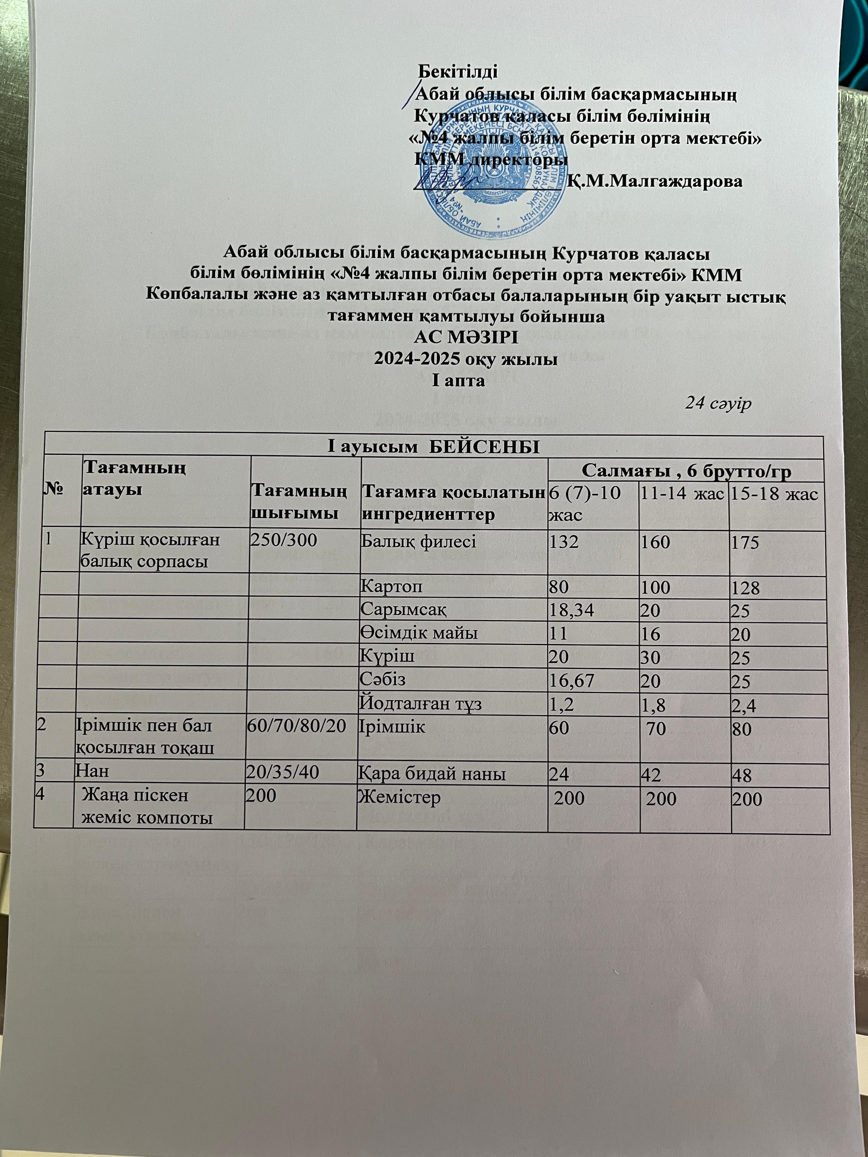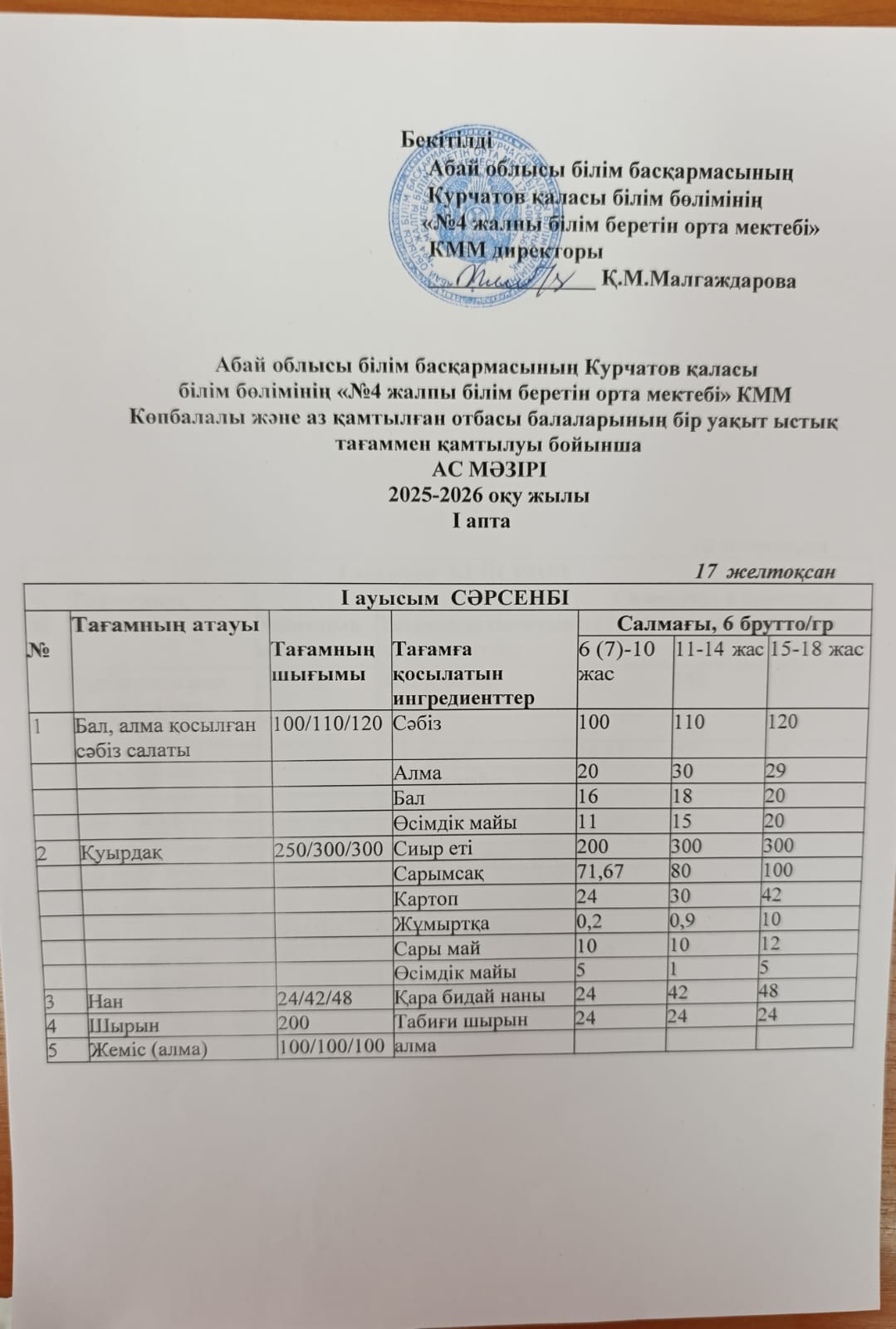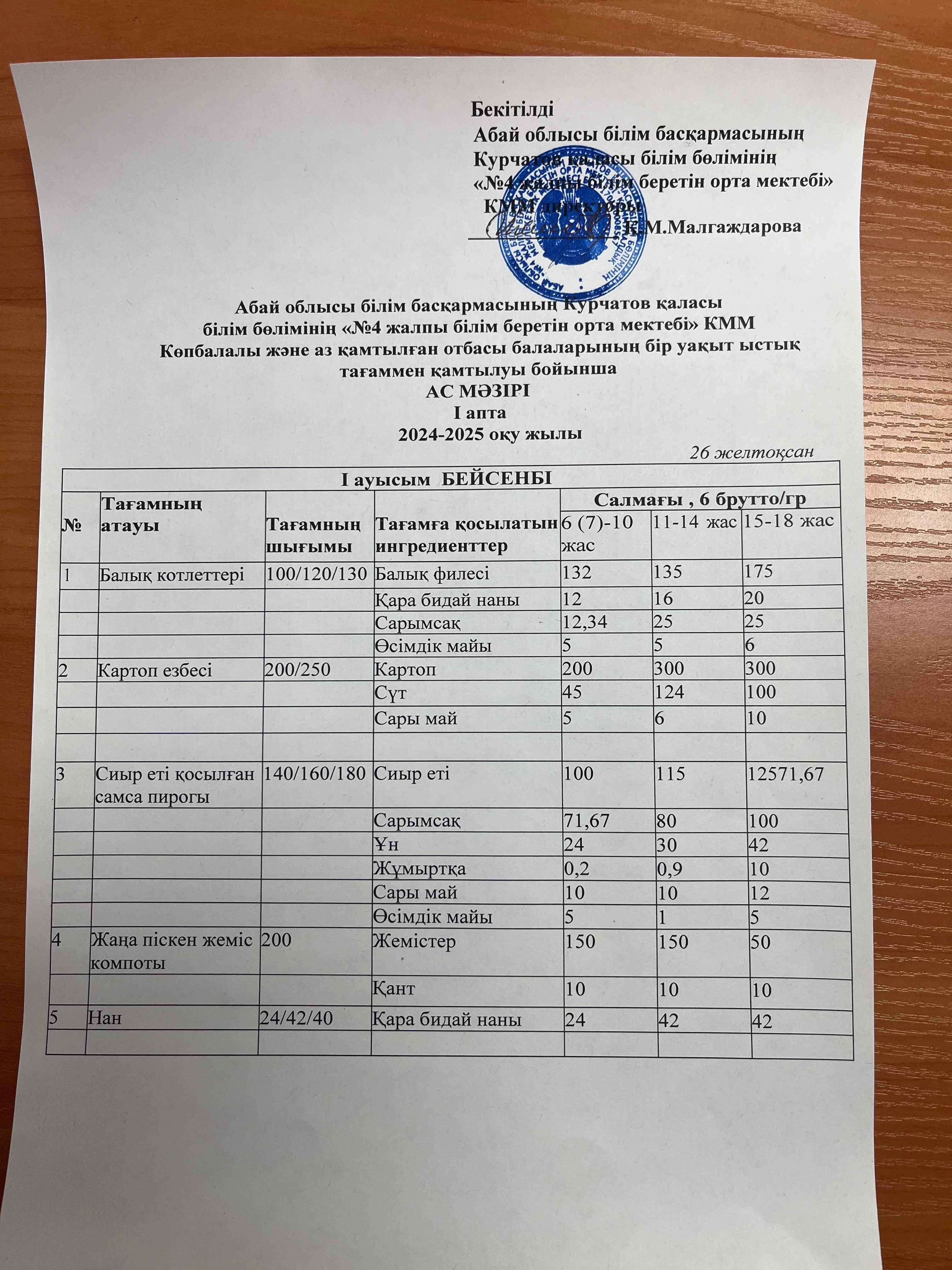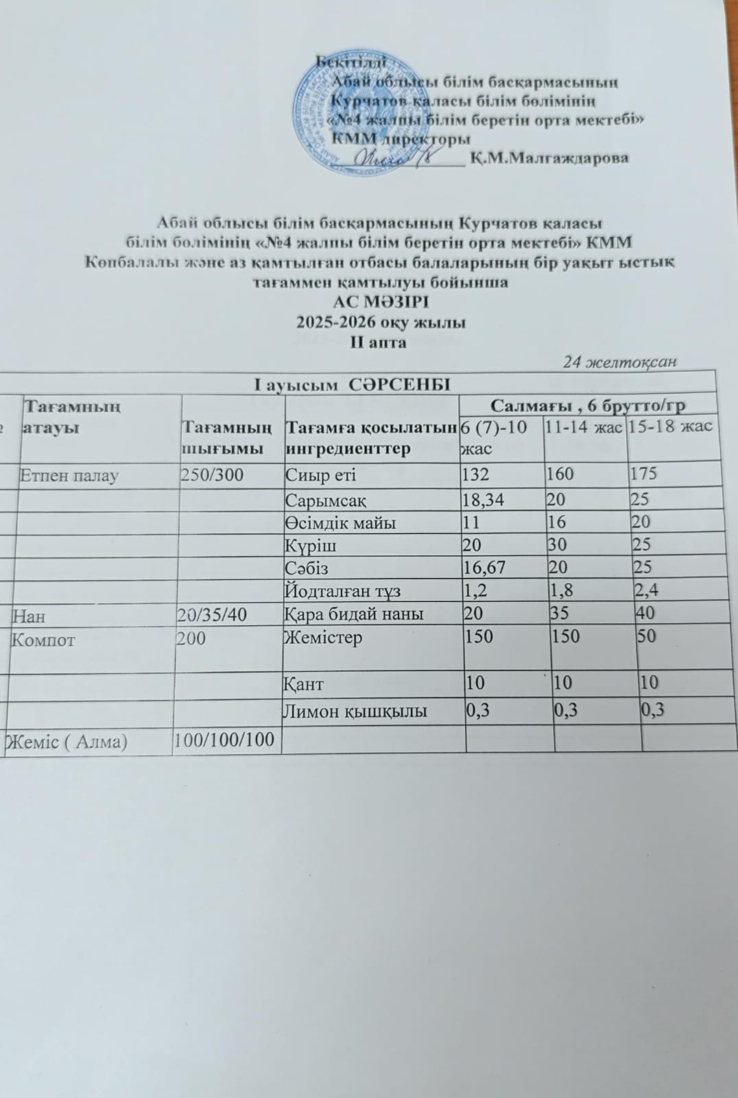 | 1 | 2 апталық 5 күндік ас мәзірі | |