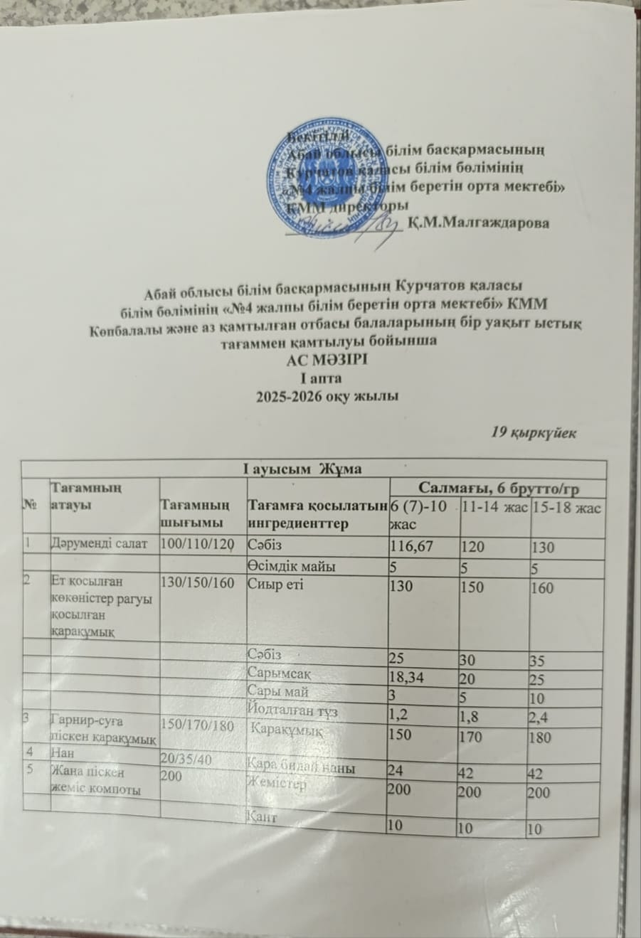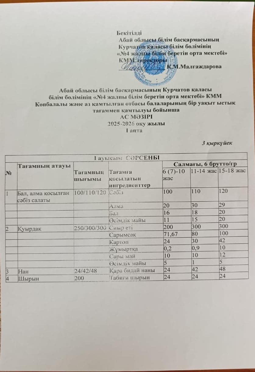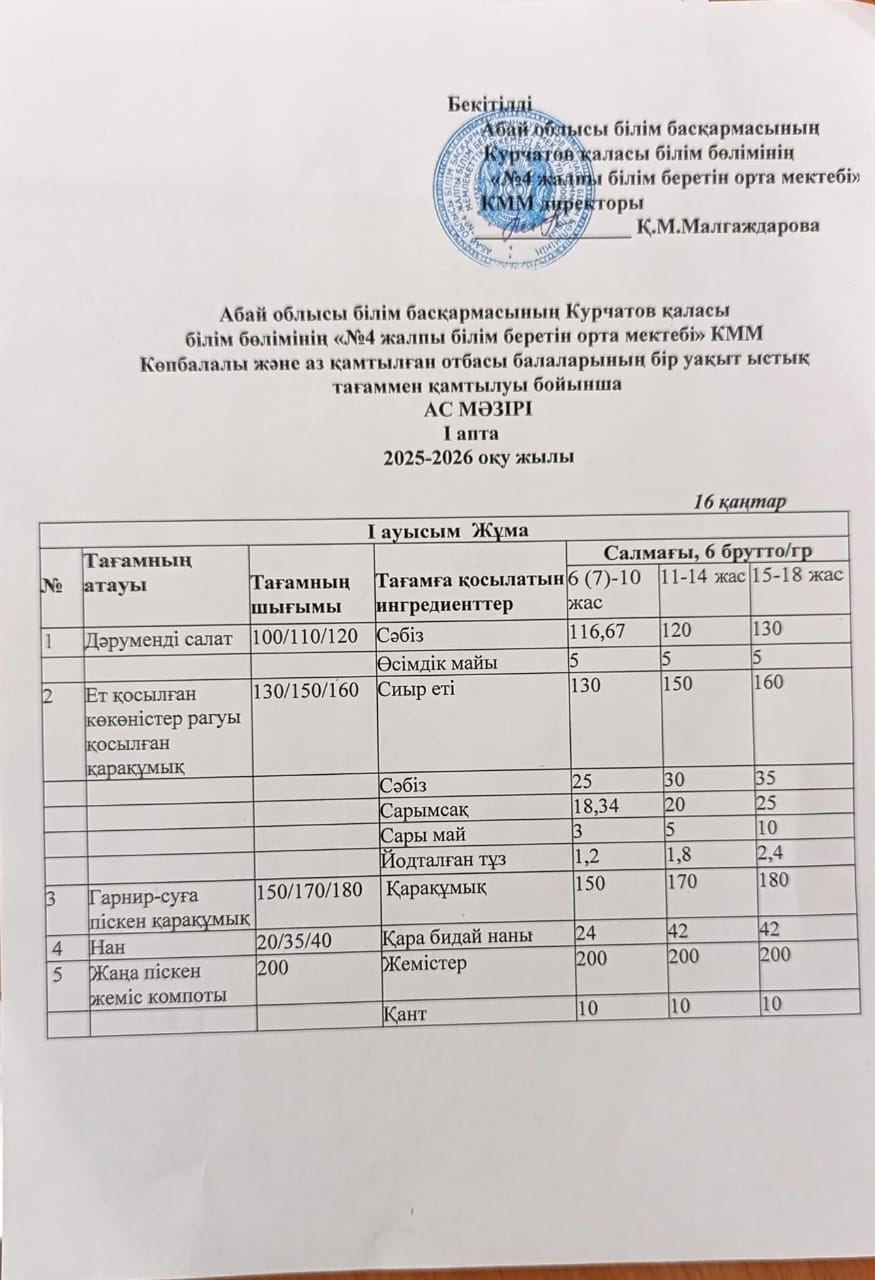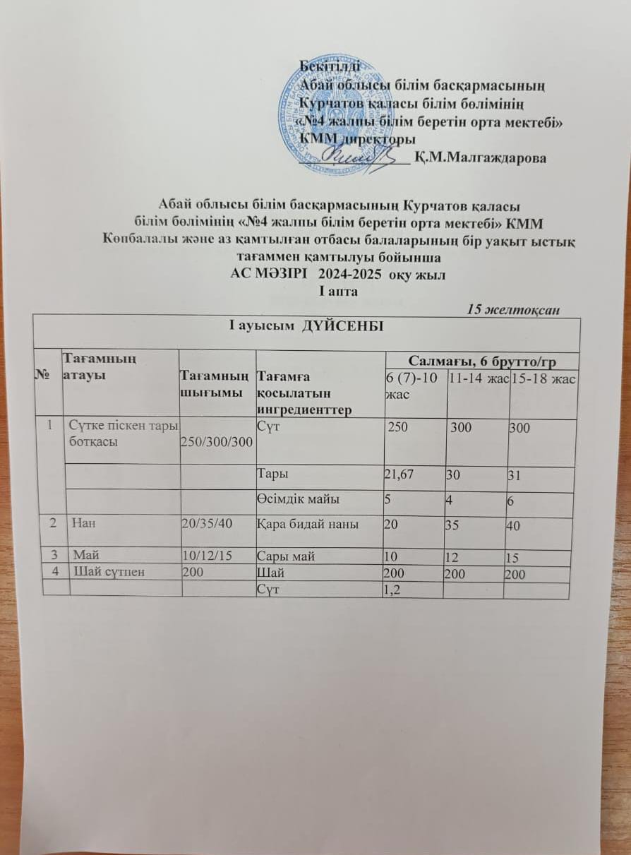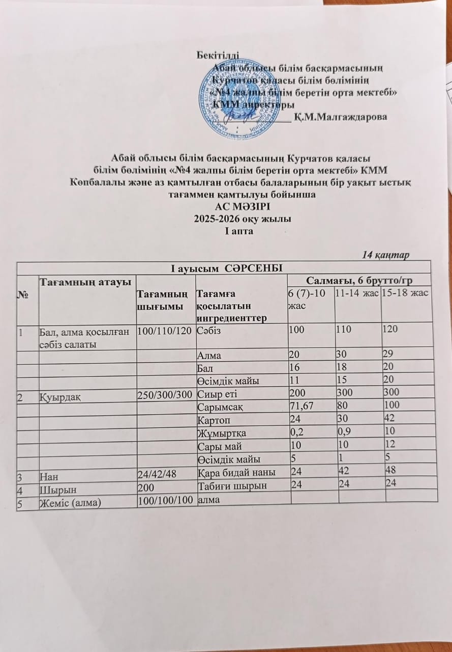 | 1 | 2 апталық 5 күндік ас мәзірі | |