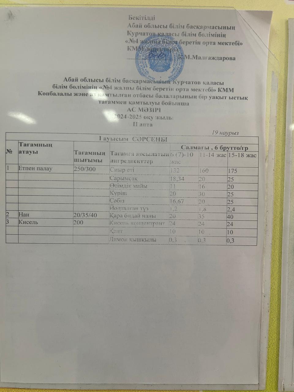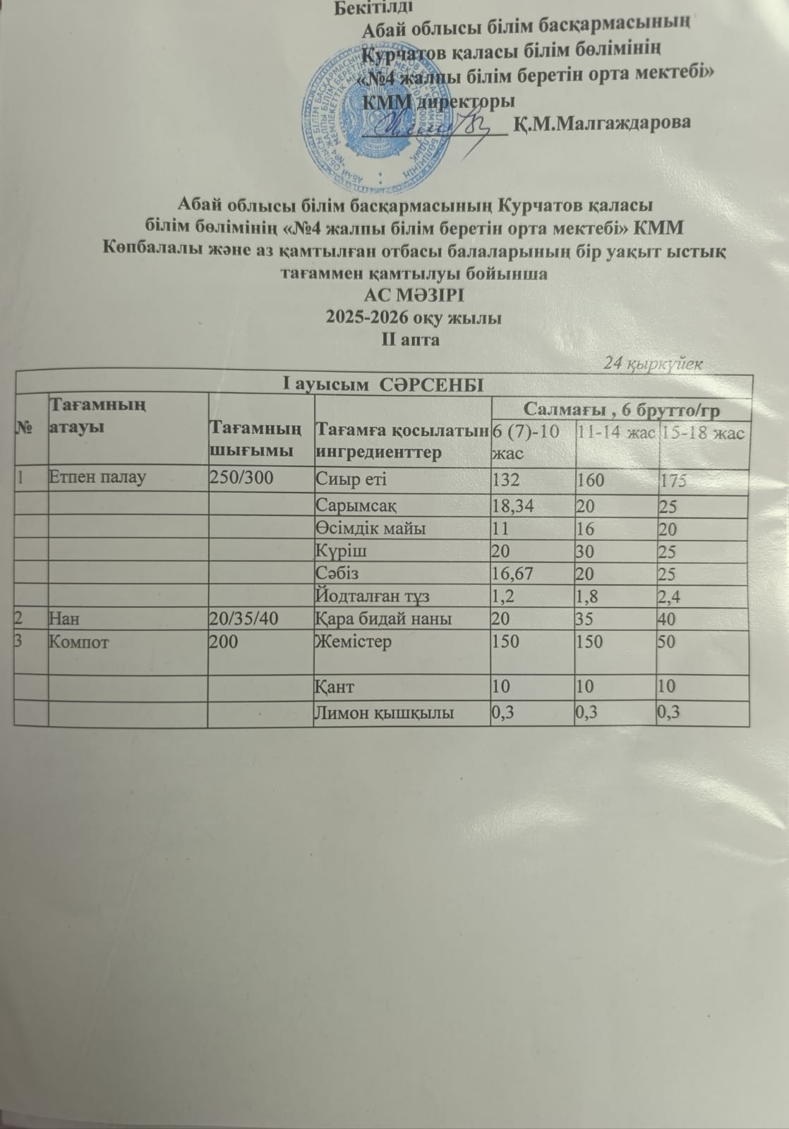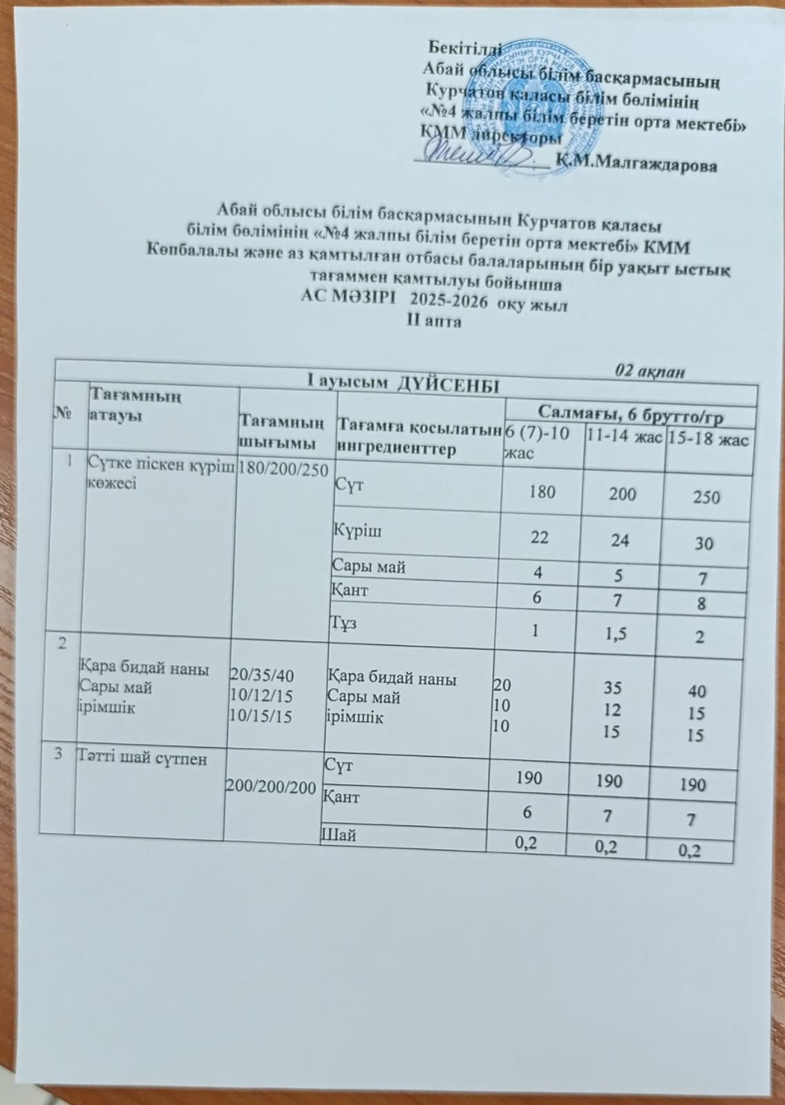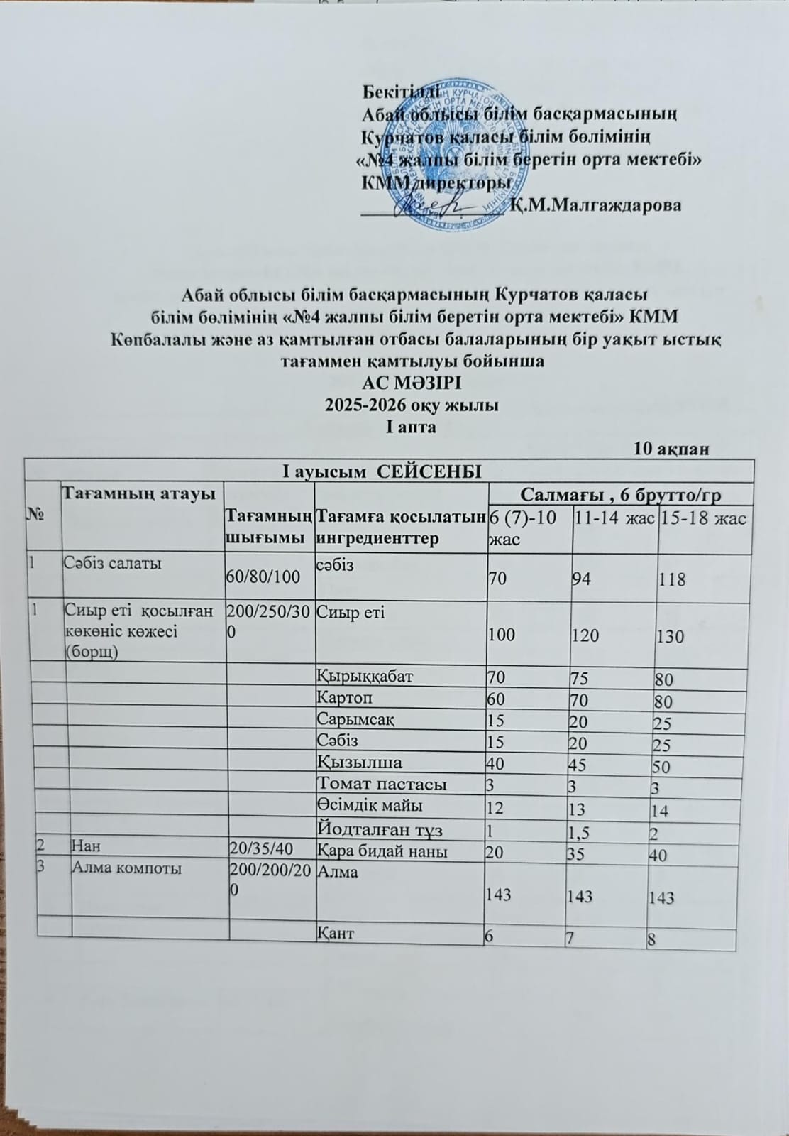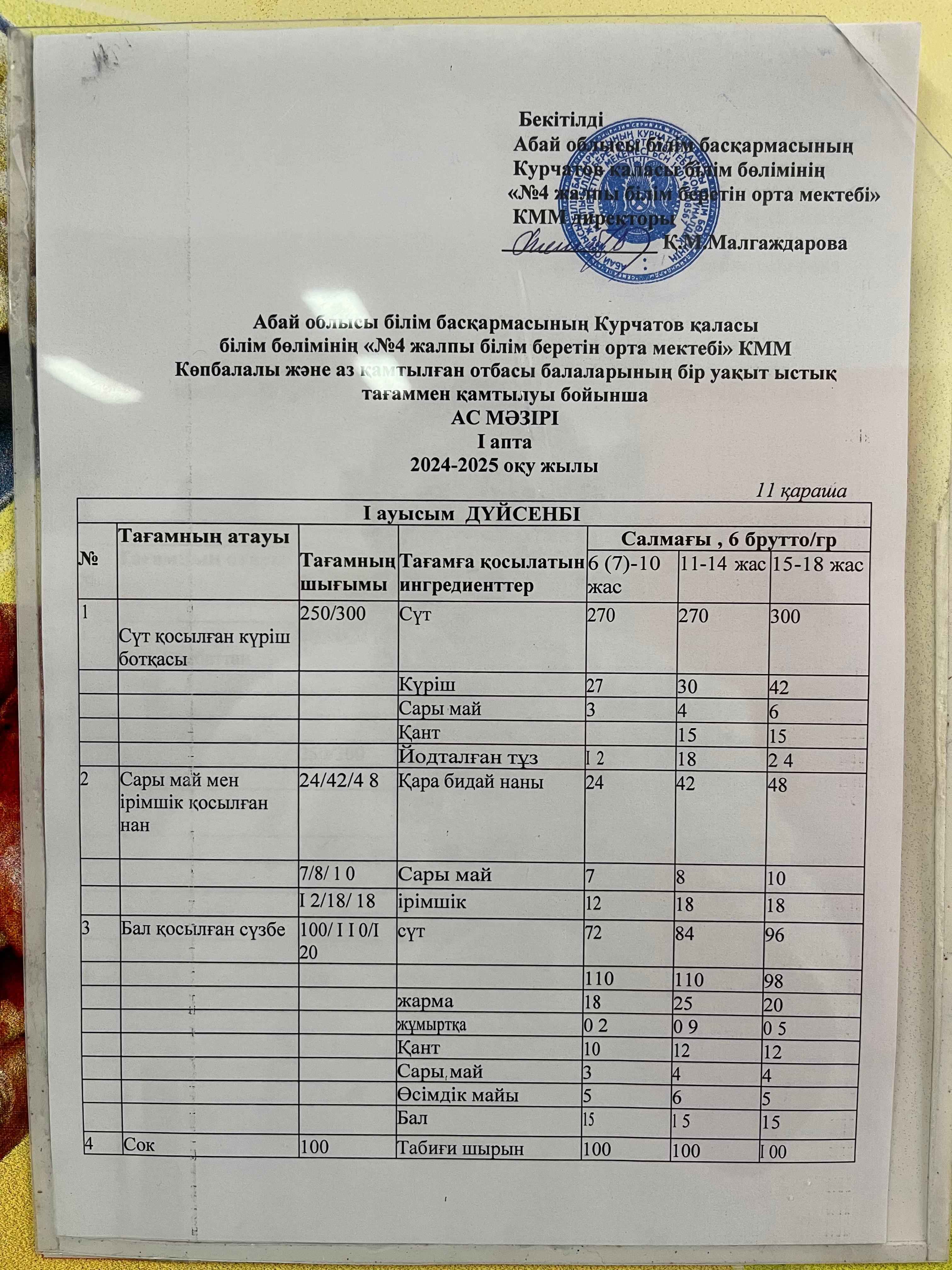 | 1 | 2 апталық 5 күндік ас мәзірі | |