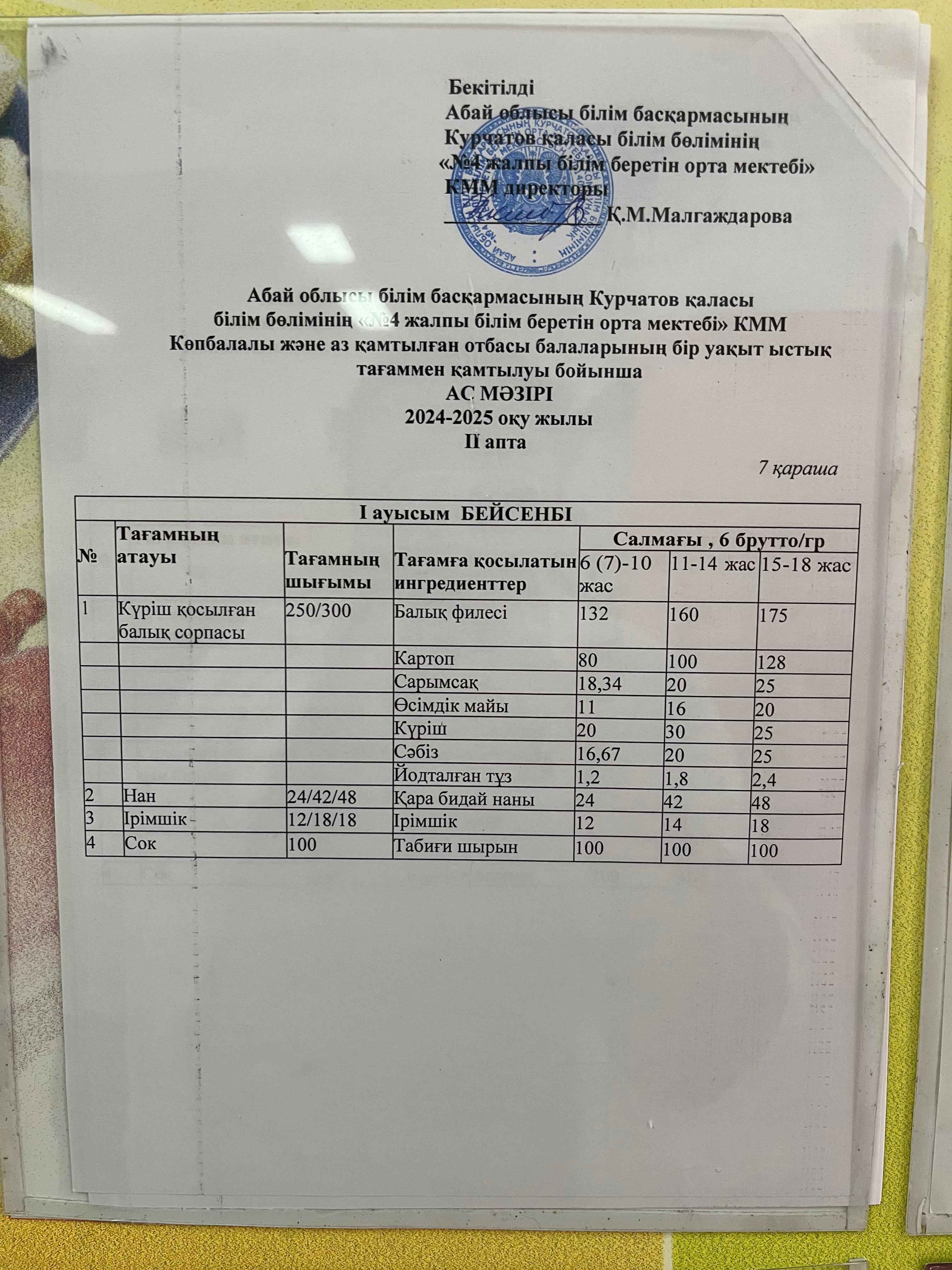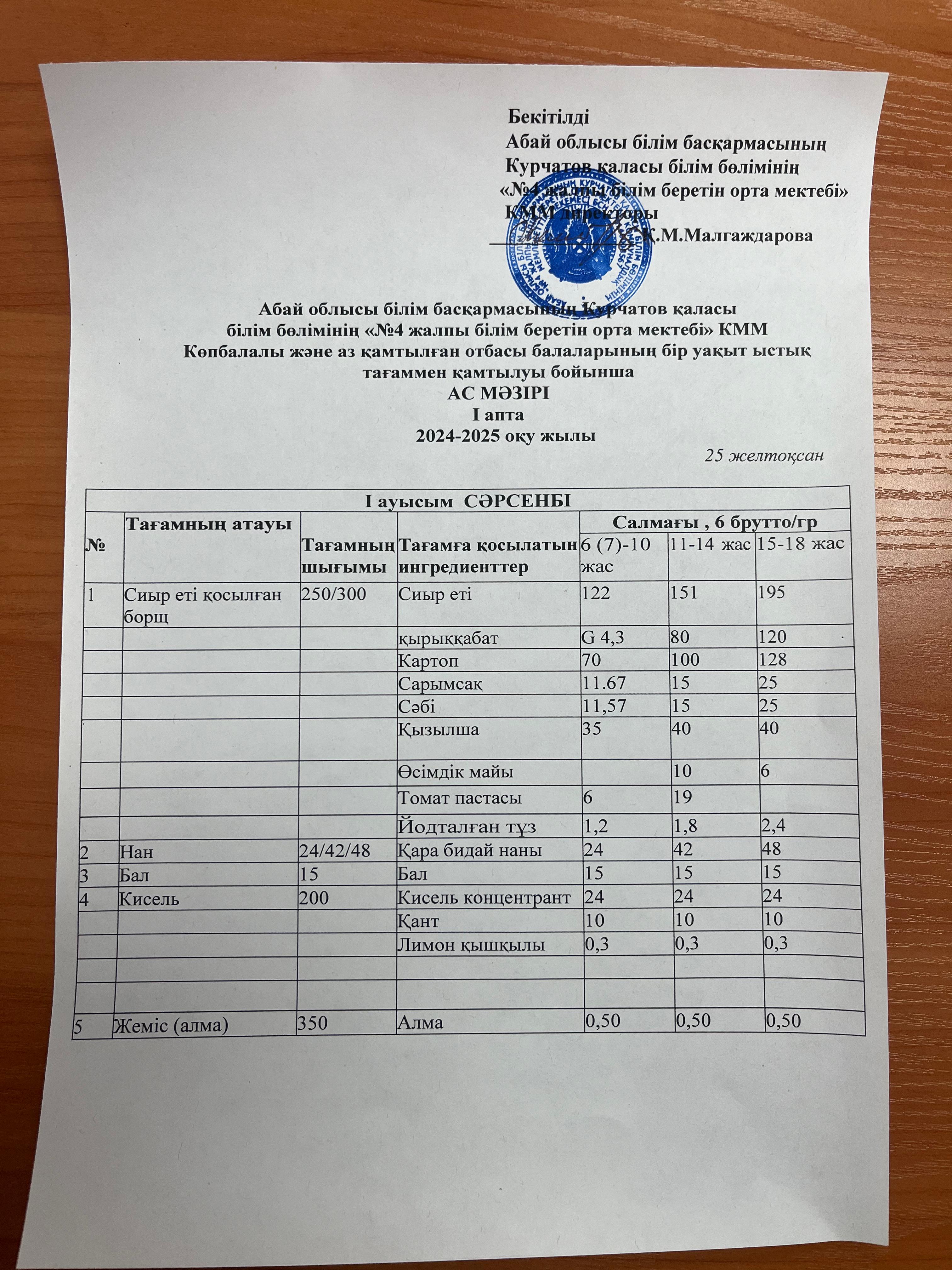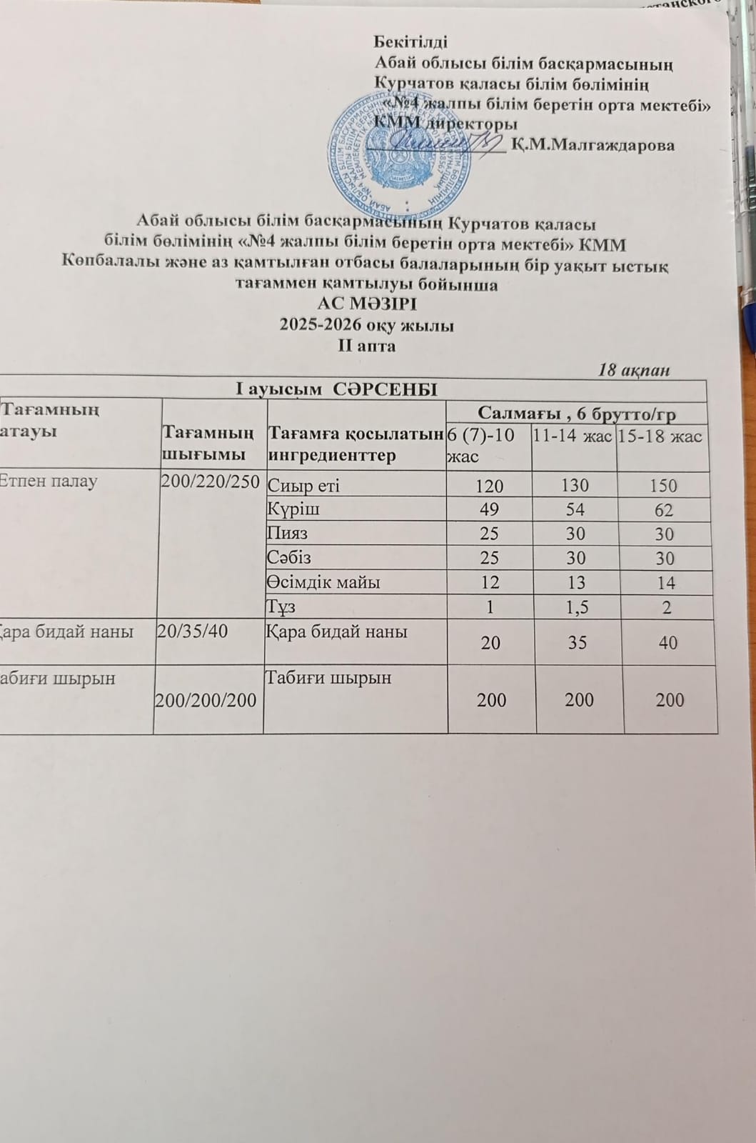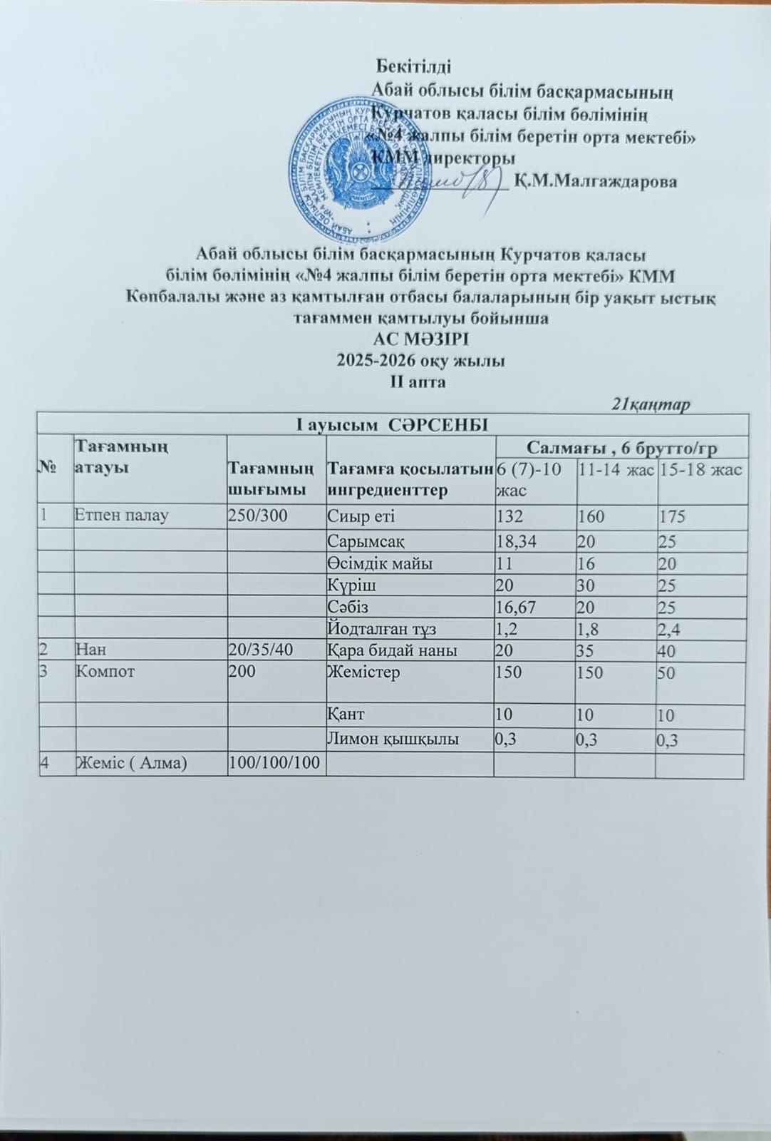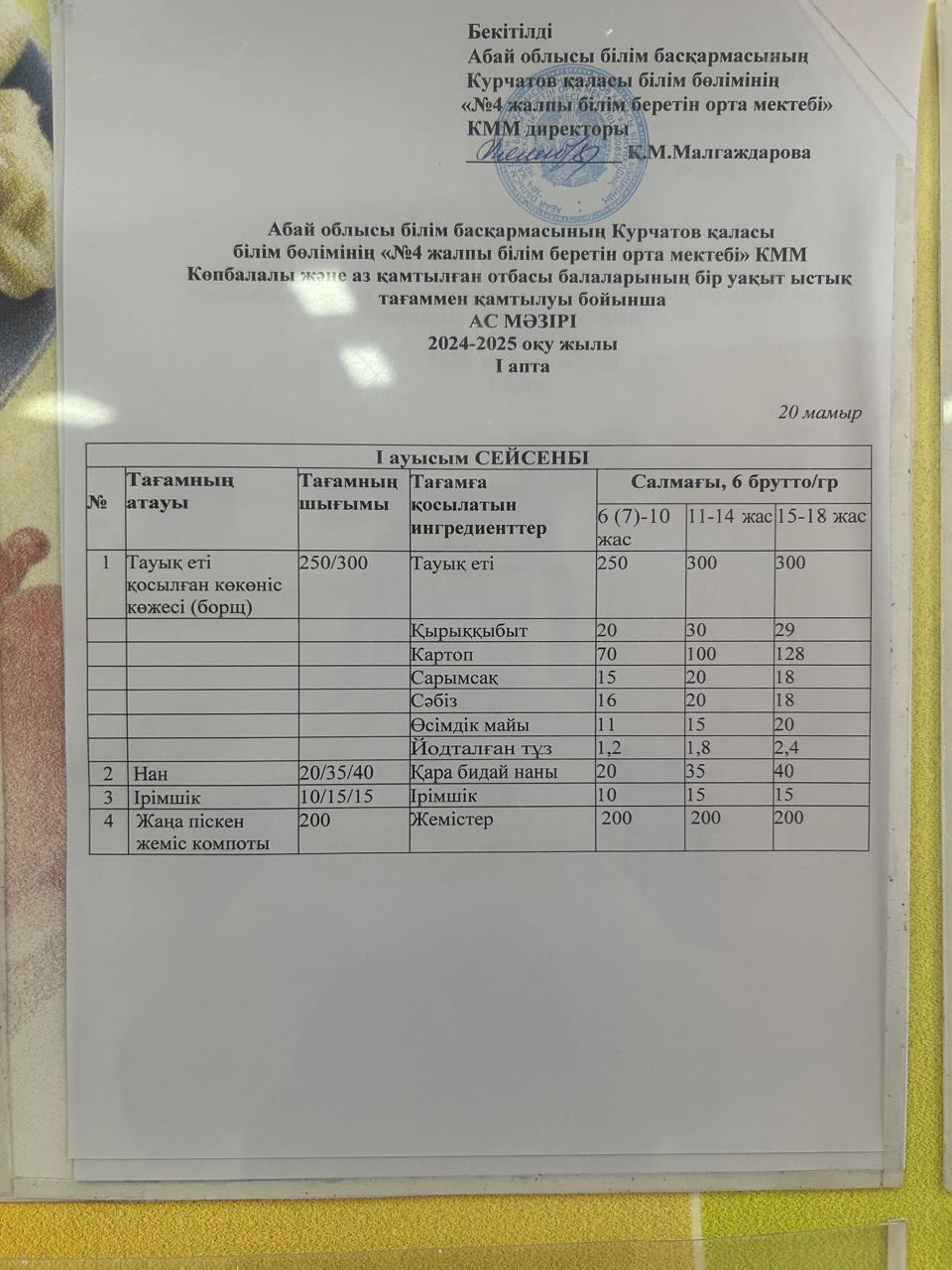 | 1 | 2 апталық 5 күндік ас мәзірі | |