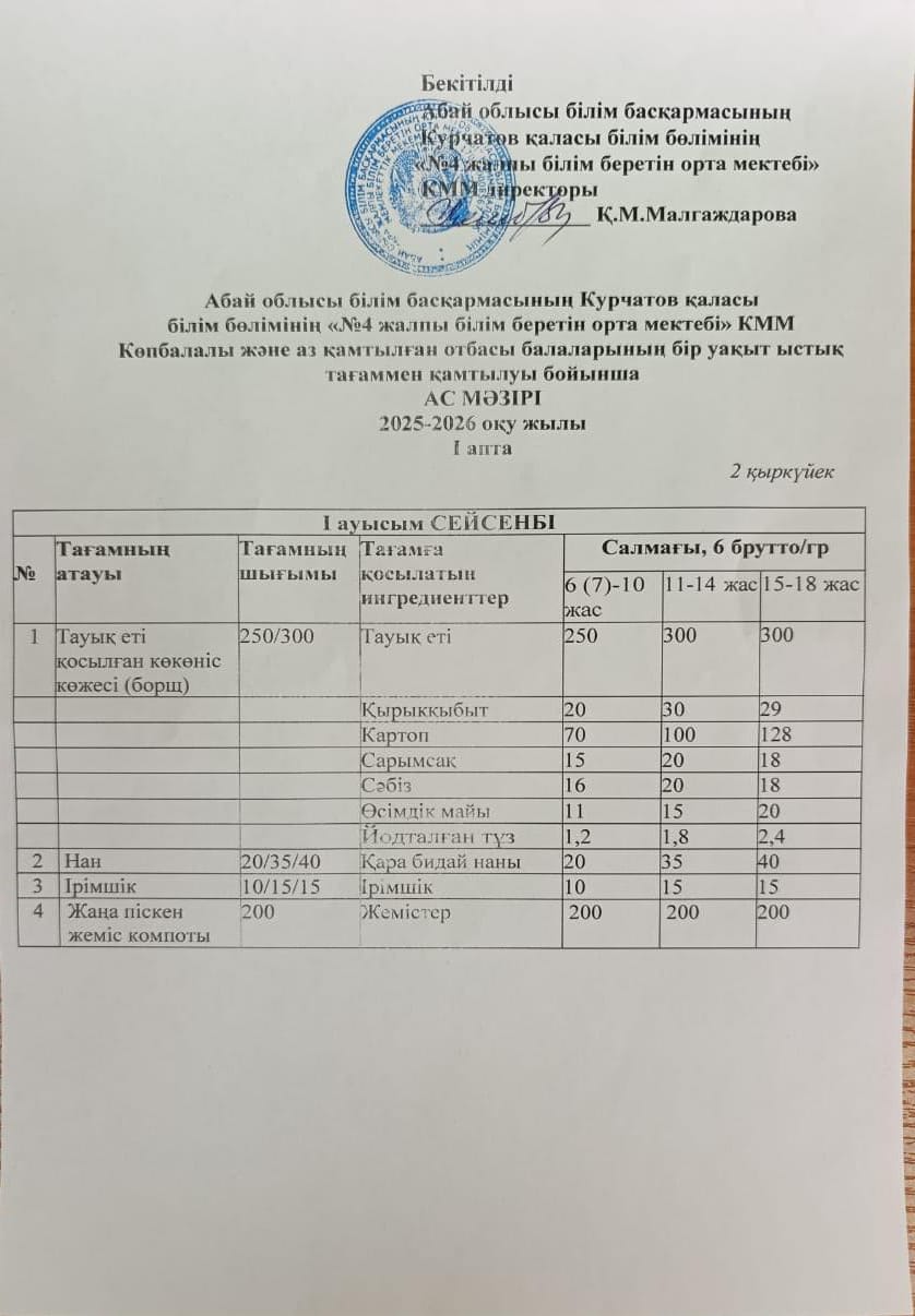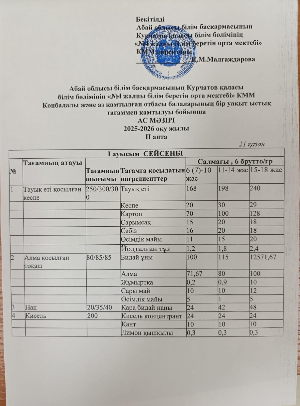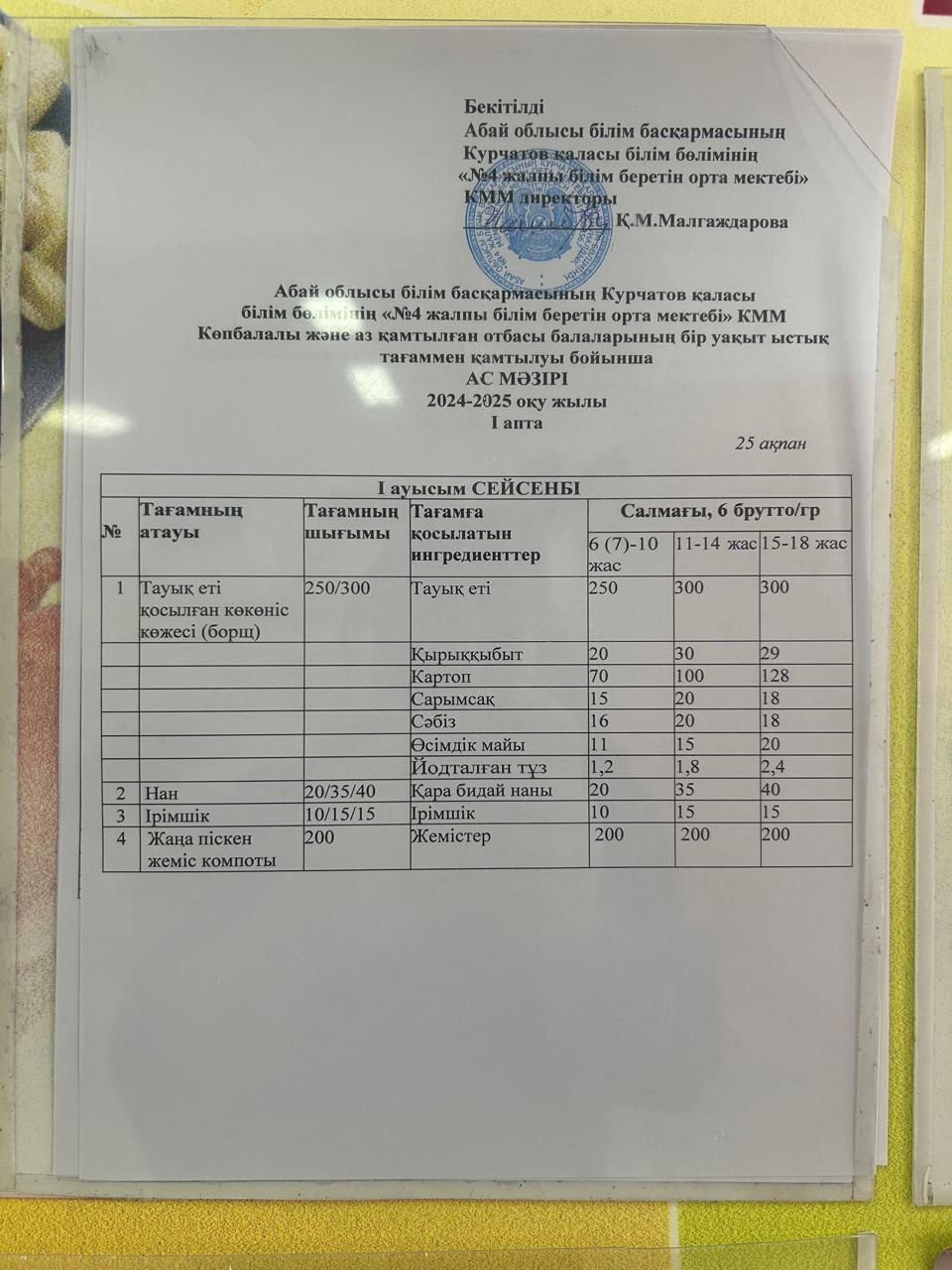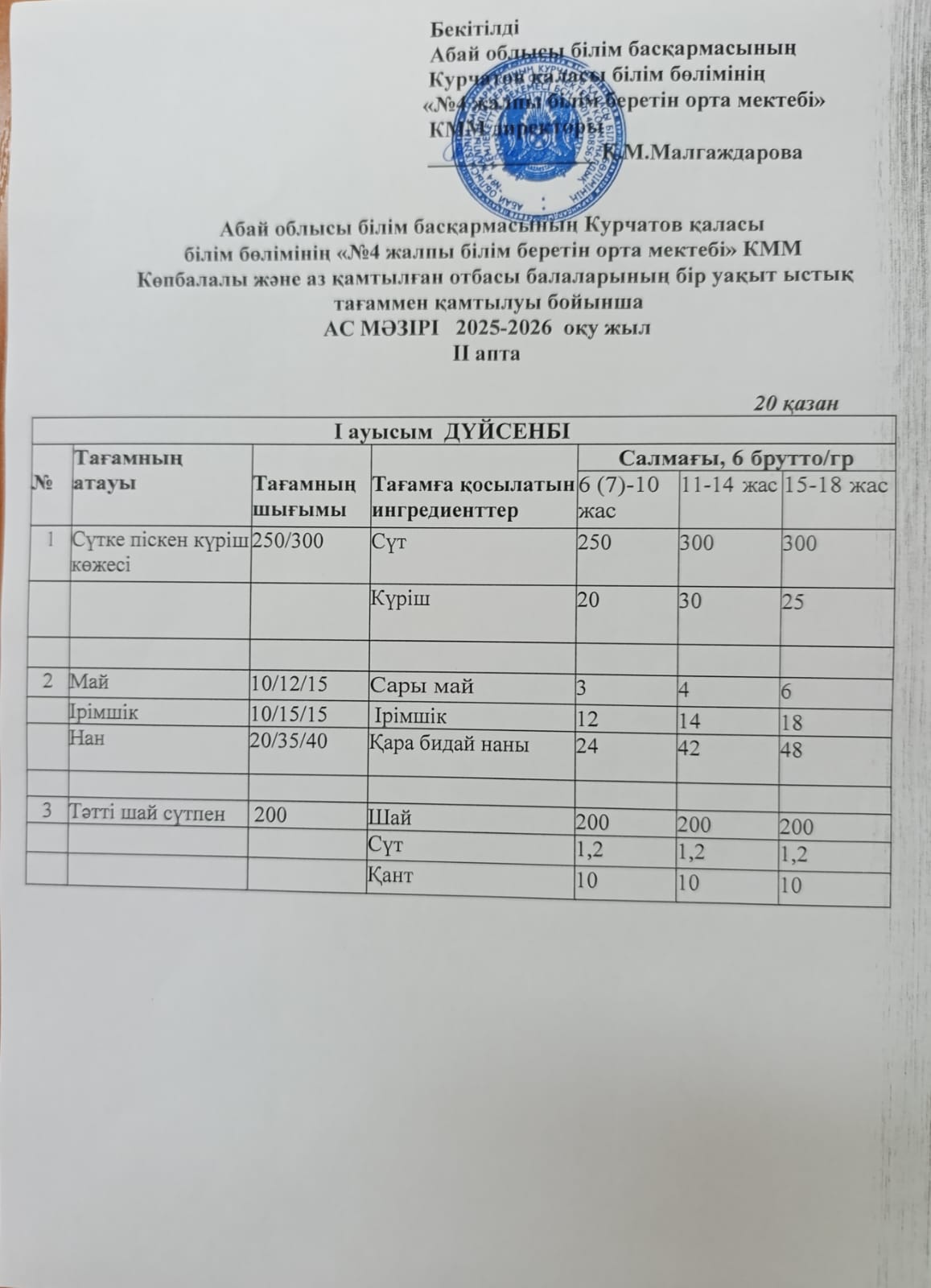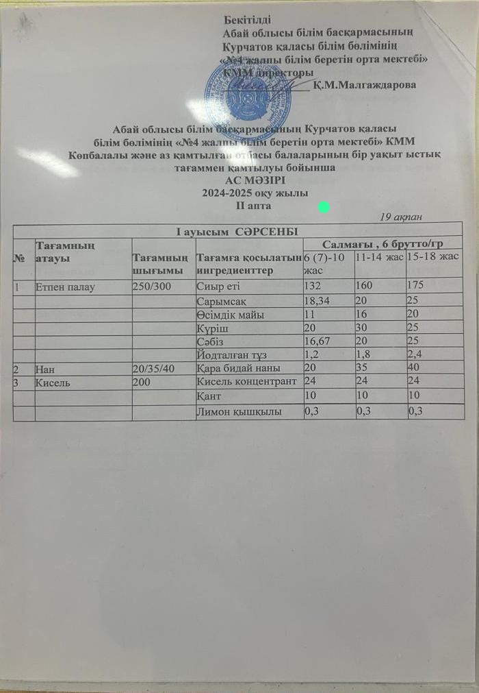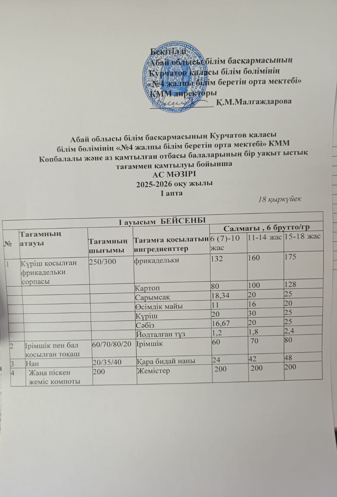 | 1 | 2 апталық 5 күндік ас мәзірі | |