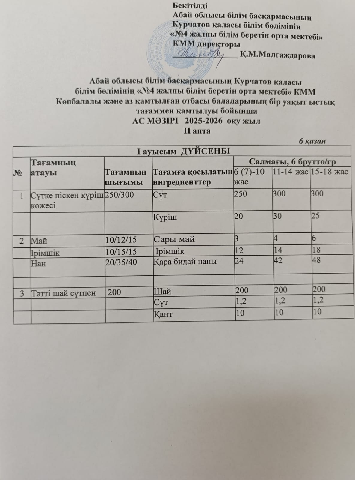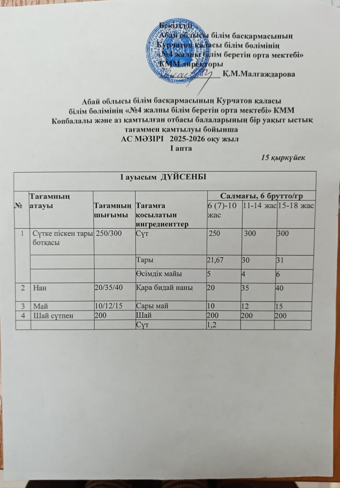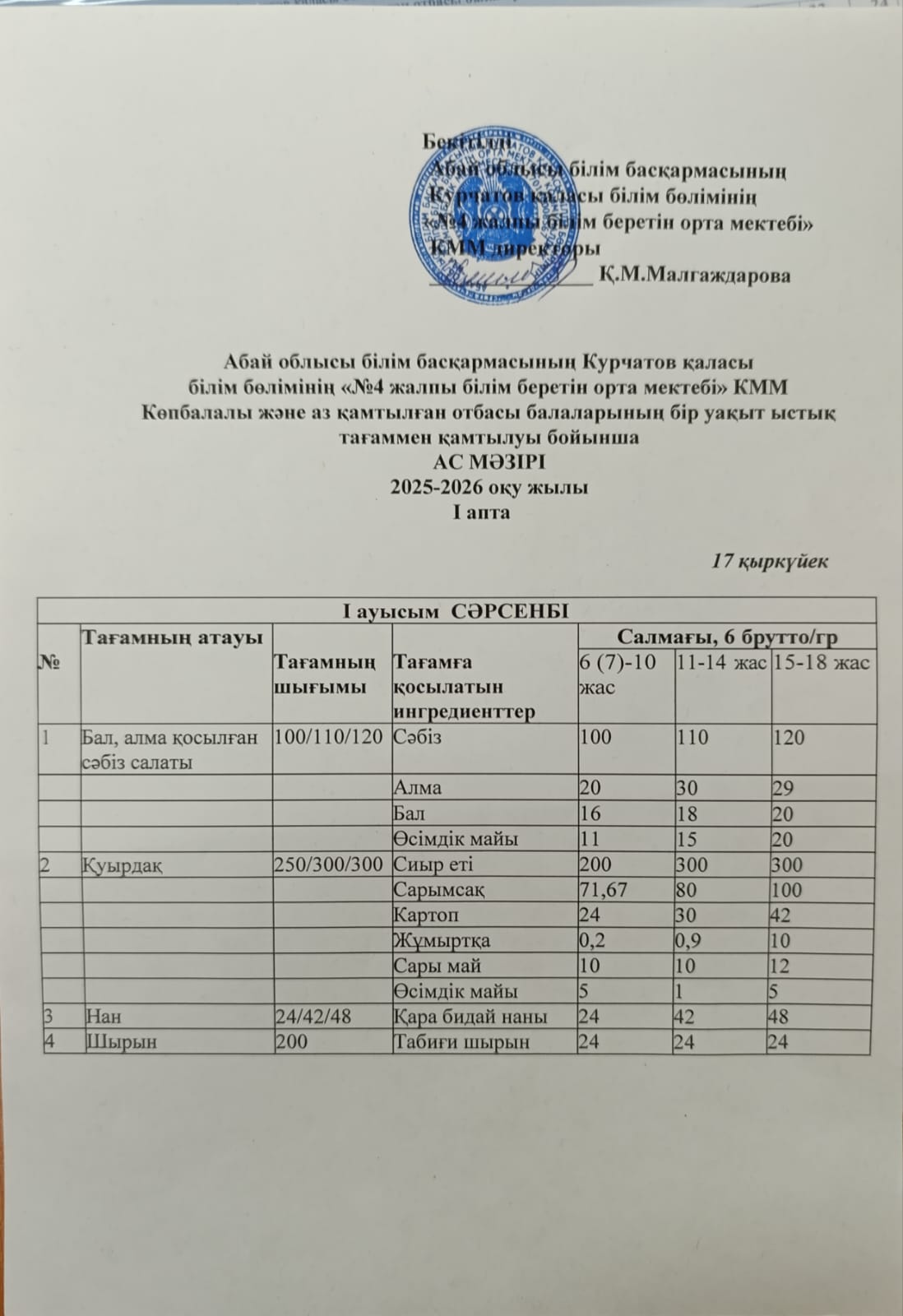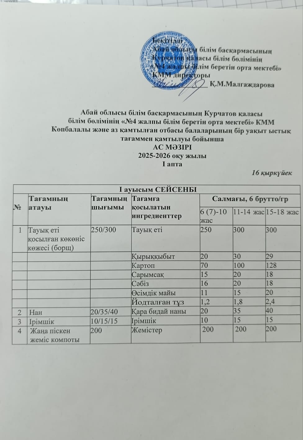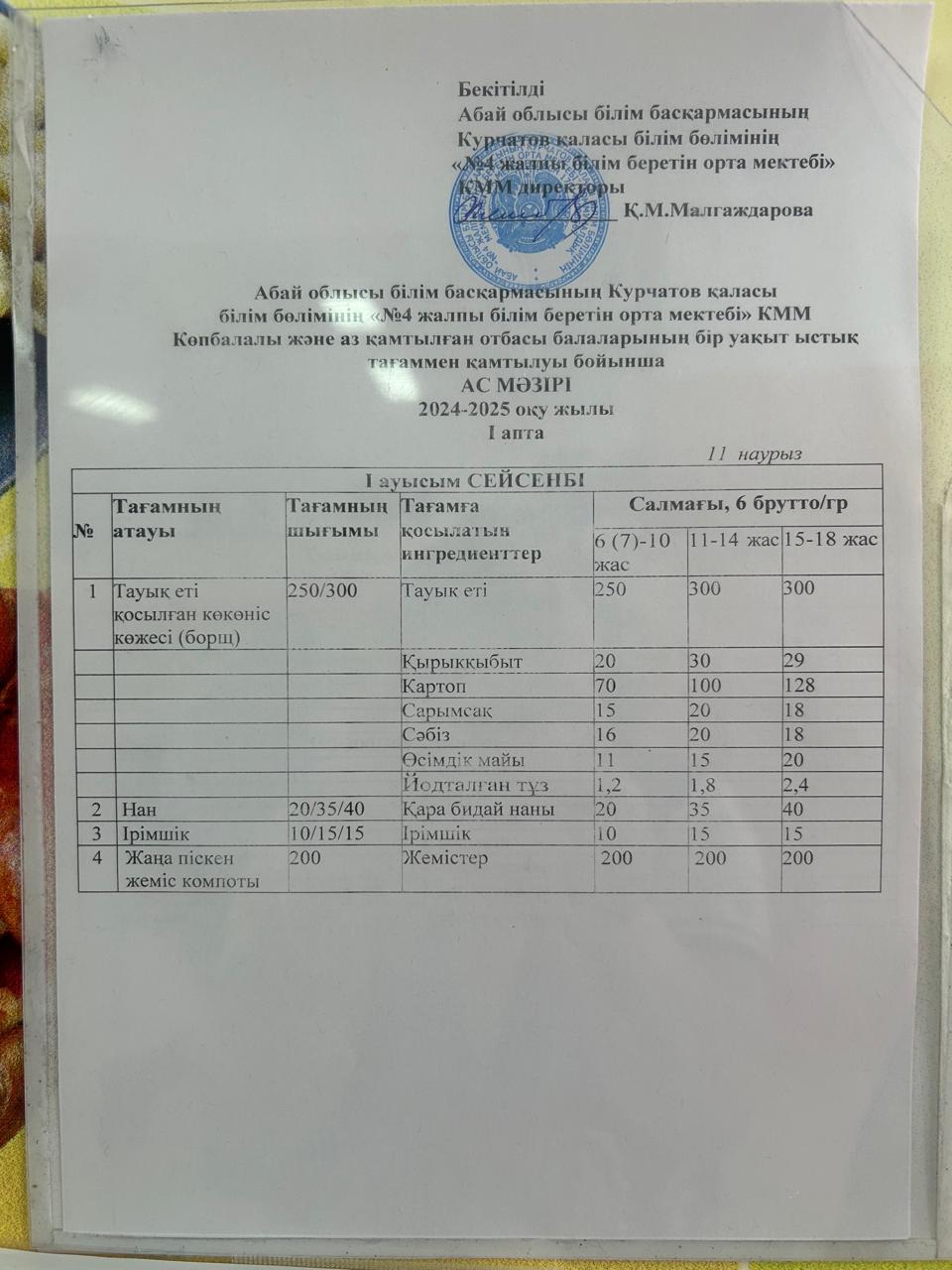| 1 | 2 апталық 5 күндік ас мәзірі | |