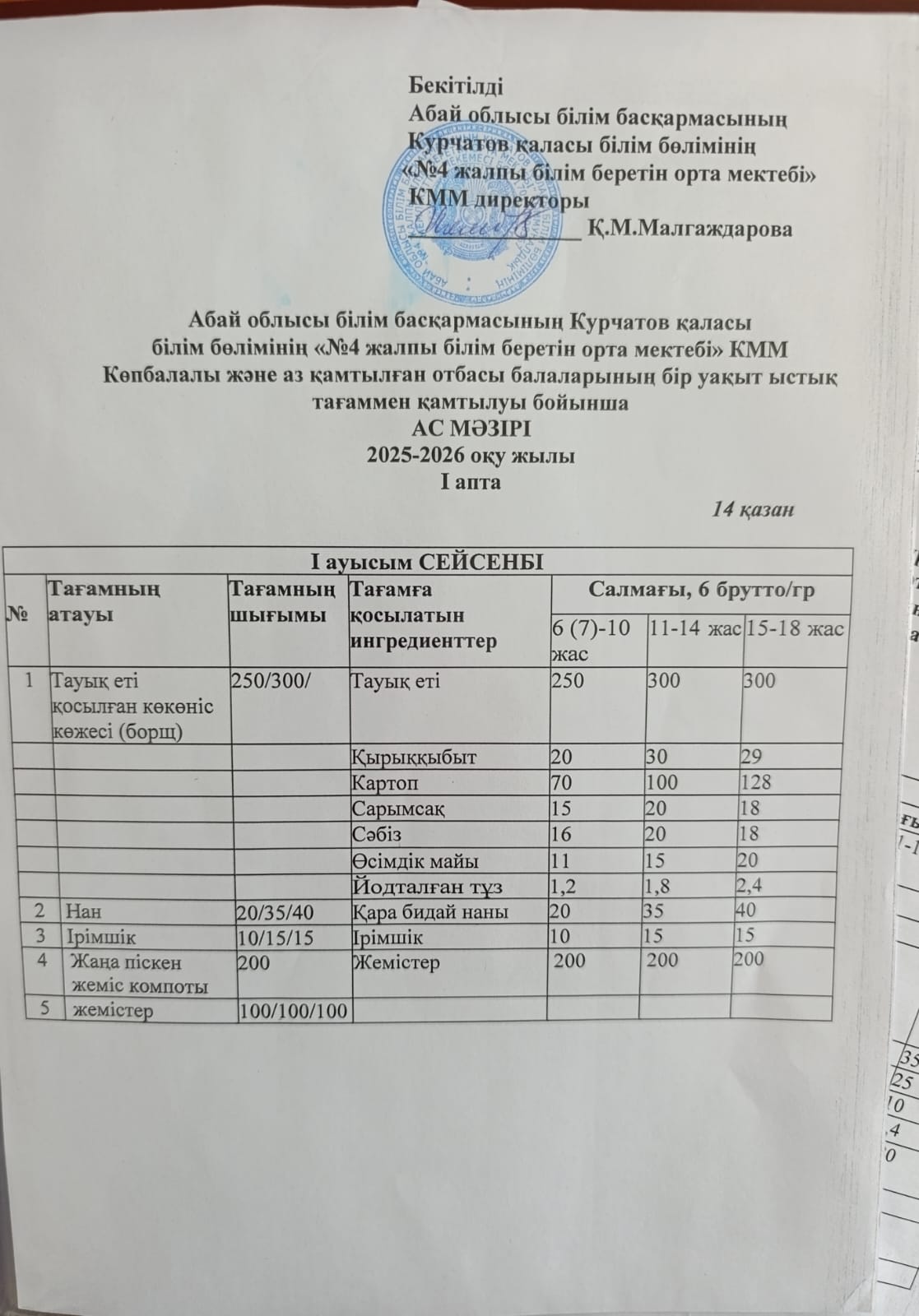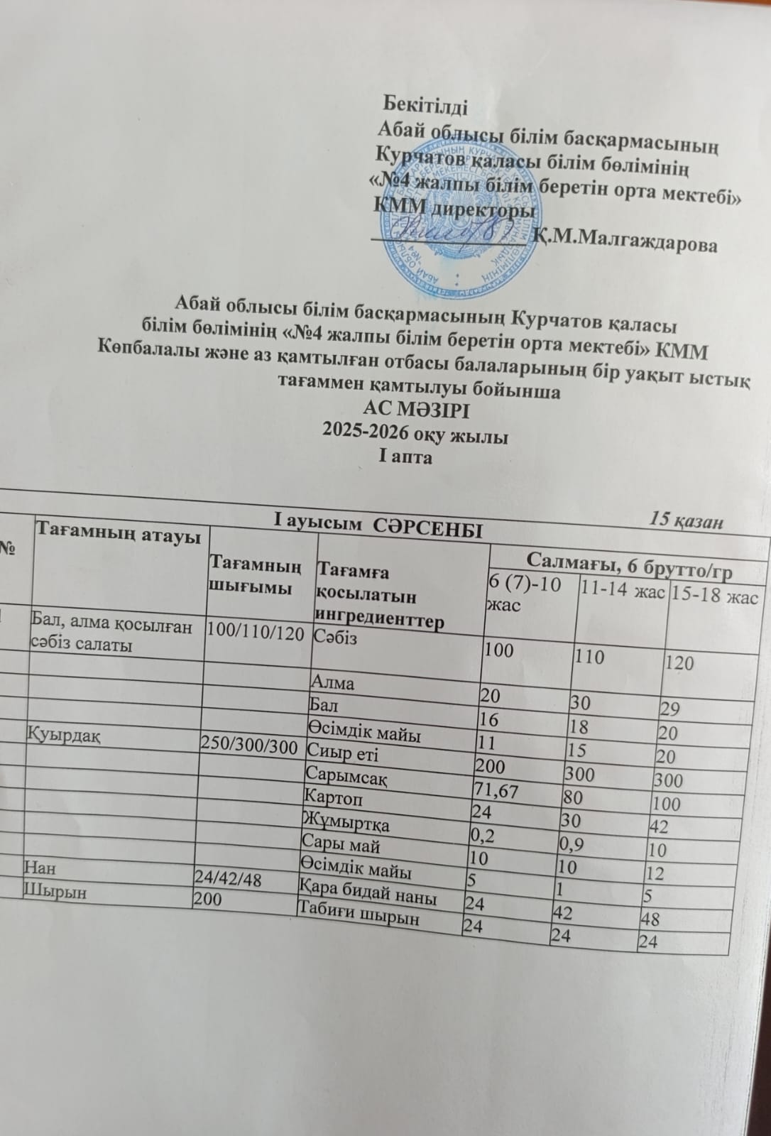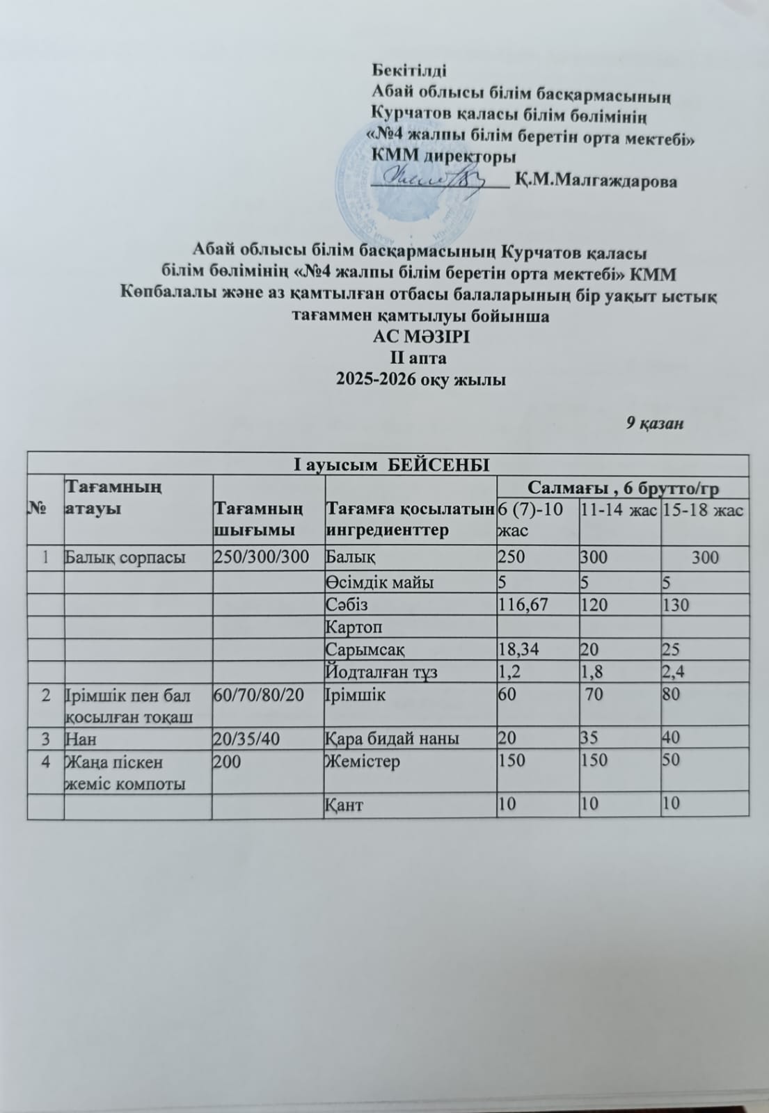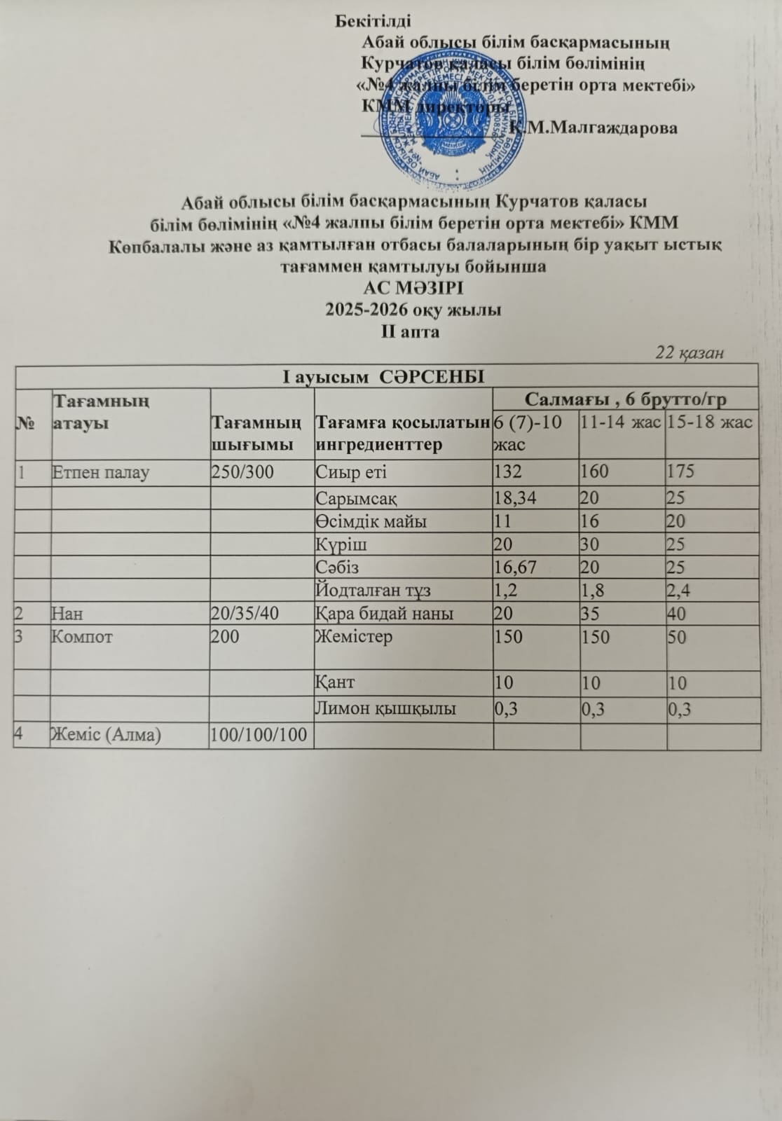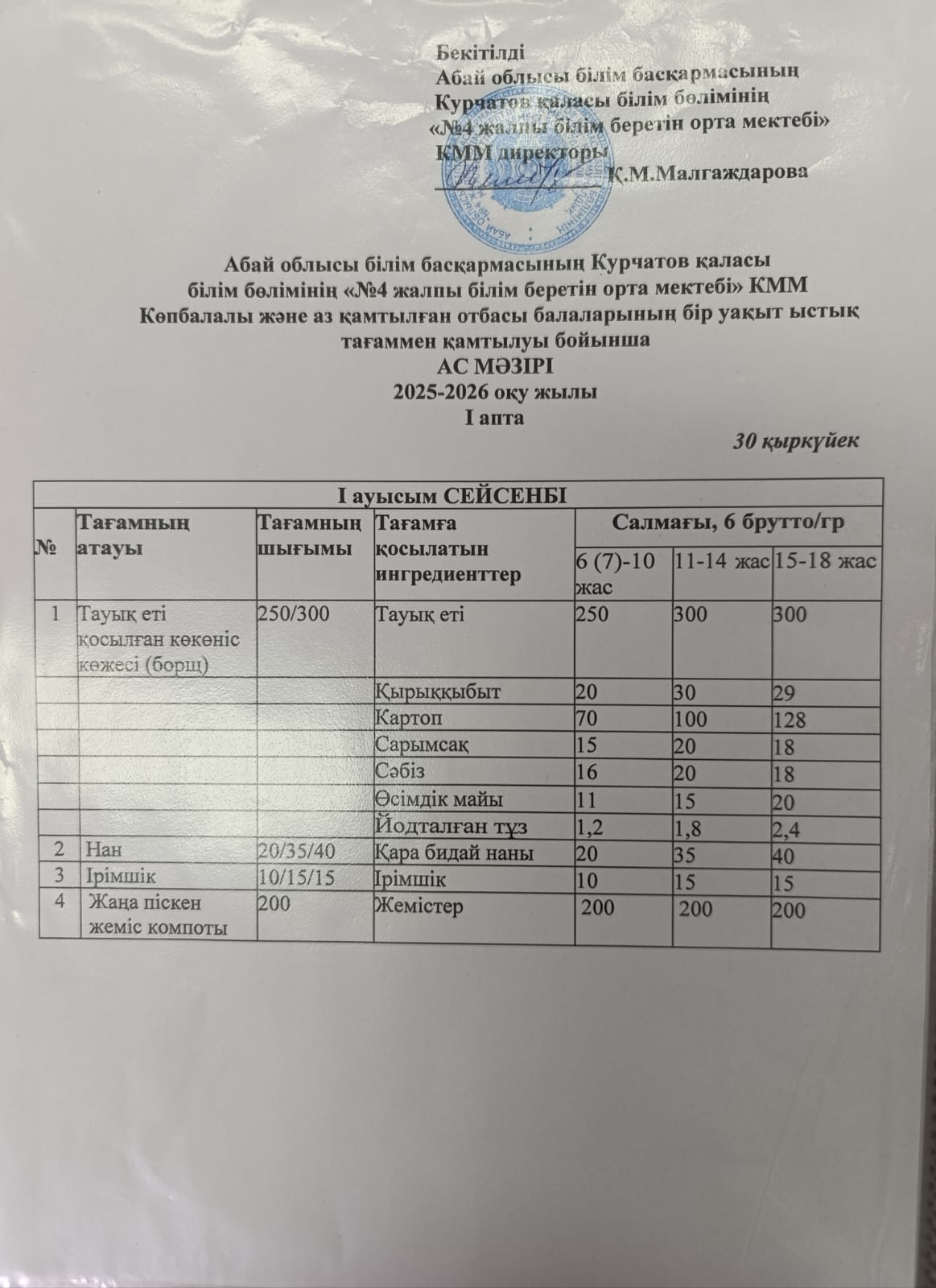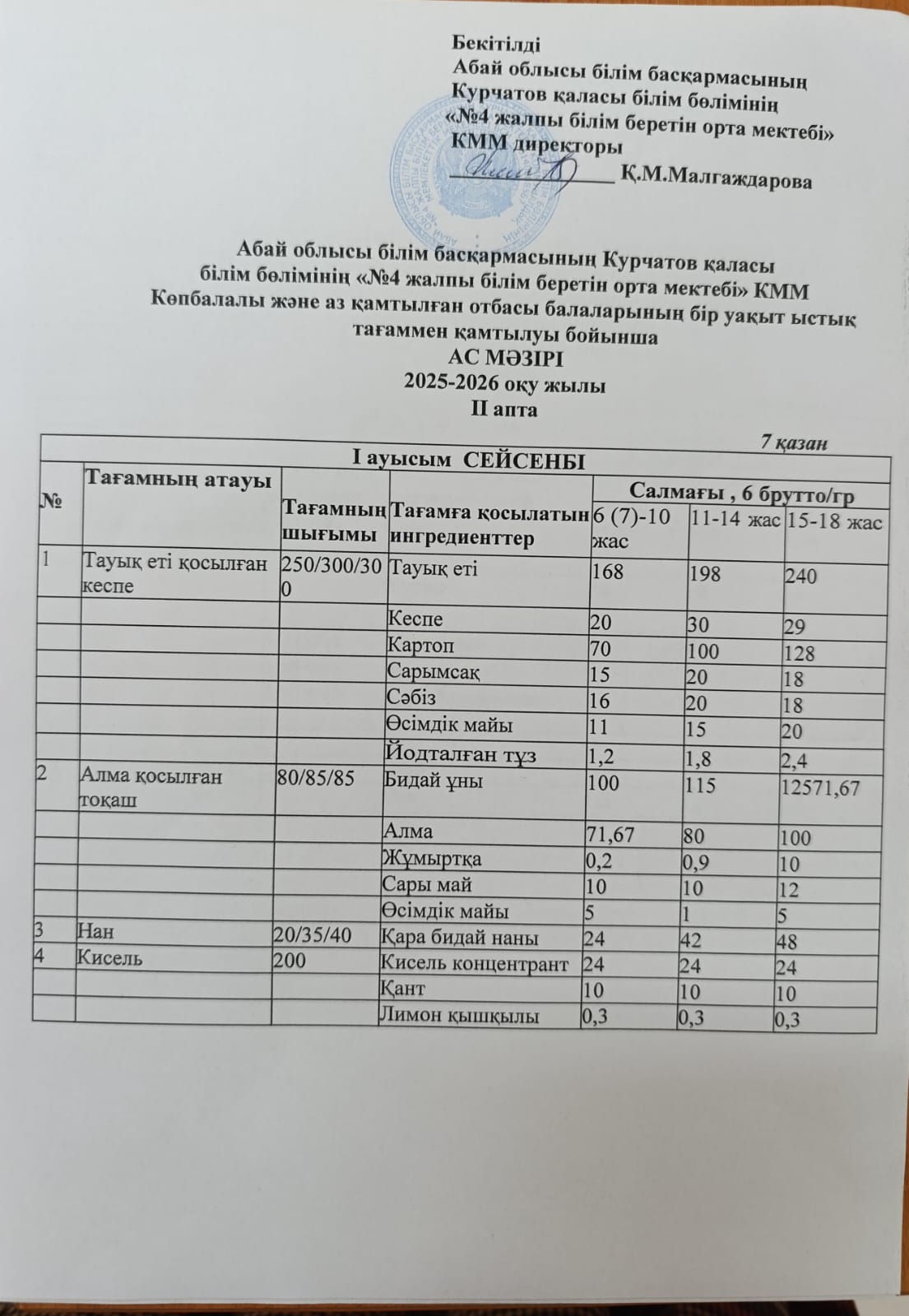 | 1 | 2 апталық 5 күндік ас мәзірі | |