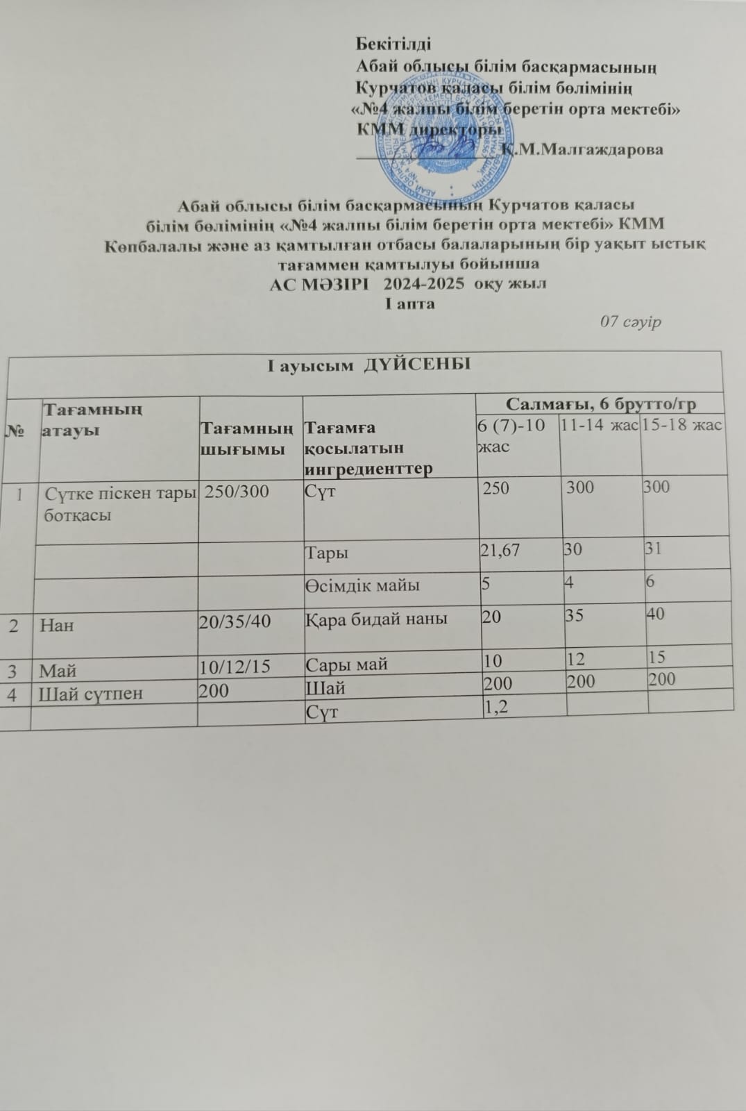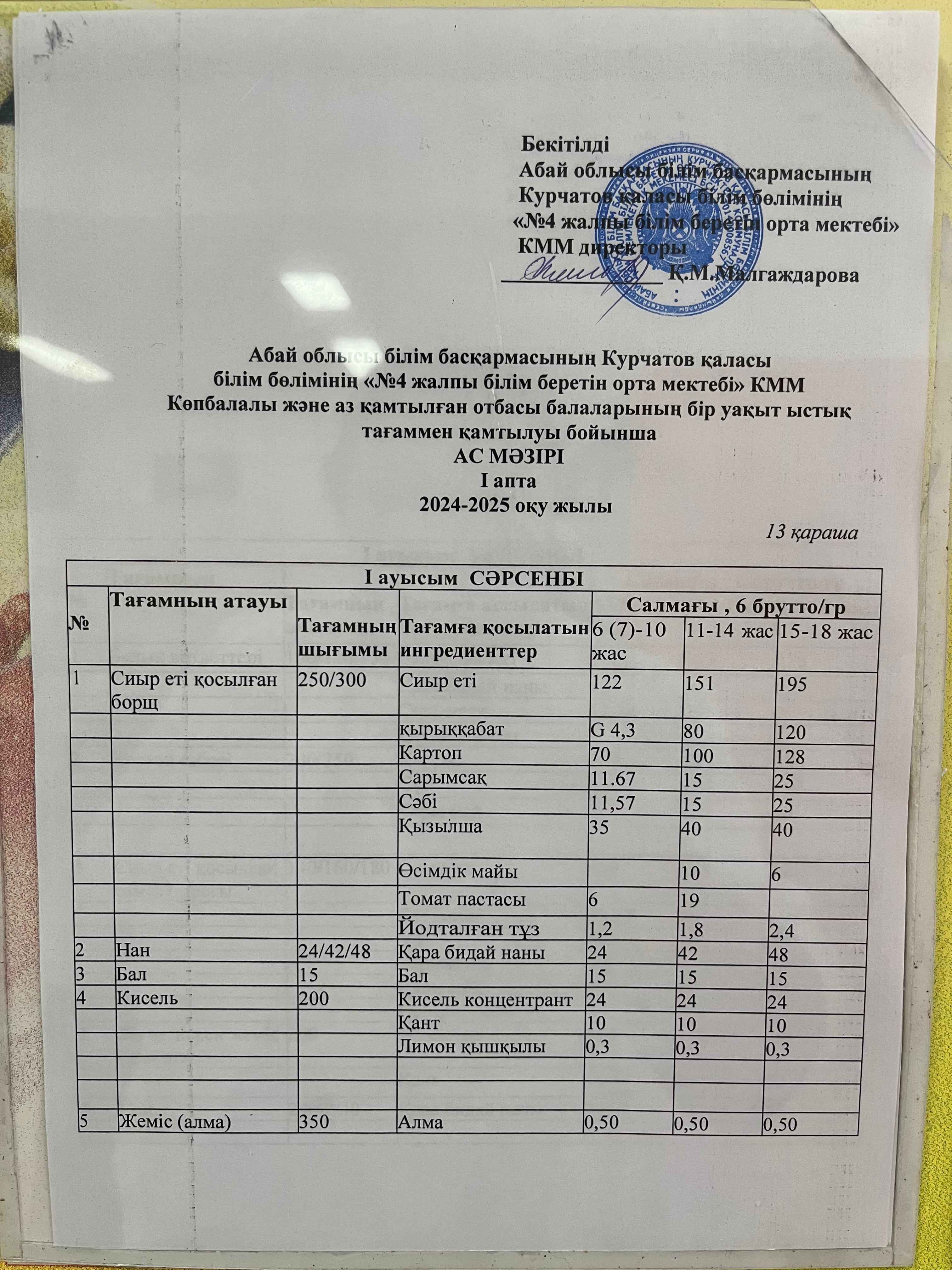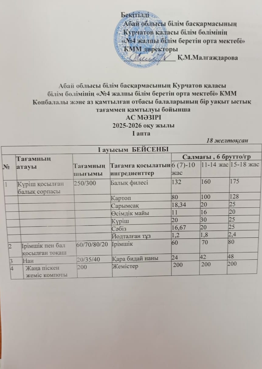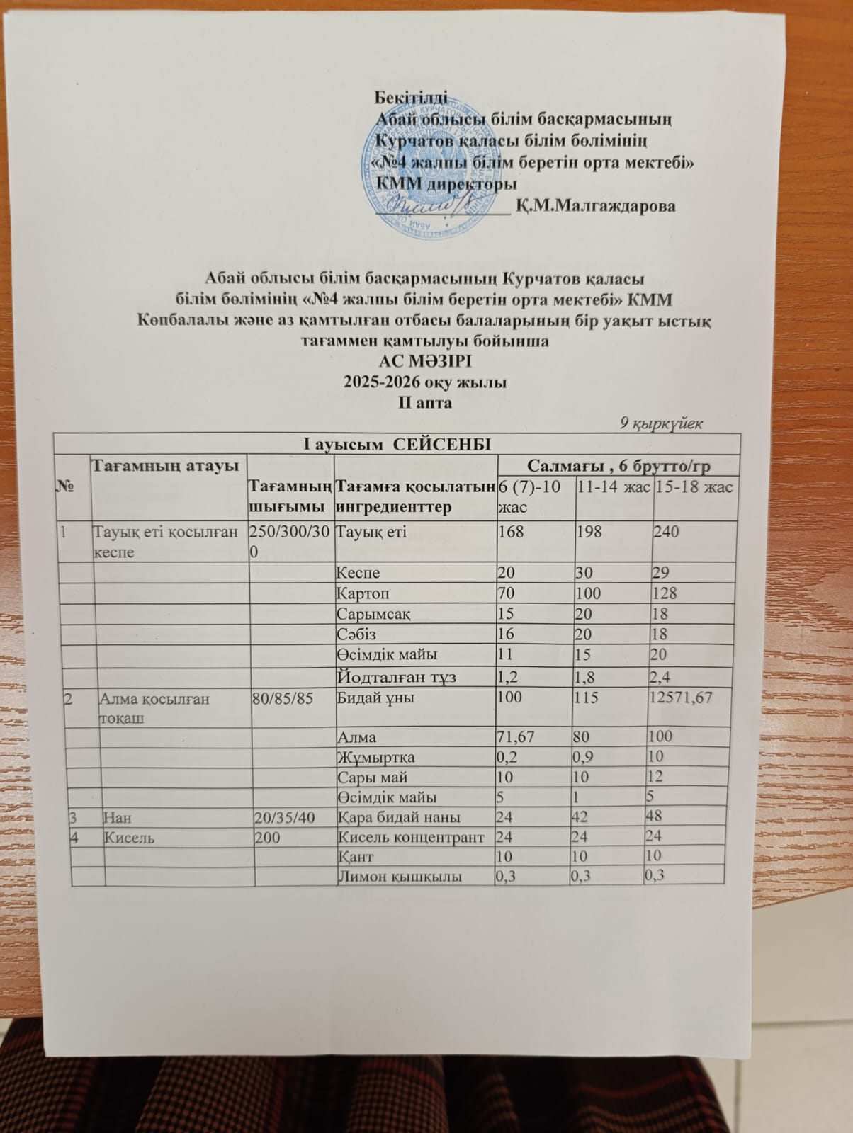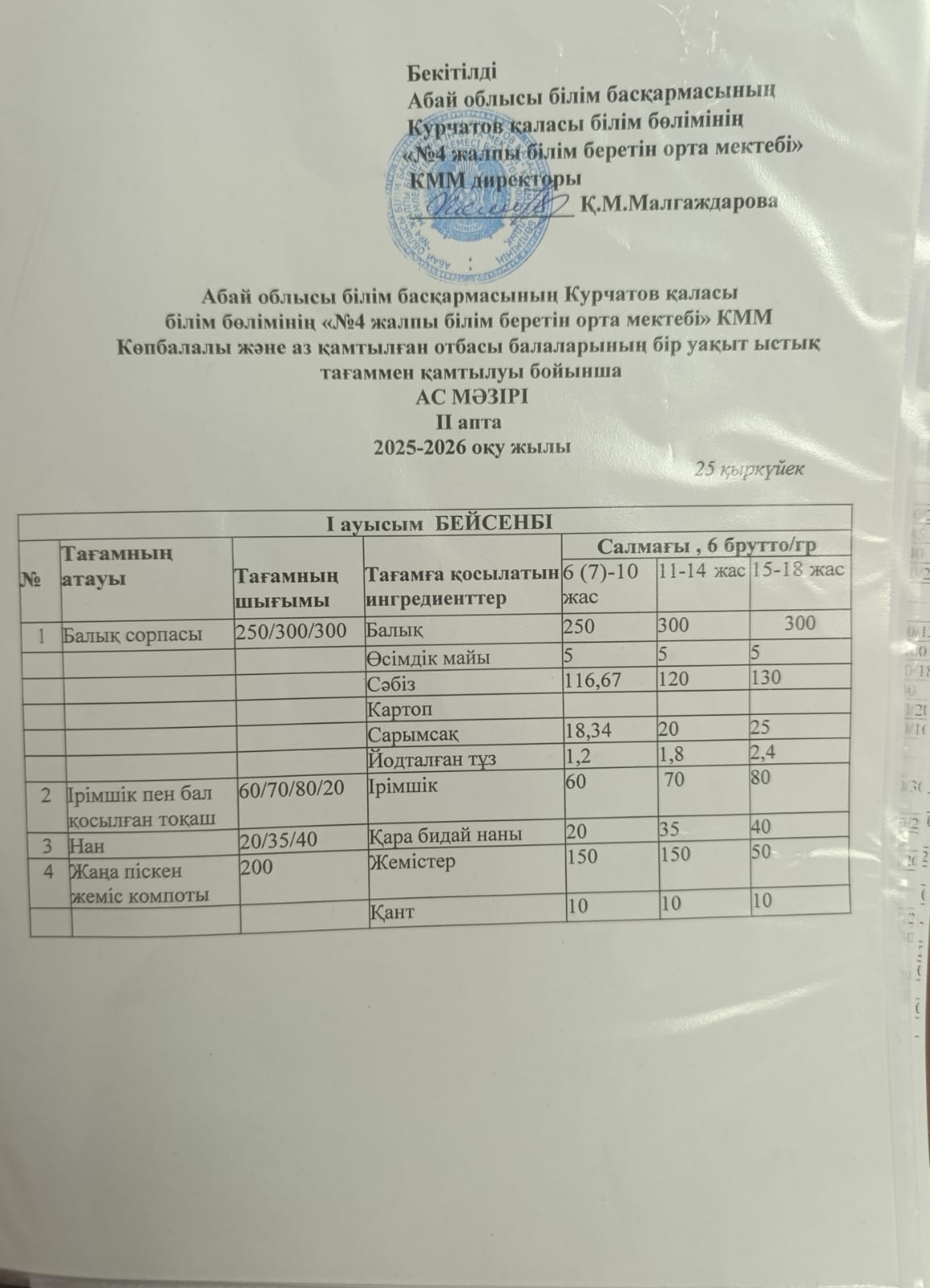| 1 | 2 апталық 5 күндік ас мәзірі | |