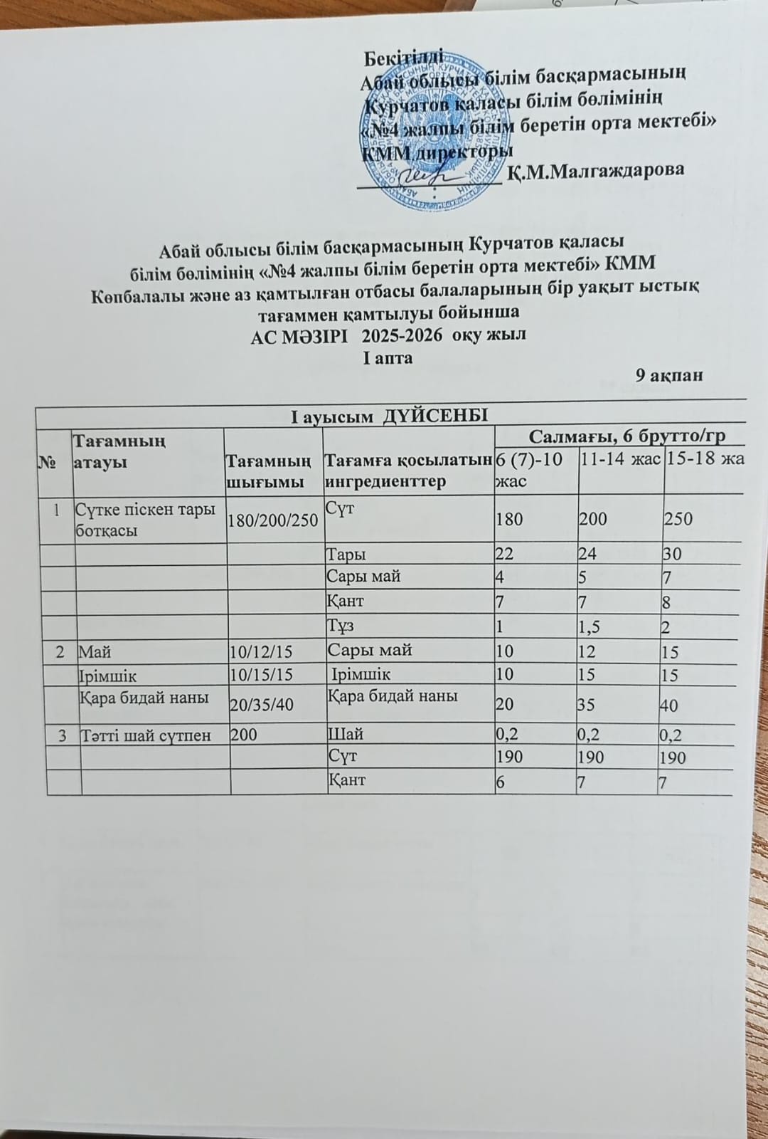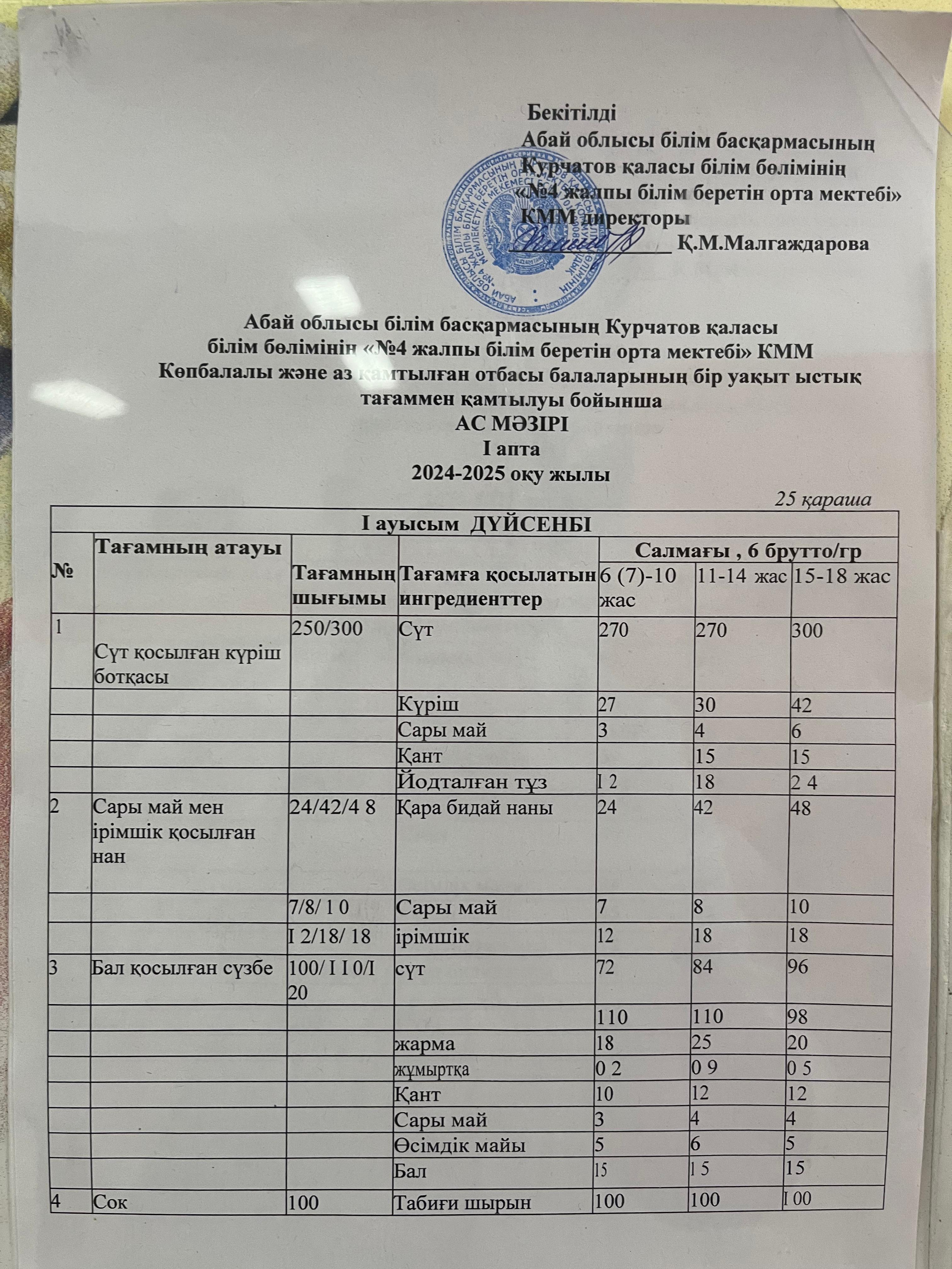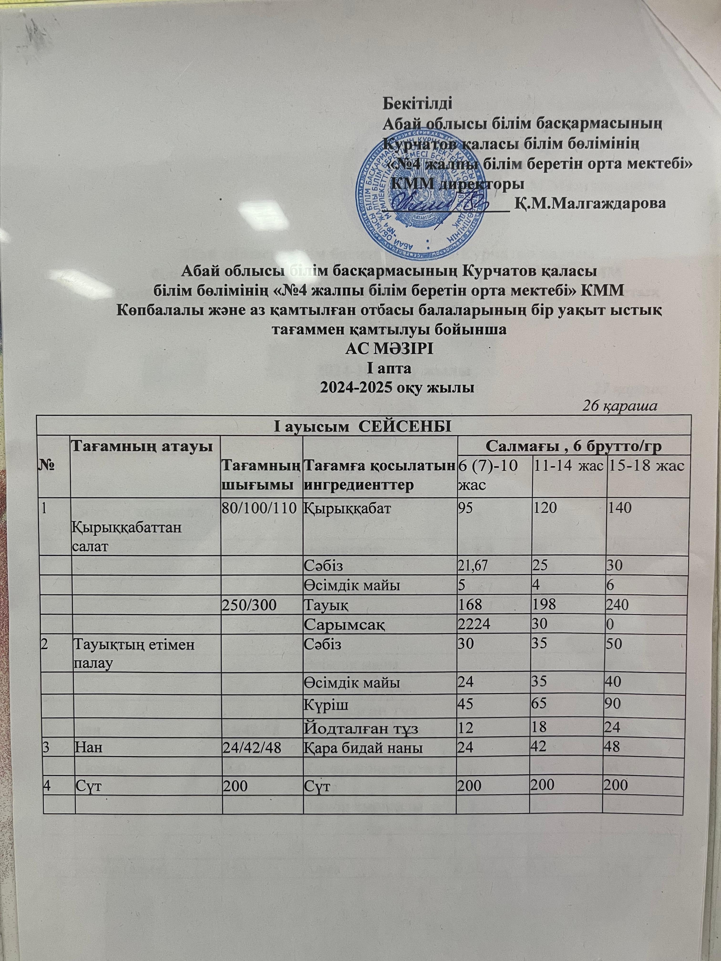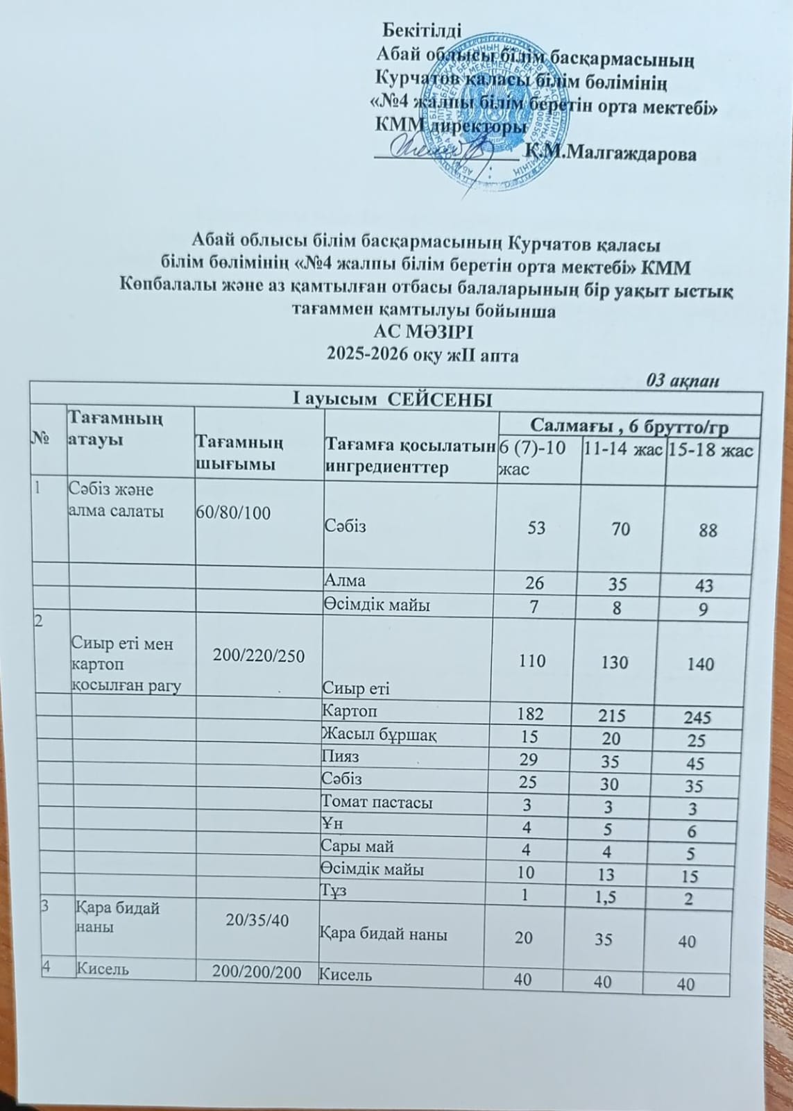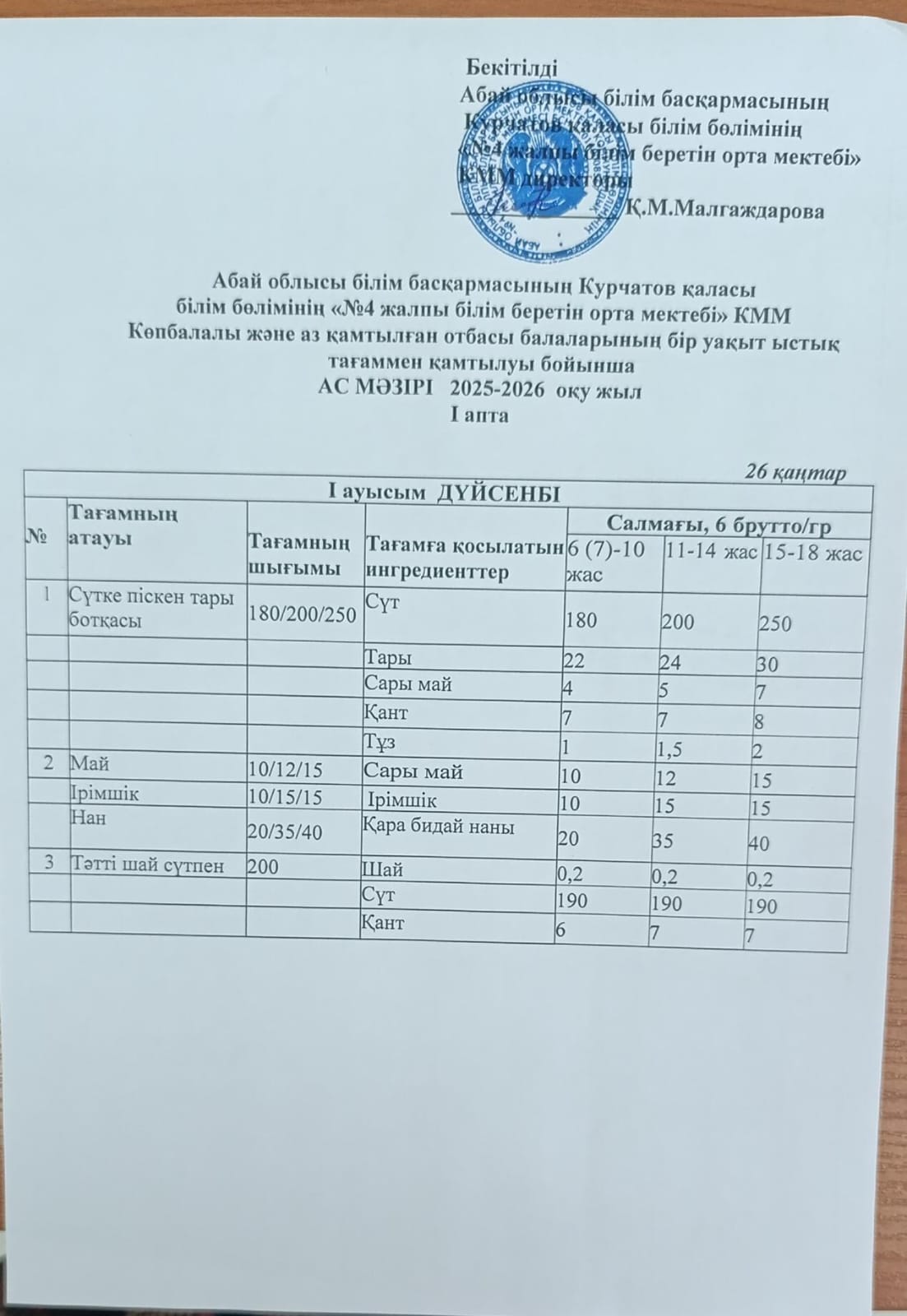 | 1 | 2 апталық 5 күндік ас мәзірі | |