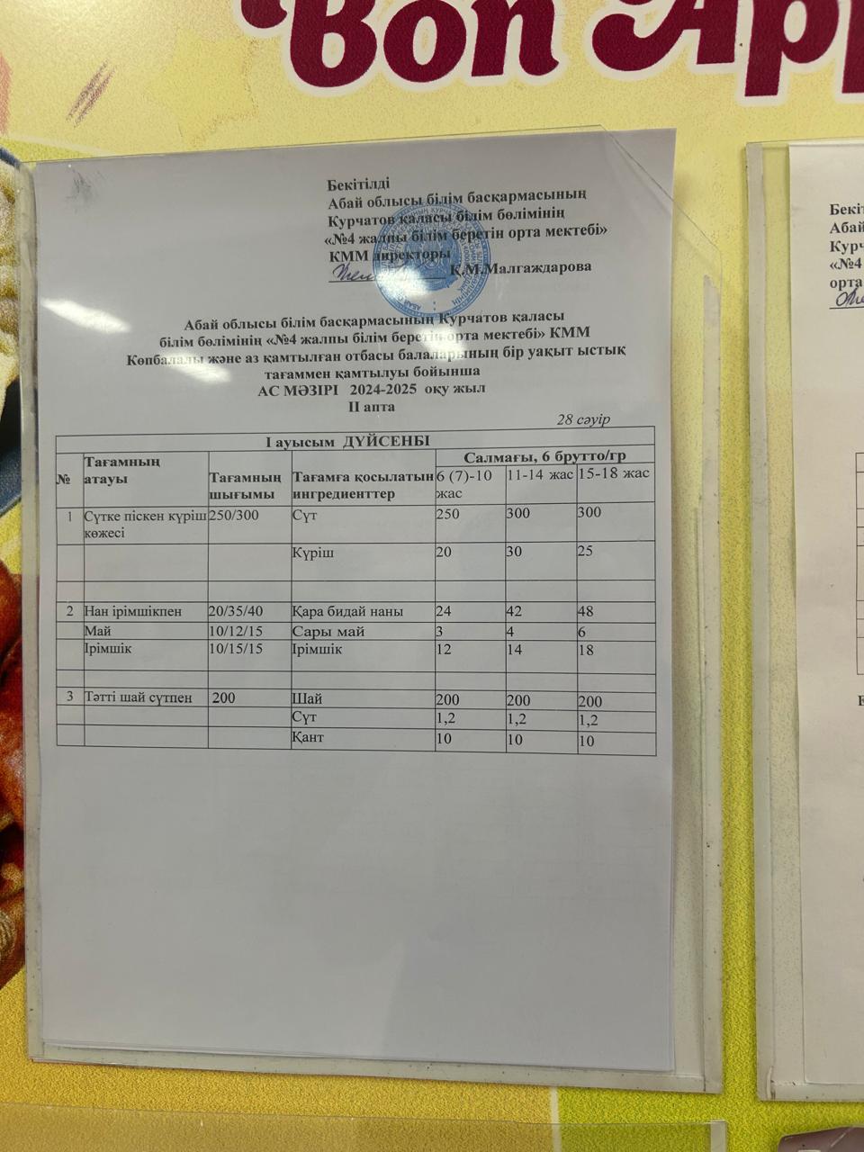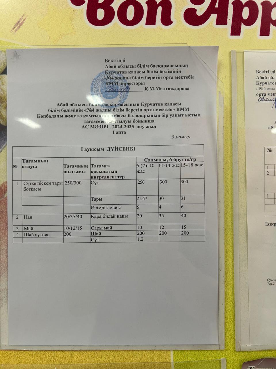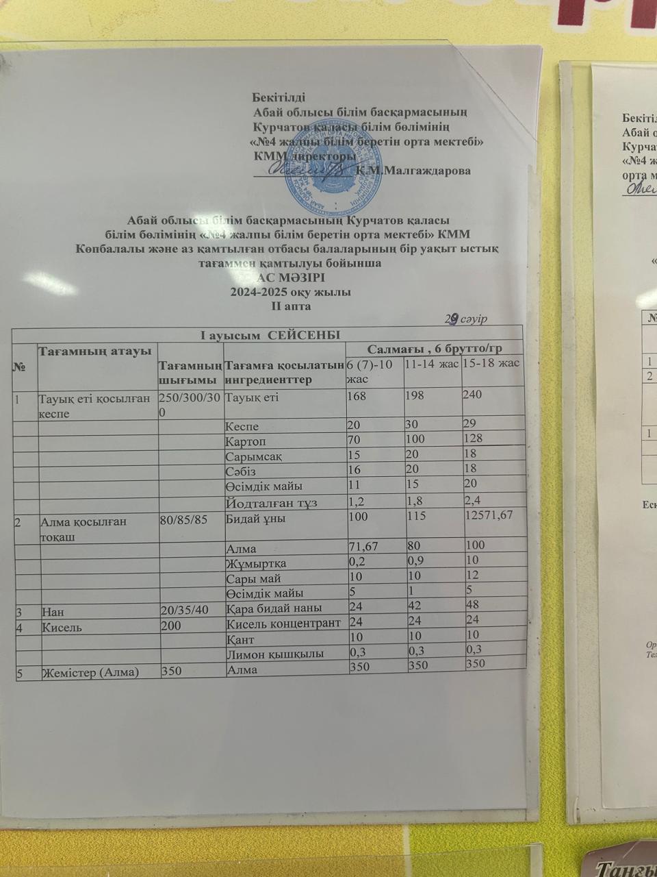 | 2 | 2 апталық 5 күндік ас мәзірі |