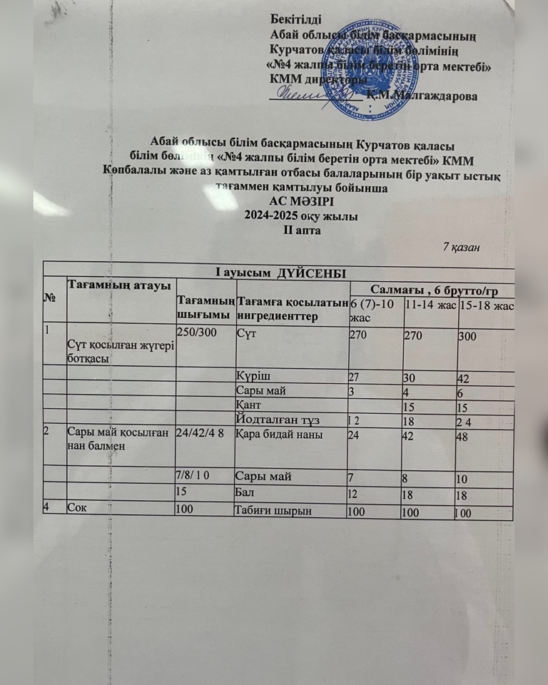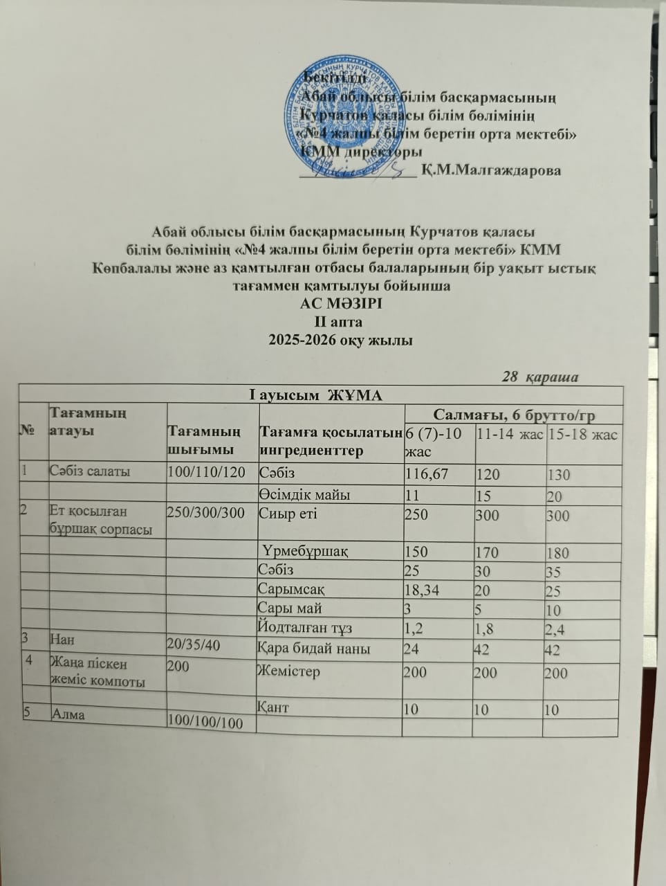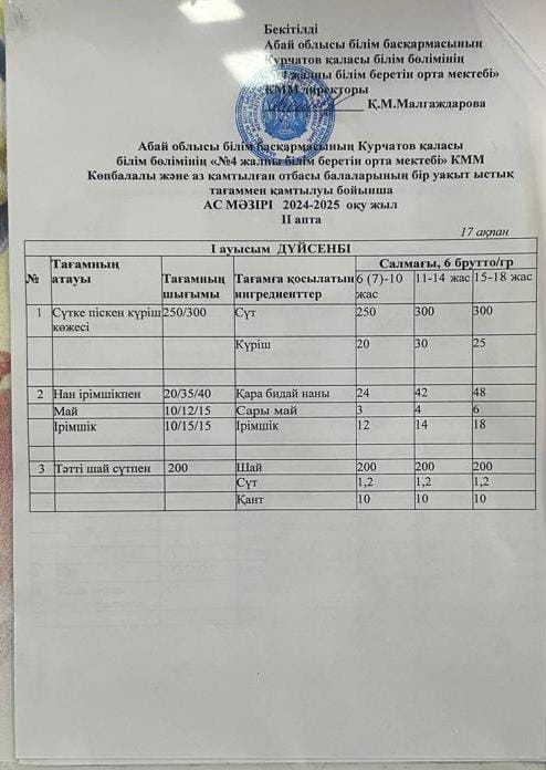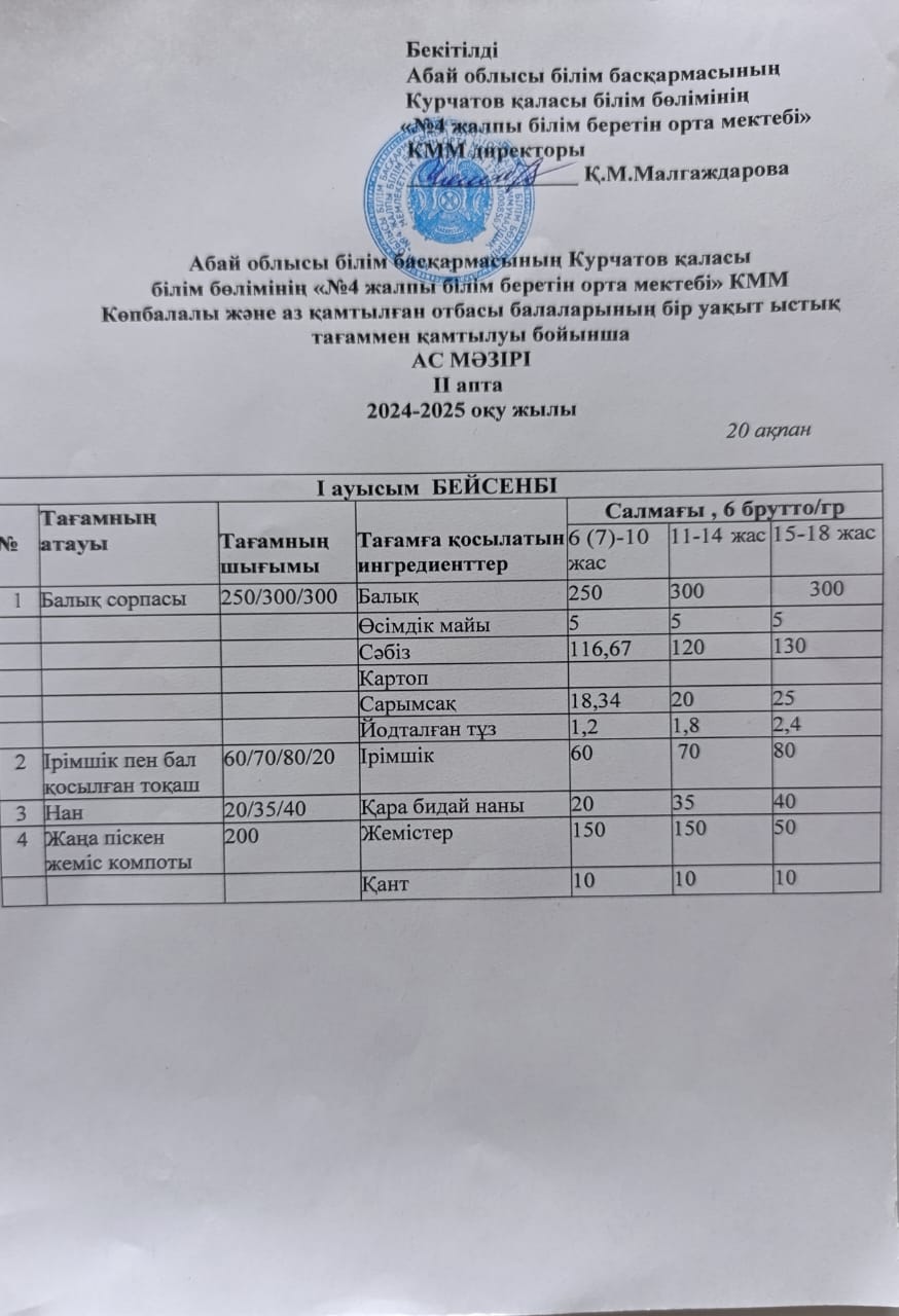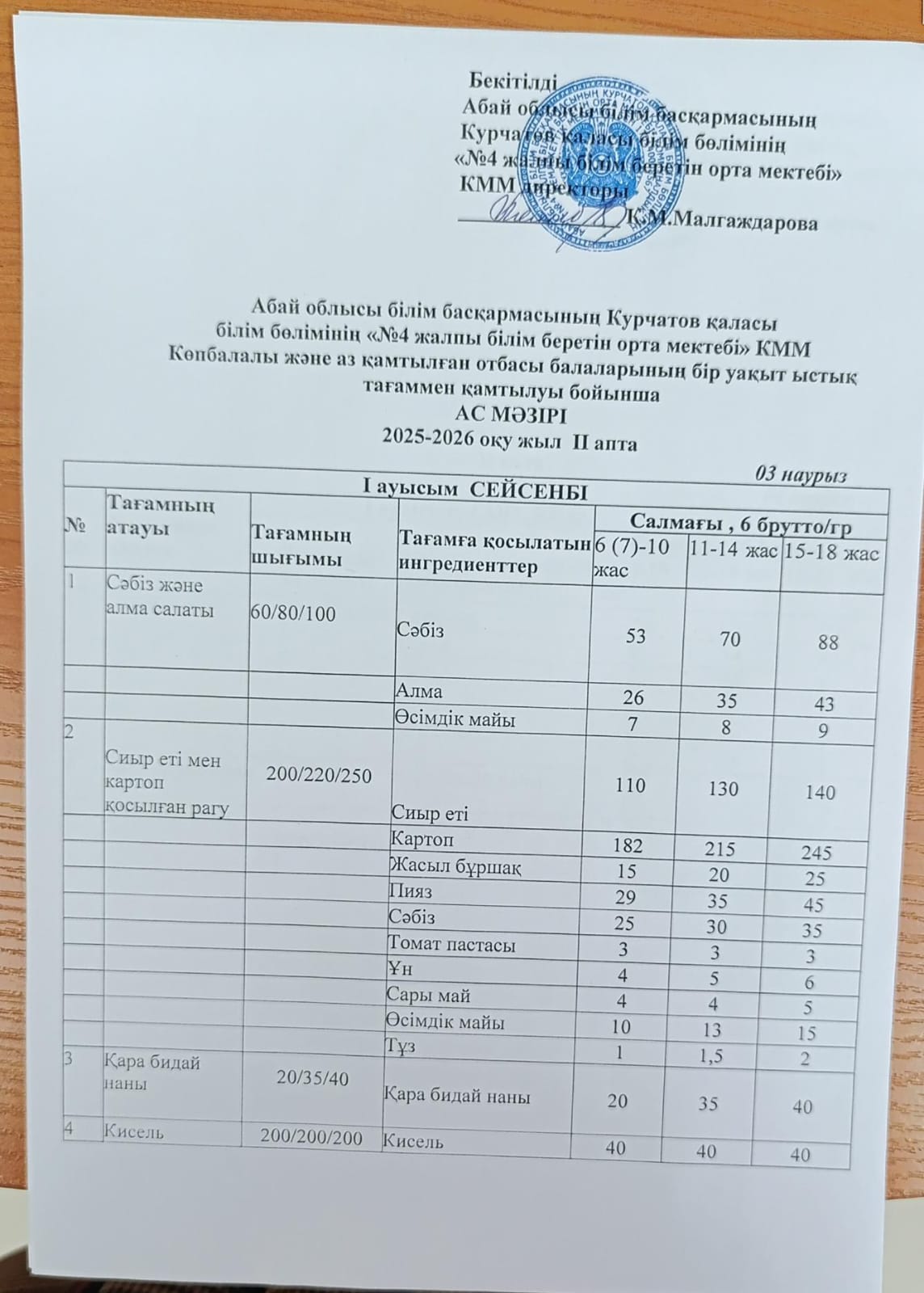 | 2 | 2 апталық 5 күндік ас мәзірі |