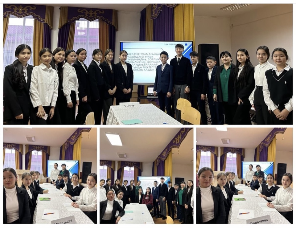 Мектебімізде 2024 жылдын 26 қантар күні мектеп парламенті және 9-8 сынып оқушылары арасында «Мен және менің құқығым» тақырыбында пікір сайыс сағаты өтті.