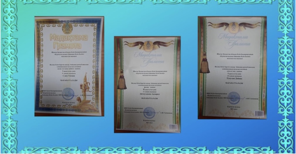 Жалпы білім пәндері бойынша республикалық олимпиаданың қалалық кезеңінде өз білімдерін үздік көрсеткен оқушылардың марапаттары