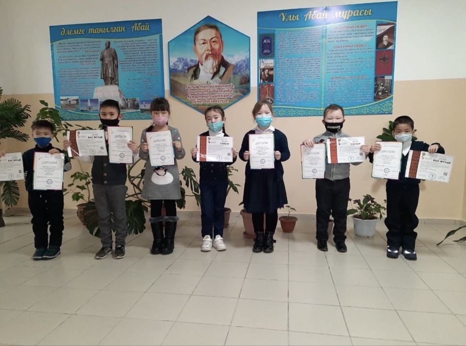 Құттықтаймыз! 1"А"сынып Дарабоз конкурсы Тәуелсіздік күніне байланысты мәнерлеп оқудан 8 бала қатысып 5 бала Бас жүлде 3 бала 1 орындарға ие болды. 1"А" сынып "Ұлар" олимпиадасынан 15 бала 1 орын. Сынып жетекшісі: Ошекеева Маржан Алихановна.