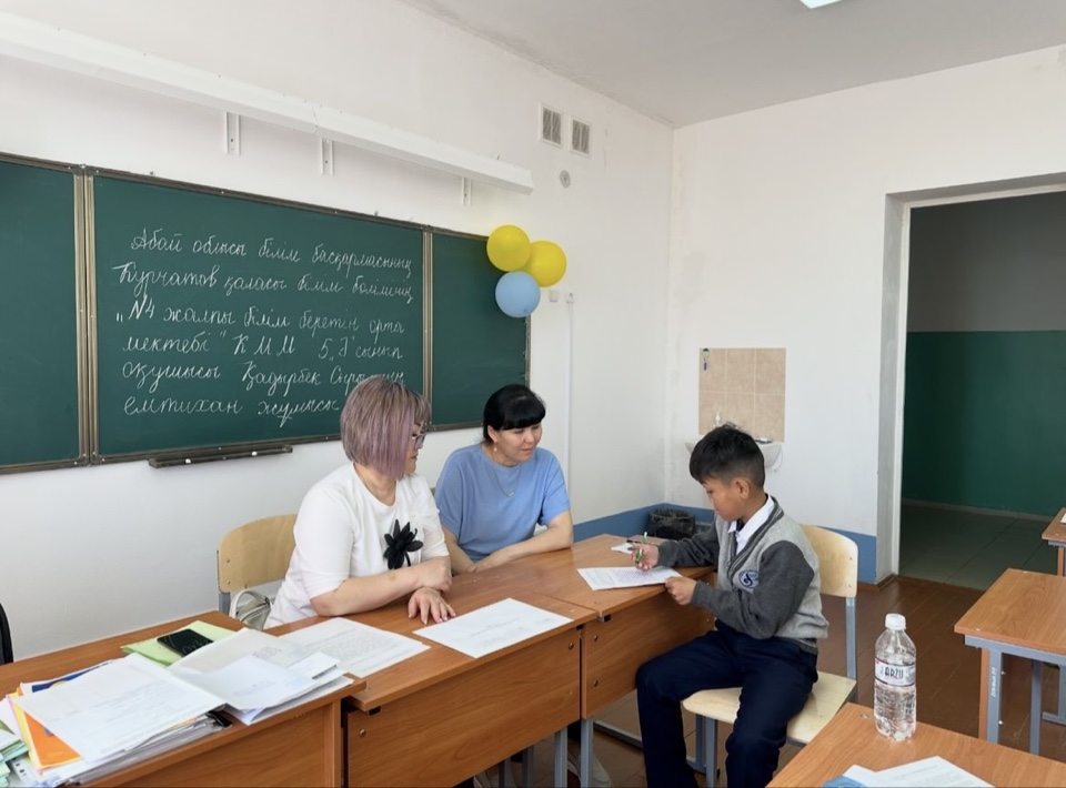 5 сыныптар қазақ тілі пәнінен емтихан тапсыруда.