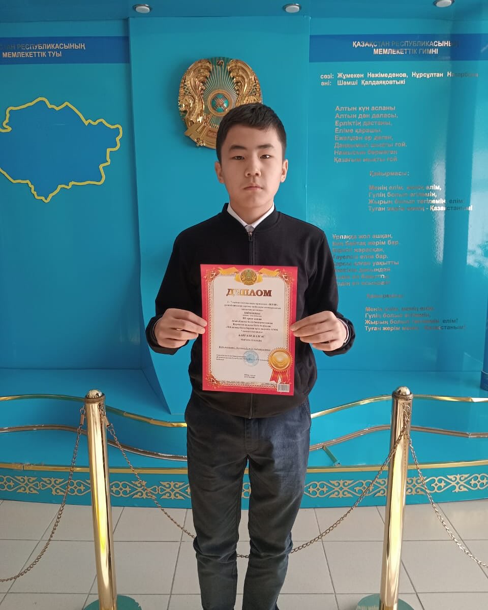 7 сынып оқушысы Байғали Жалғас 3 орынға ие болды.Жетекшісі информатика пәні мұғалімі Телепова Гульзат Кабденгалиевна.