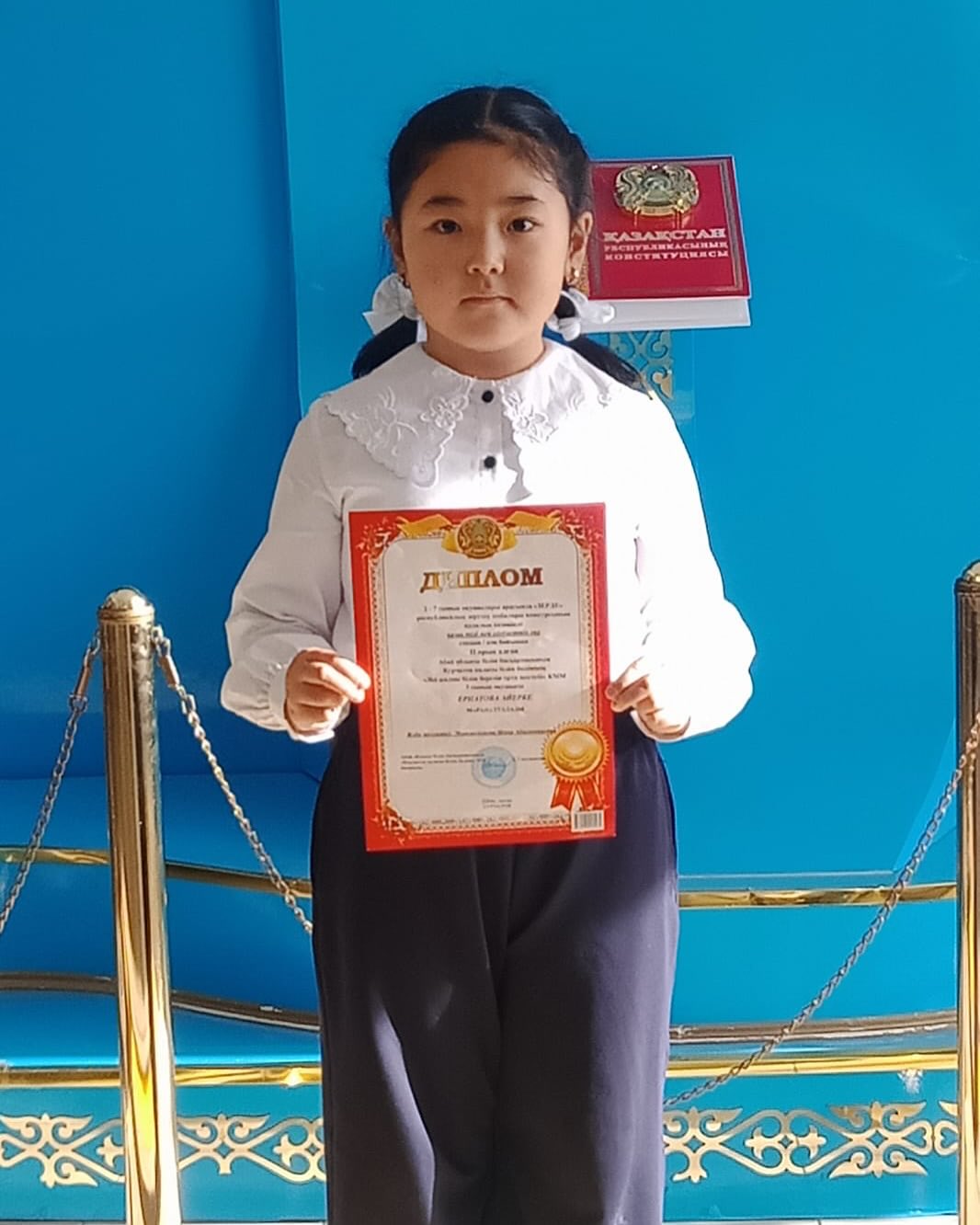 5 “Ә” сынып оқушысы Сламбекова Еркеназ 1 орынға ие болды.Жетекшісі Жунусова Айжан Кадиевна.