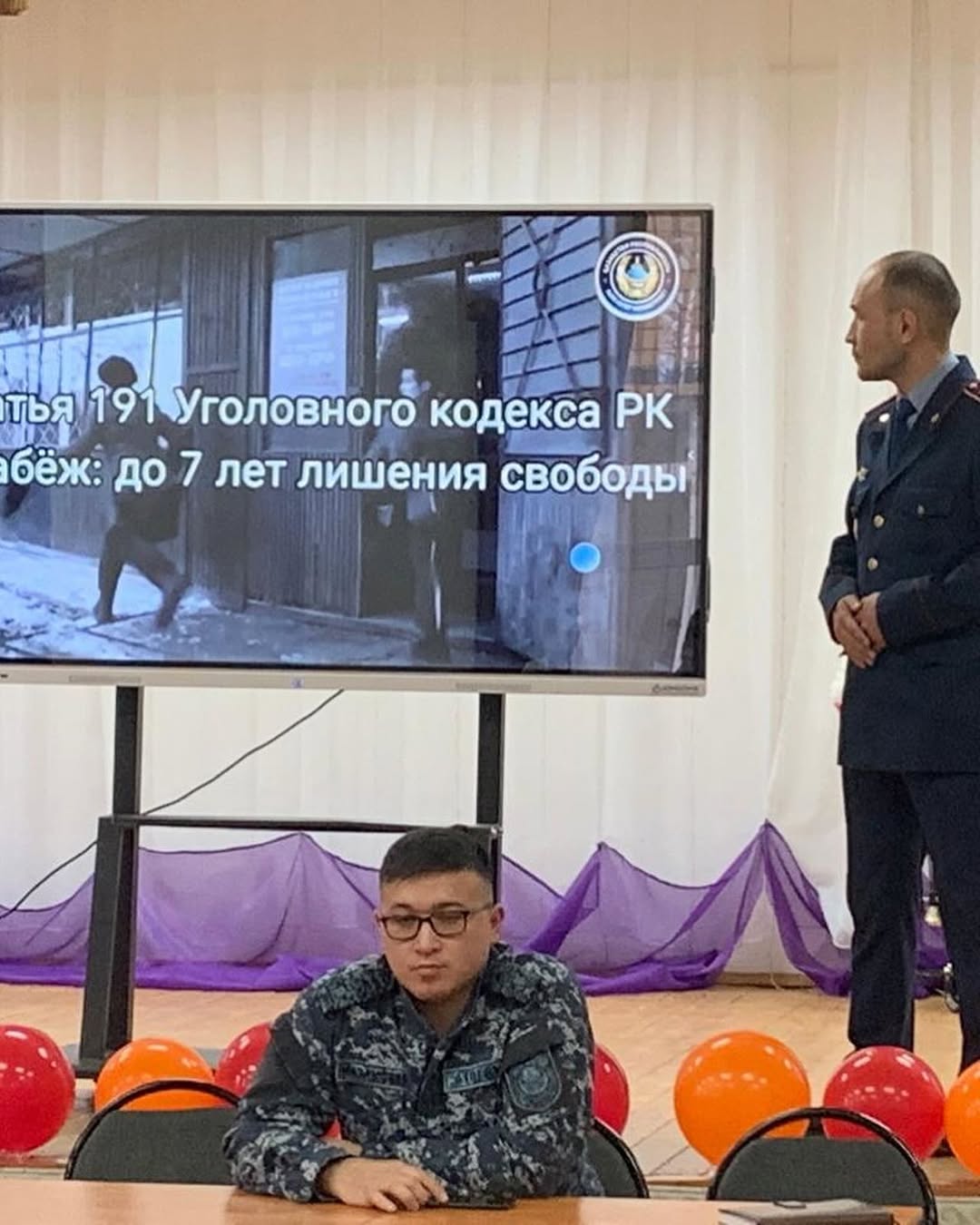 Қалалық полиция бөлімі қызметкерлері оқушыларды қылмыстық құқықбұзушылық пен оның салдары және жаза түрлерімен таныстырып, ақпараттық-түсіндірме жұмыстарын жүргізді.