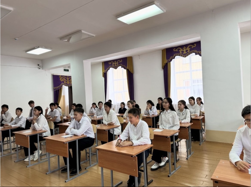 9 сыныптар Қазақстан тарихы пәнінен мемлекеттік емтихан тапсыру үстінде