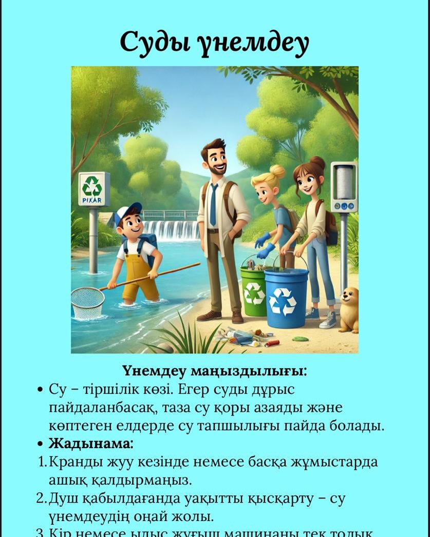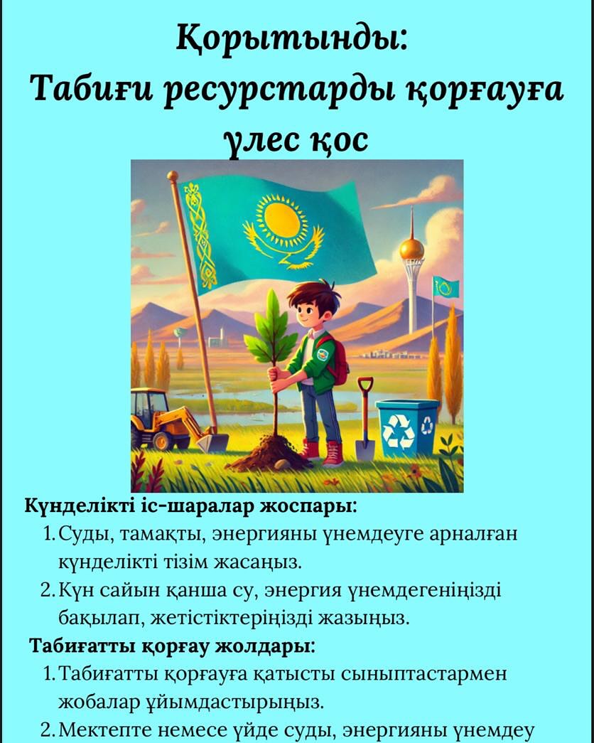 Суды, тамақты,энергияны тұтыну бойынша күнделікті табиғи ресурстарға ұқыптв қарауды қалыптастыру