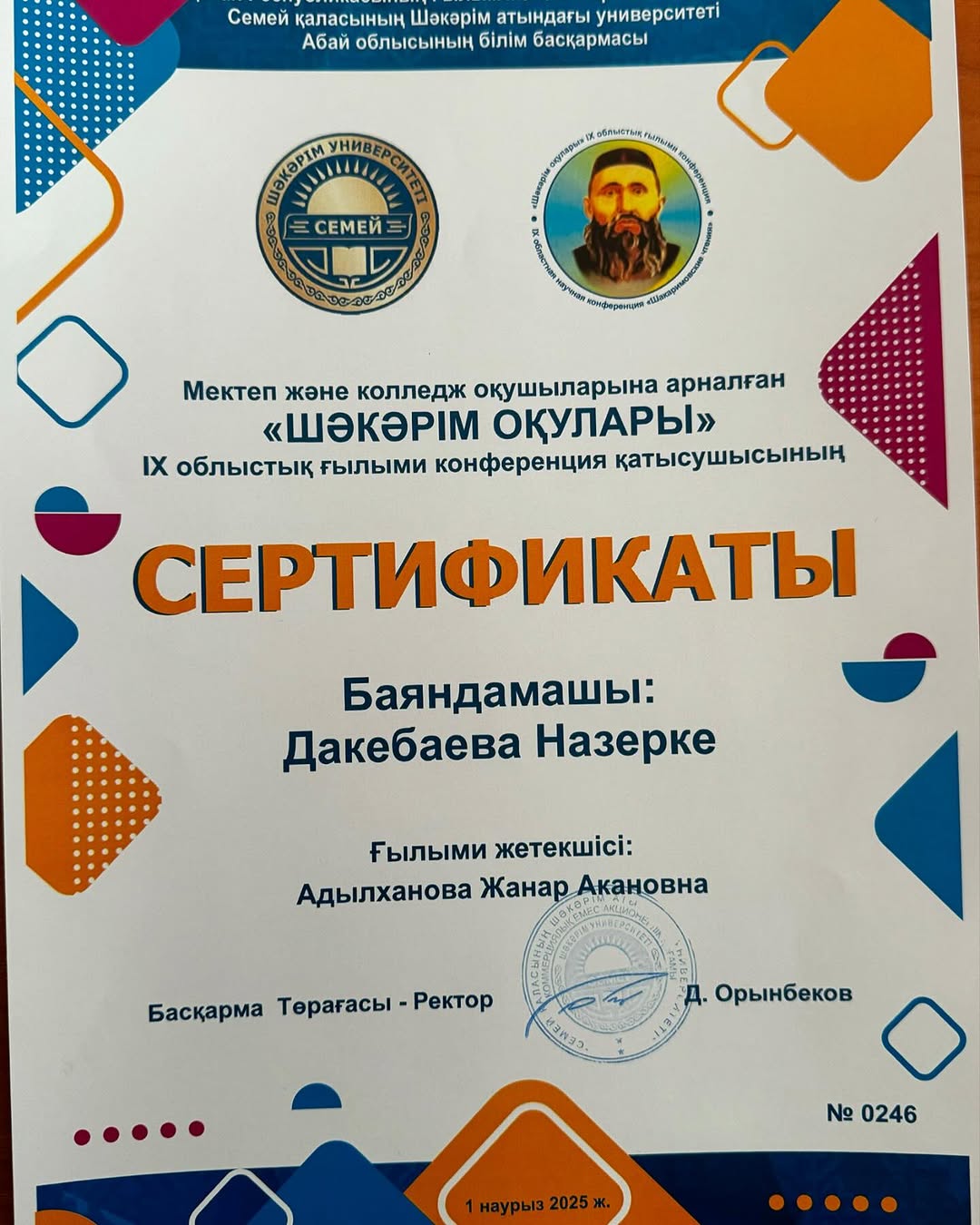 2025 жылдын 1 наурыз айында Семей қаласының Шәкарім атындағы университеті мектеп және колледж оқушыларына арналған “Шәкәрім оқулары” ІХ облыстық ғылыми конференцияны өткізді.