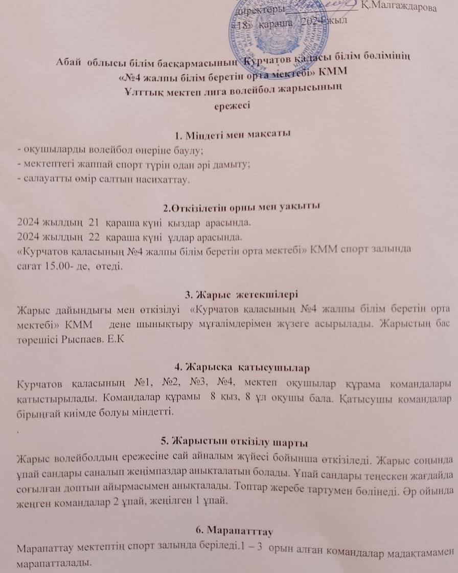 21-22.11.2024ж. күні аралығында Ұлттық мектепаралық лига өтіп, қалалық мектеп ұлдар, қыздар командалары арасында волейбол жарысы ұйымдастырылды.