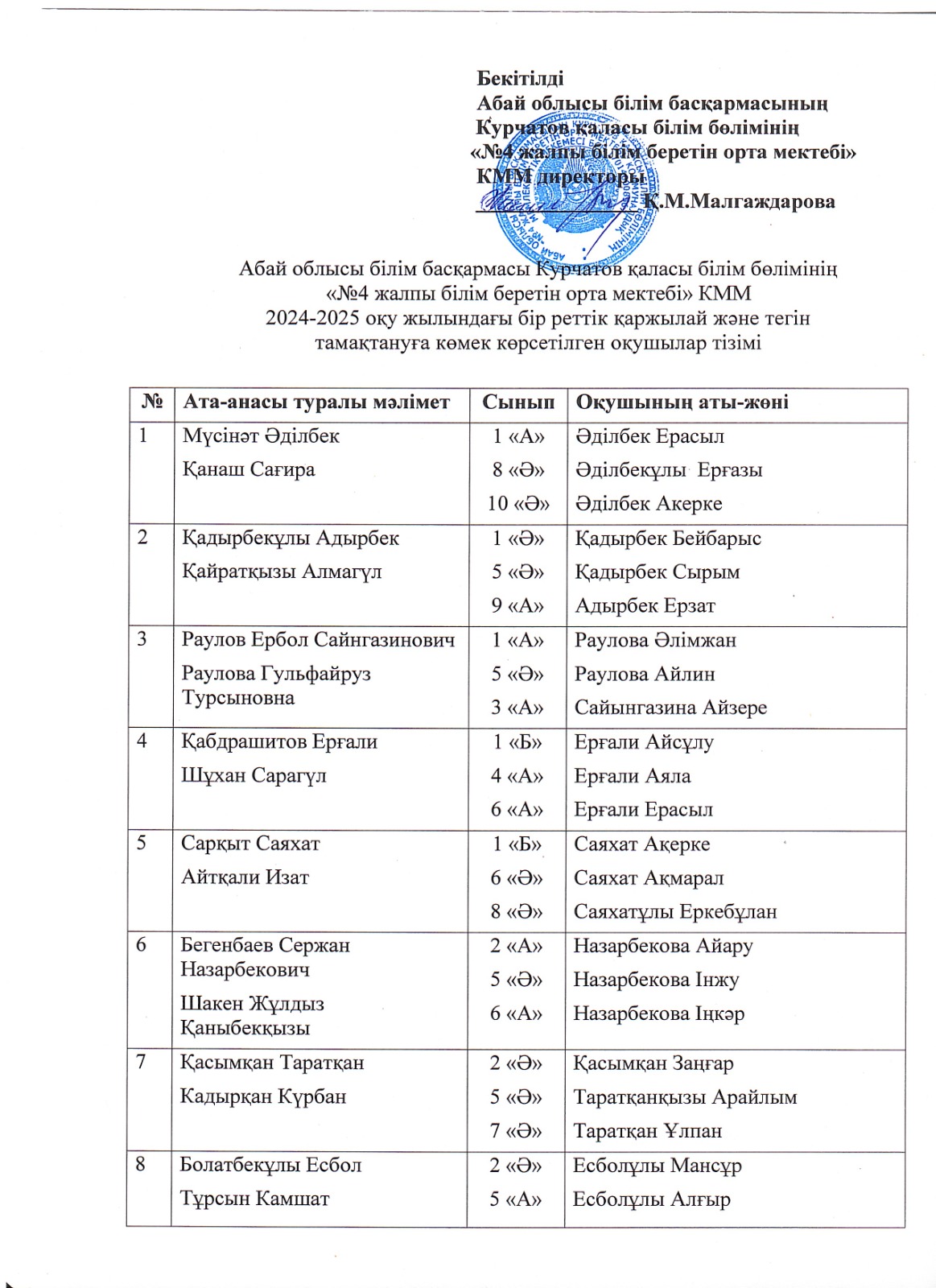 Абай облысы білім басқармасының Курчатов қаласы білім бөлімінің «№4 жалпы білім беретін орта мектебі» КММ